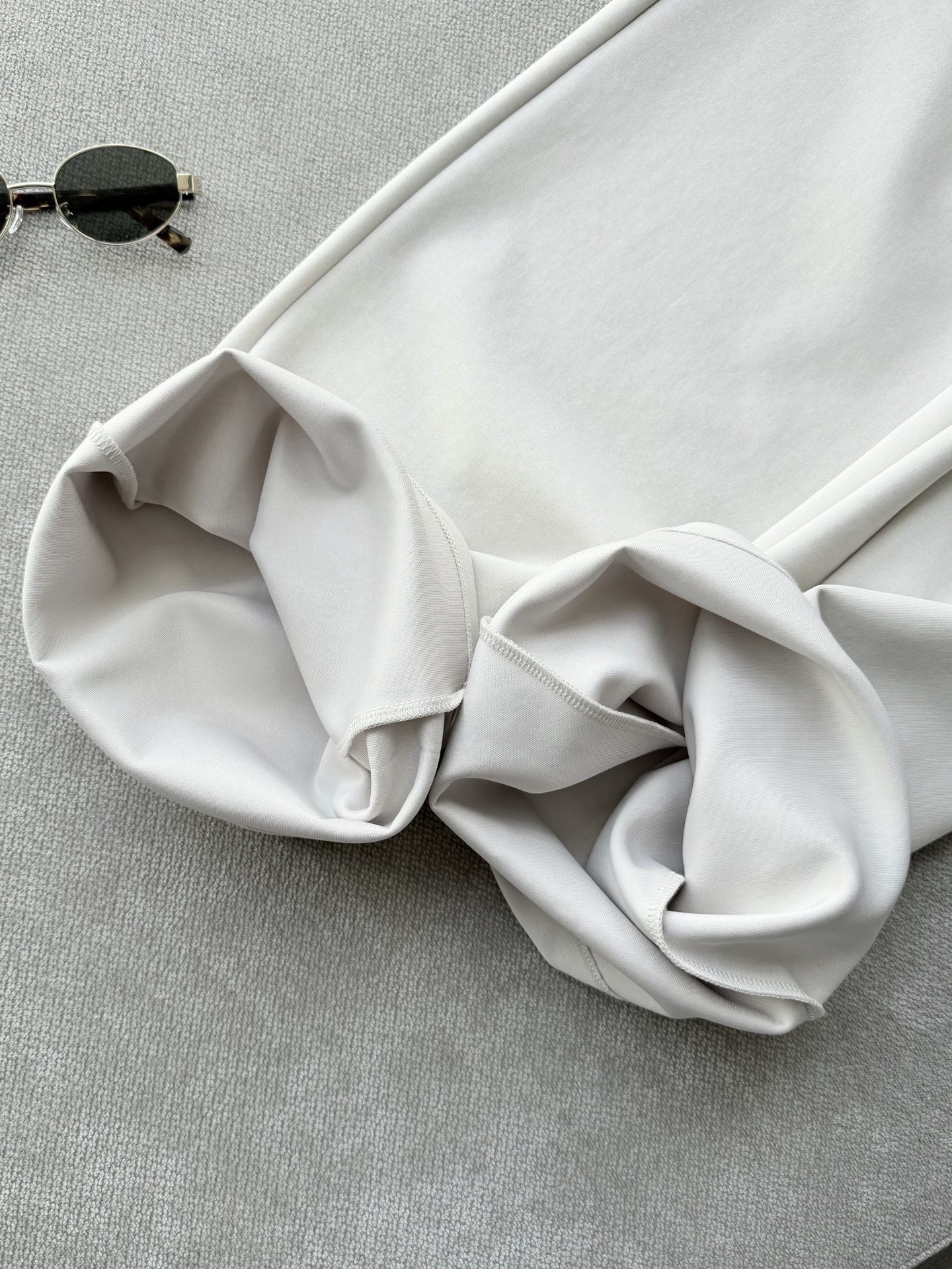 裤身侧缝自然的弧度除了型好之外,工艺也很到位,流畅无扭曲,包括底档部分,弧度角度都是有讲究的,