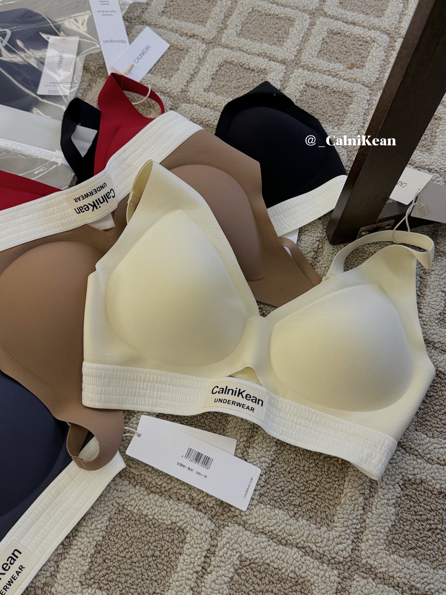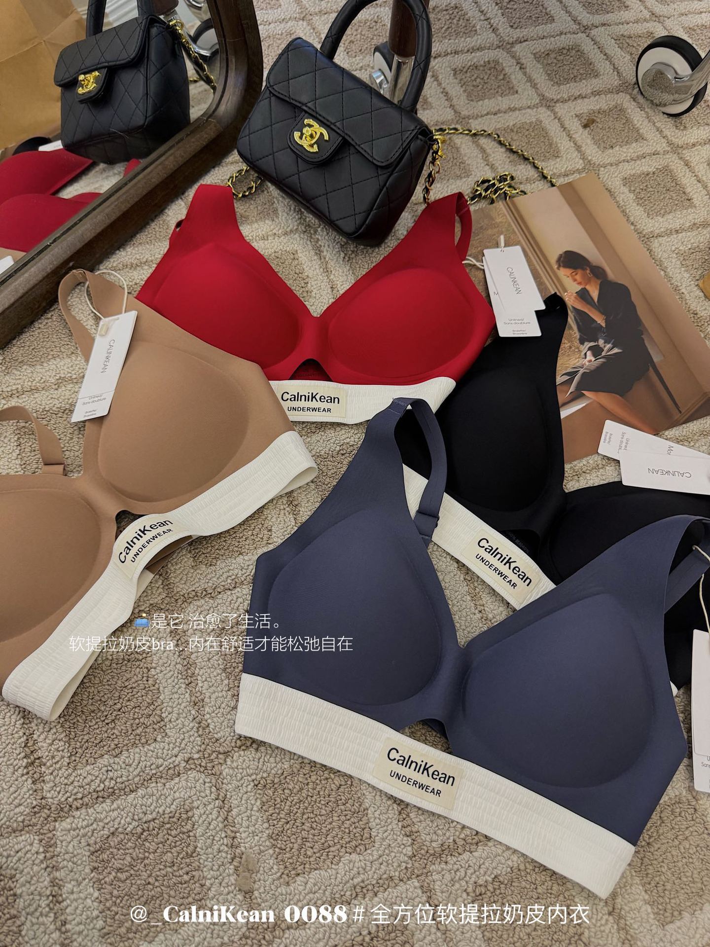 Calnikean无痕双皮奶文胸套装 全方位固定杯软提拉内衣 小胸聚拢显大收副乳无痕文胸