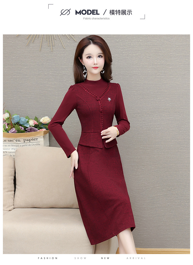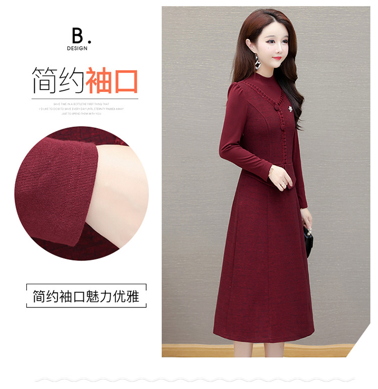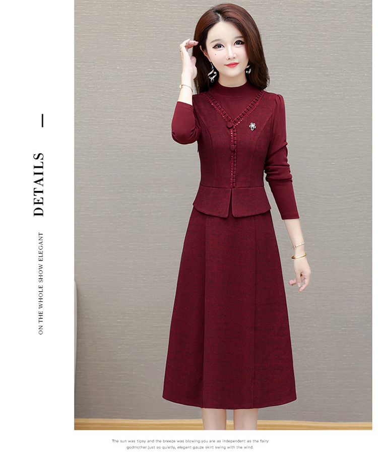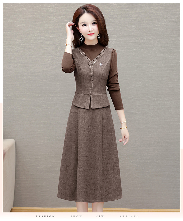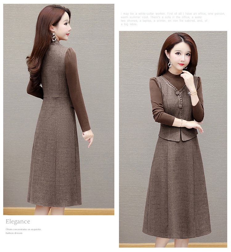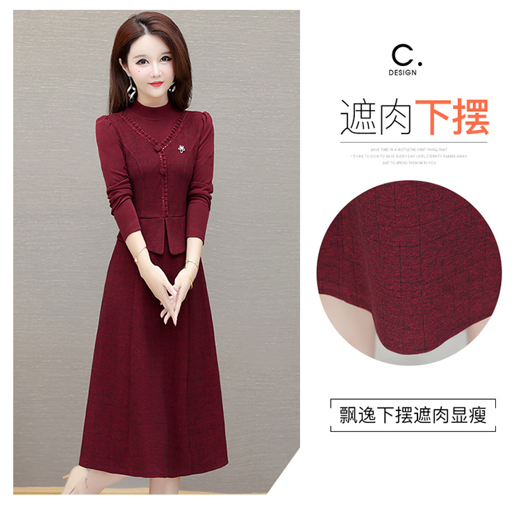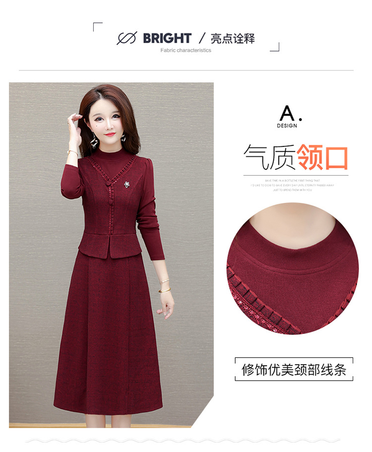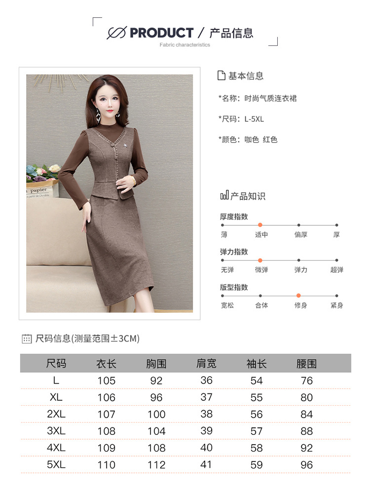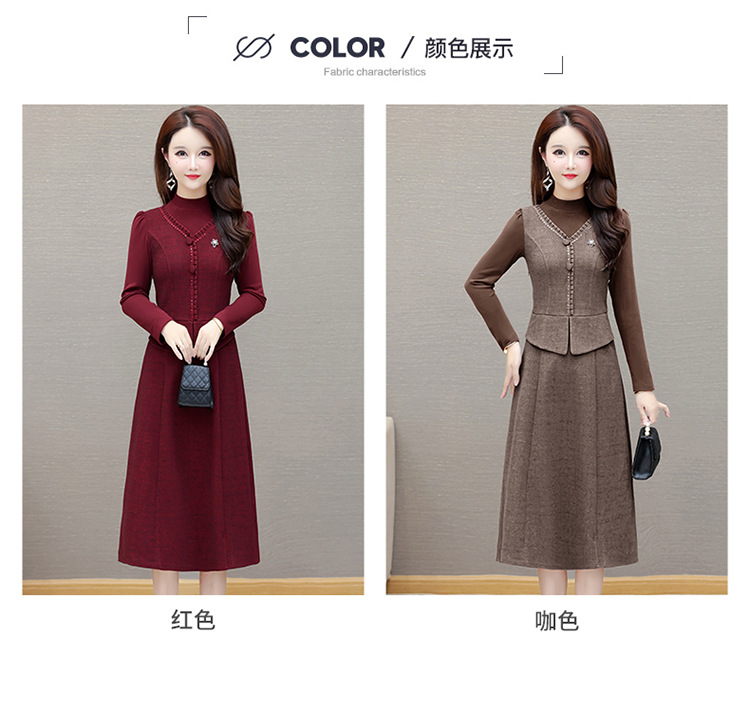 QYM 1125X17-Y假两件气质连衣裙时尚中长款高腰A字裙 商品图2