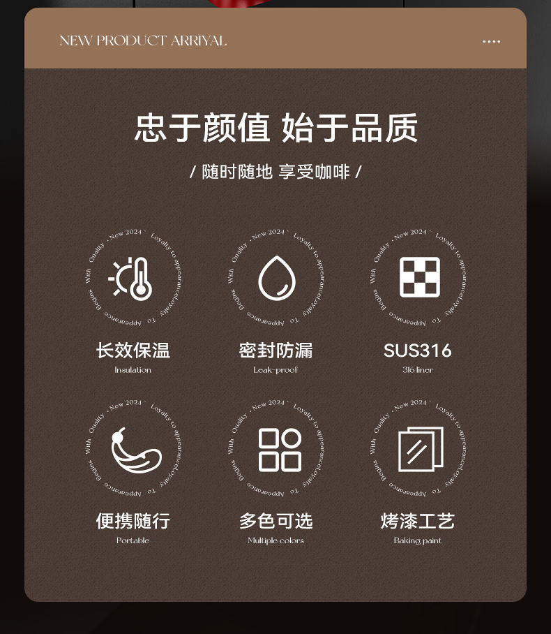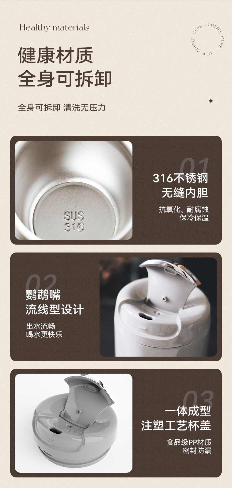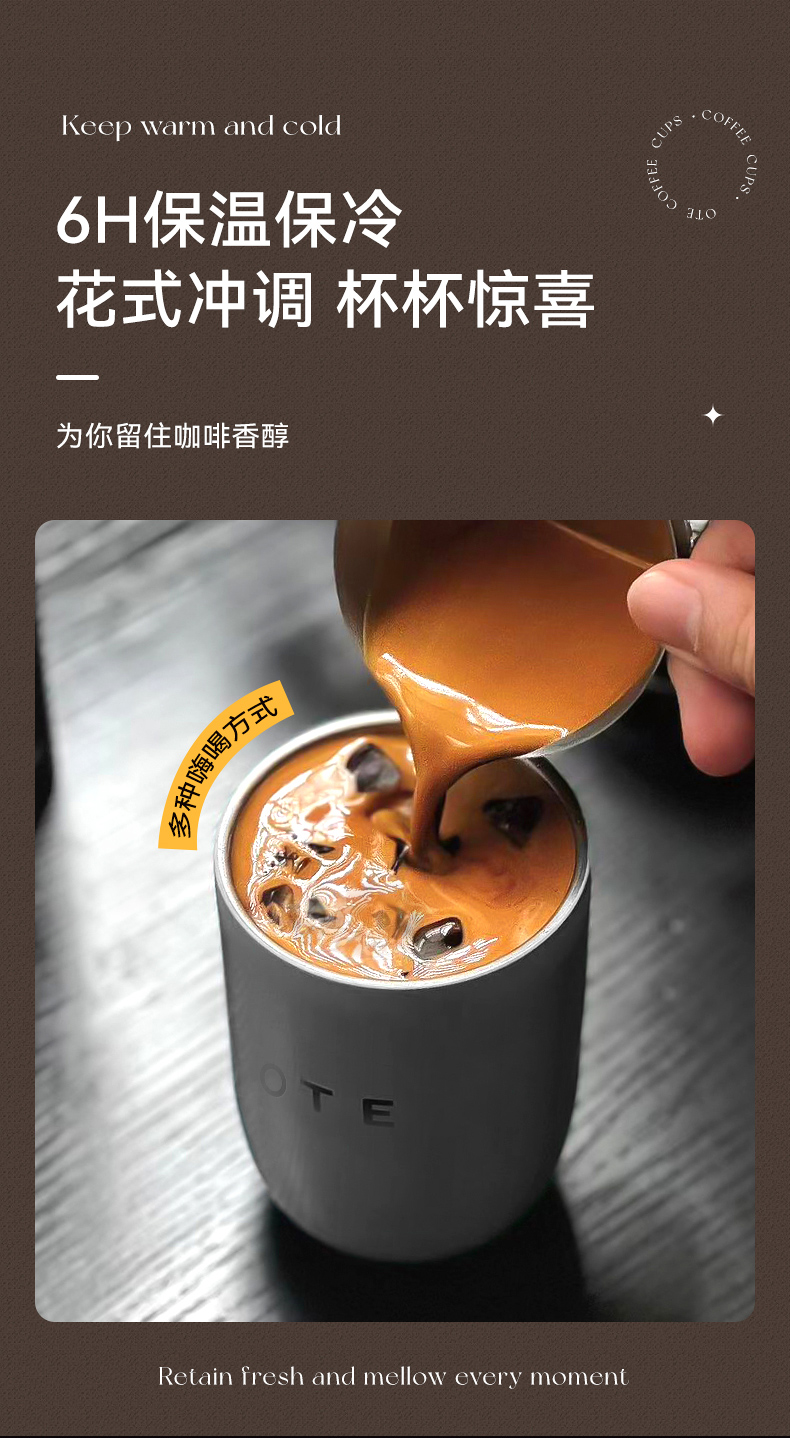 OTE欧堤咖啡随行杯户外便携保温杯316不锈钢水杯茶杯车载高颜值礼物350ml