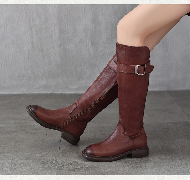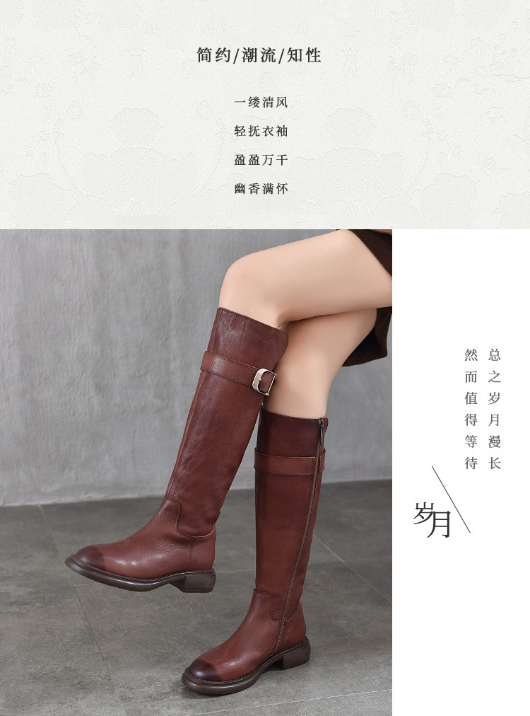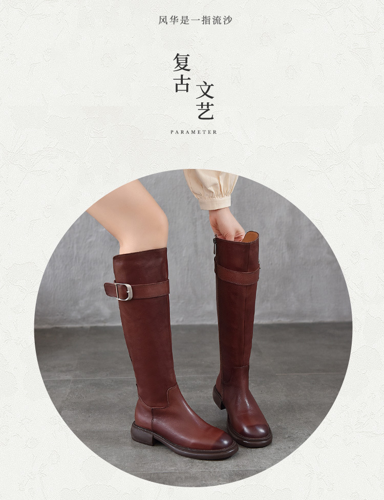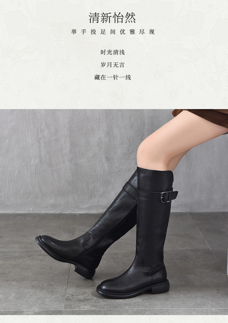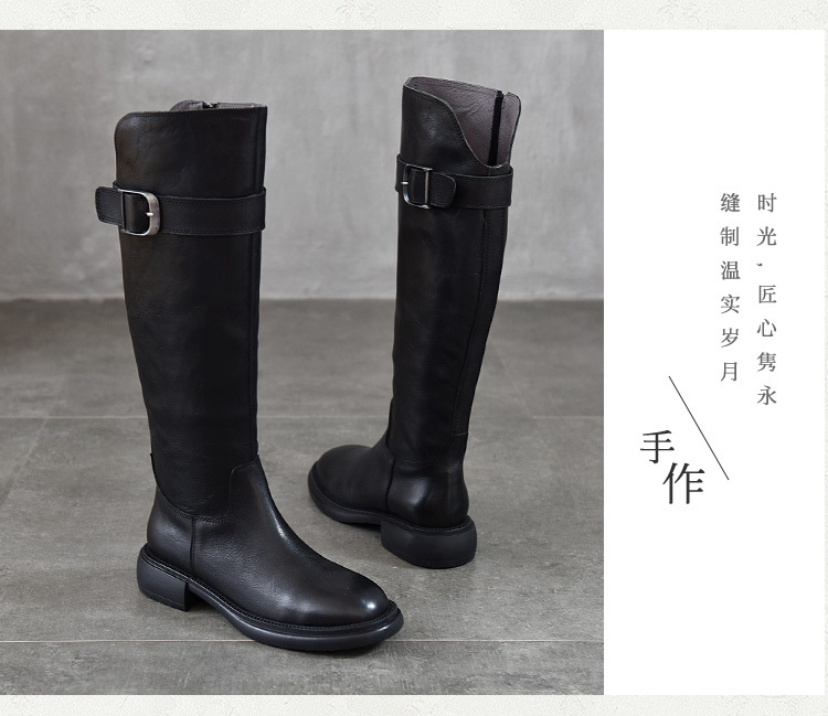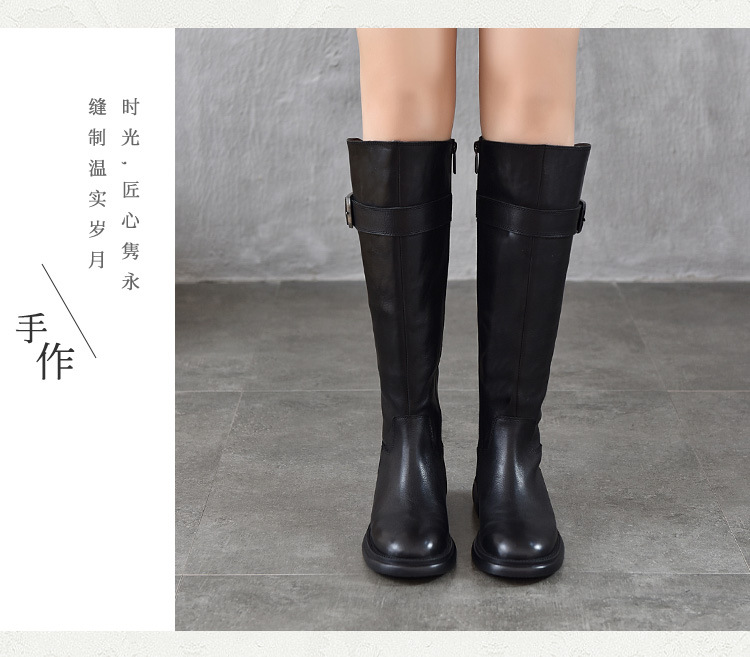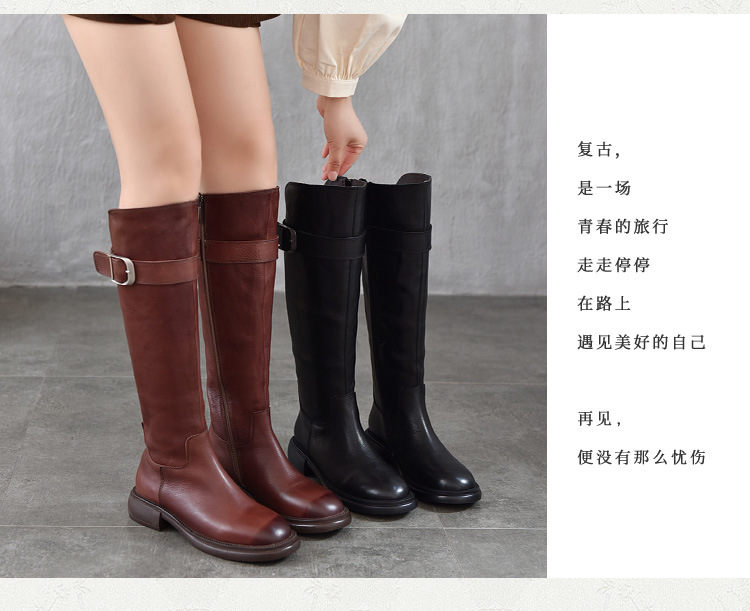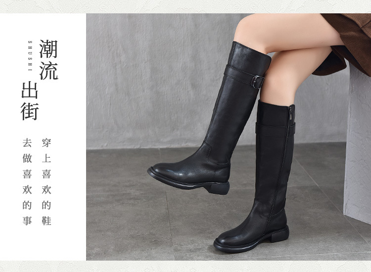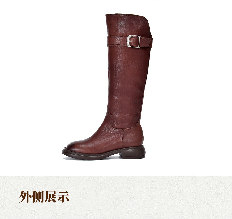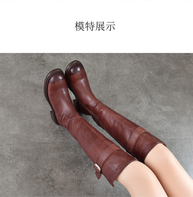 TN T6797-11高品质里外全皮中跟长筒靴不过膝真皮骑士靴