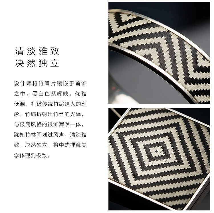 原创设计师竹林间系列竹编现代简约大气银饰礼物纯银跨界