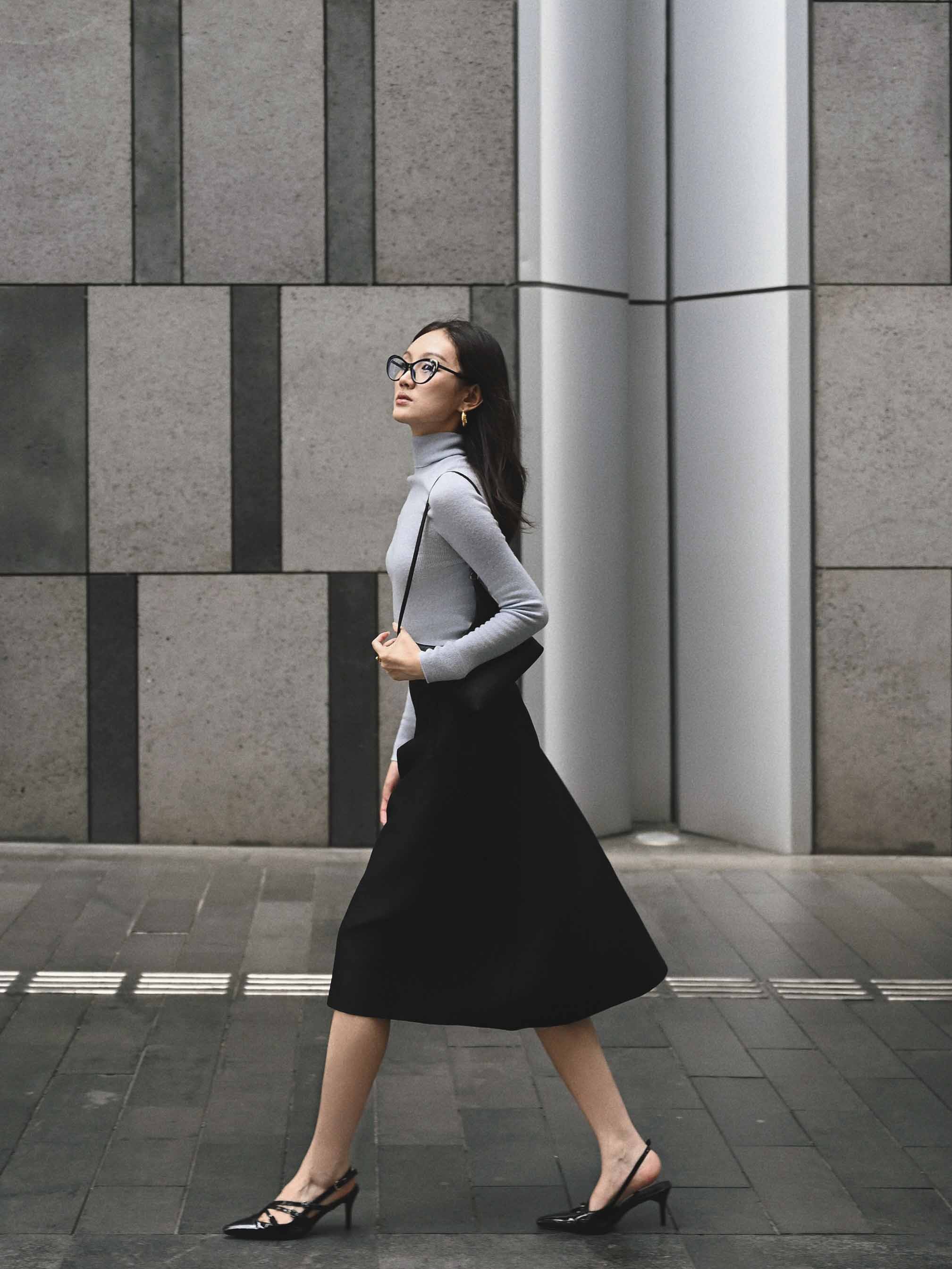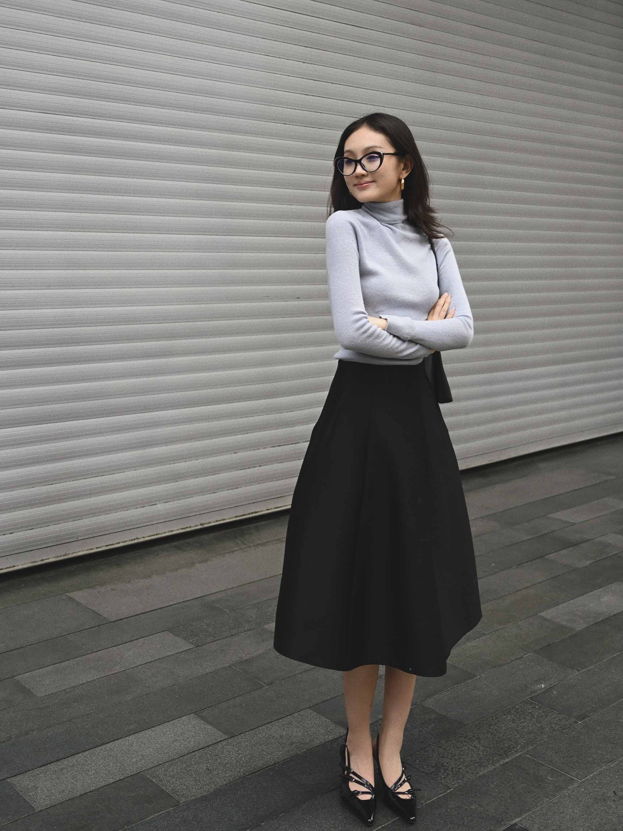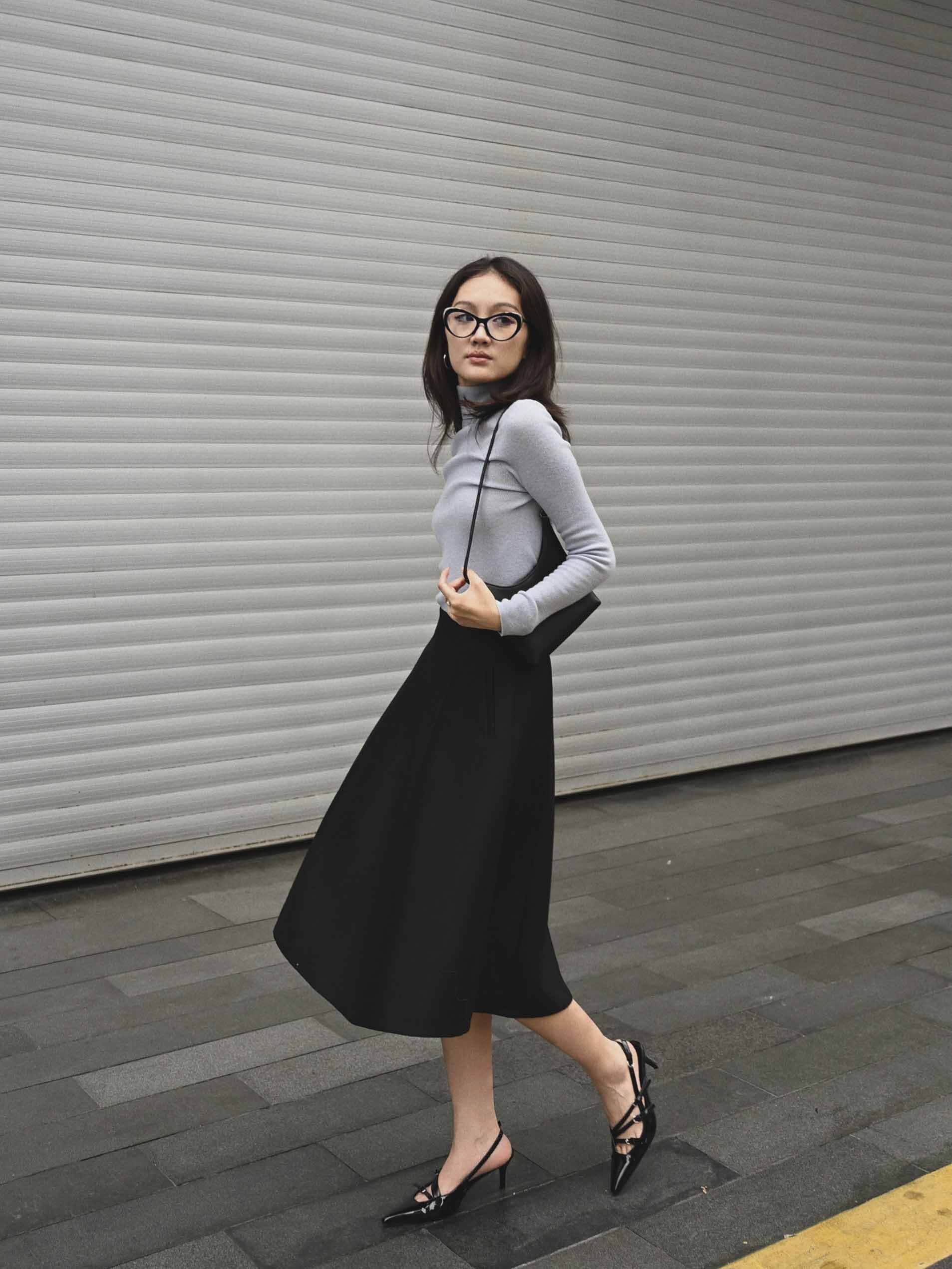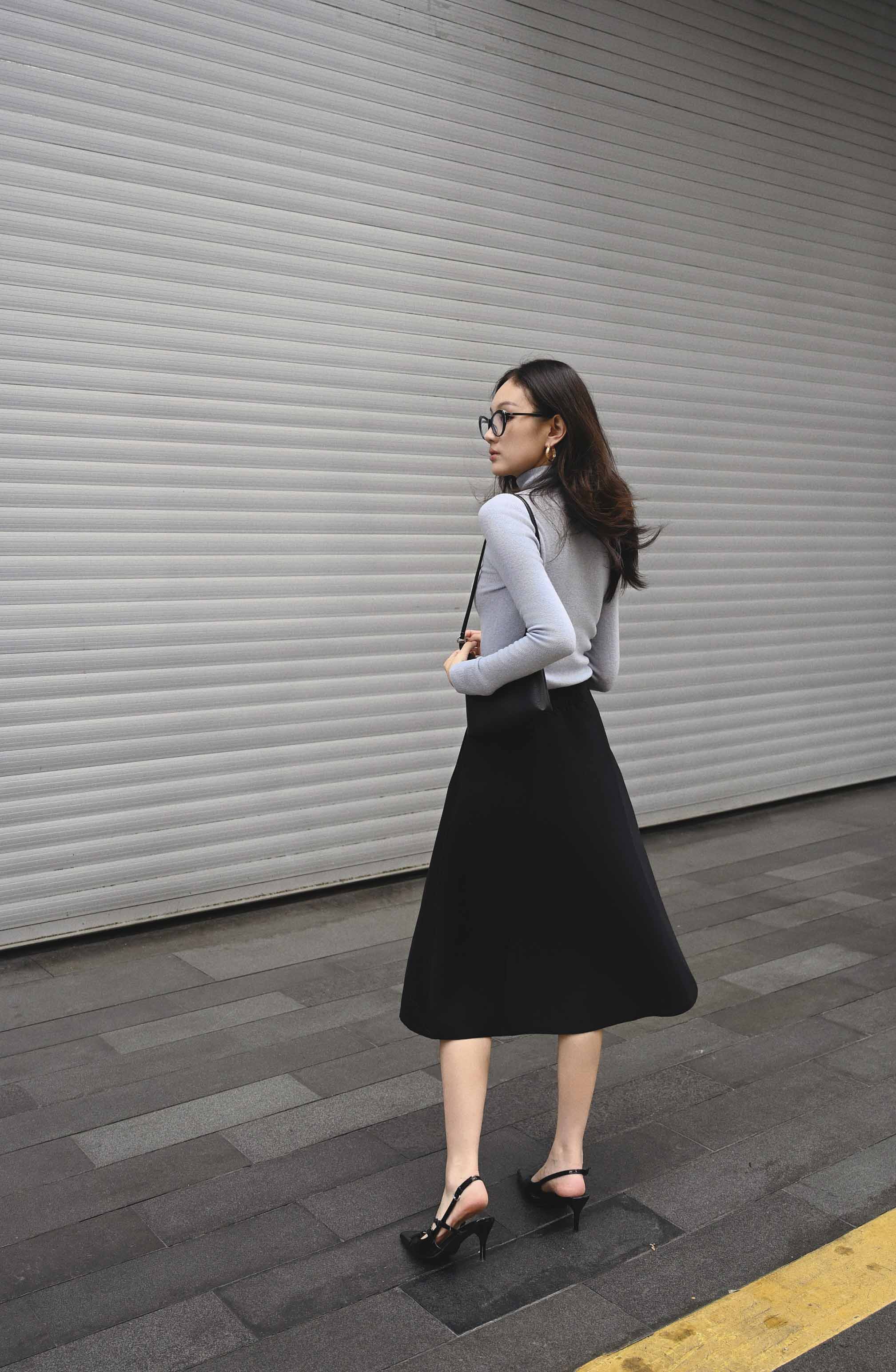 赫本风黑色伞裙,经典圆弧度裙装+高腰设计