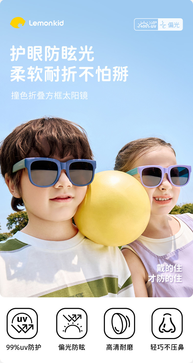 【阻隔有害光❗双倍耐磨】柠檬宝宝儿童墨镜男童女孩偏光防紫外线潮时尚眼镜折叠太阳镜。xa