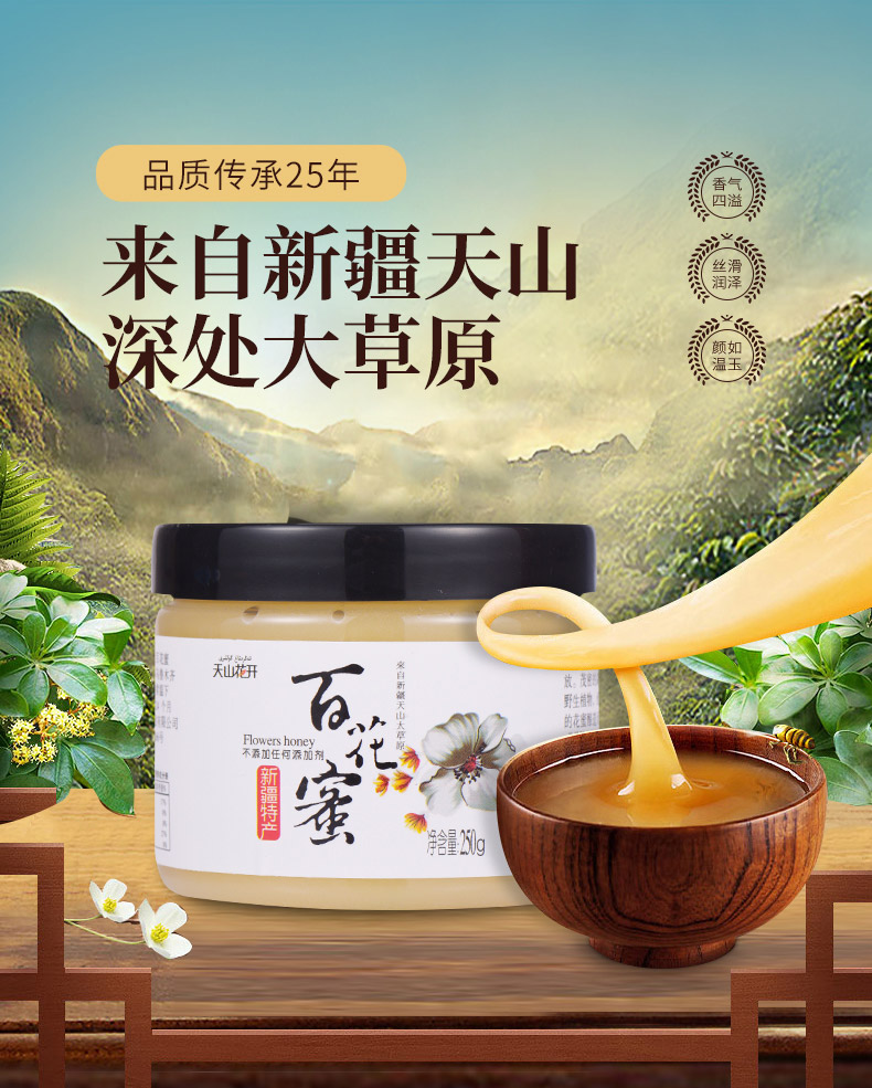 天山花开·新疆百花蜂蜜250g*2 严选伊犁蜜源 两瓶实惠装