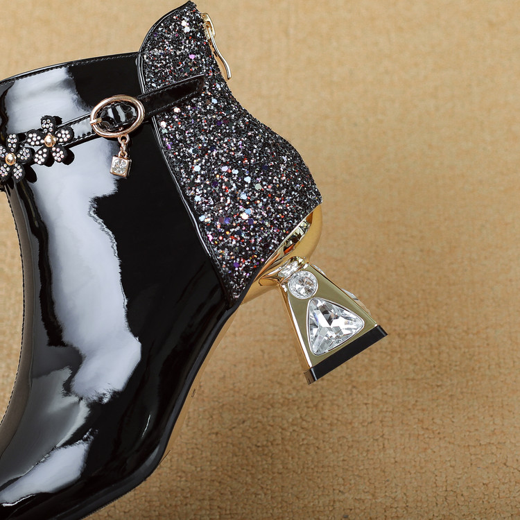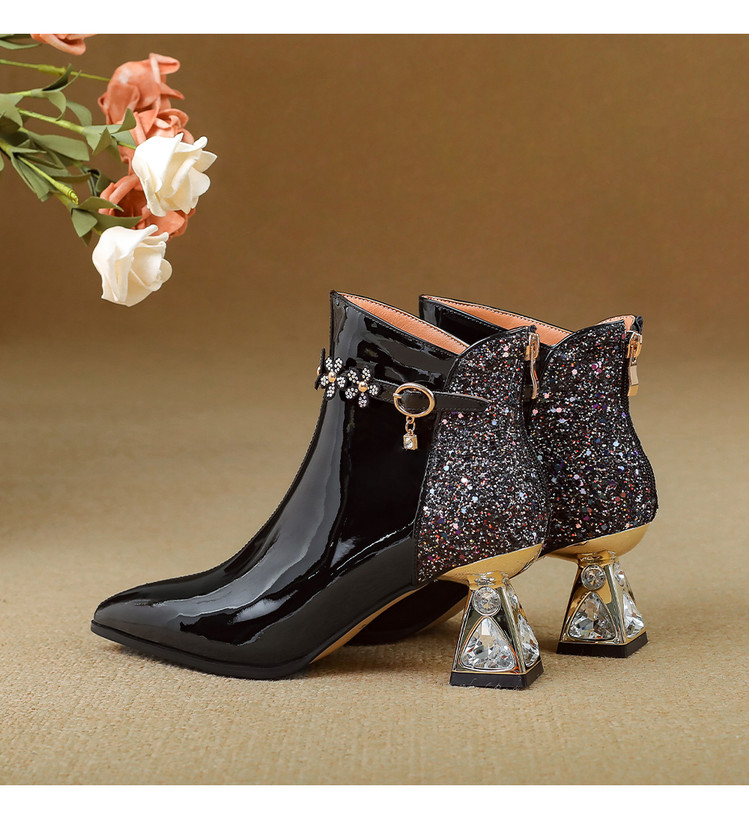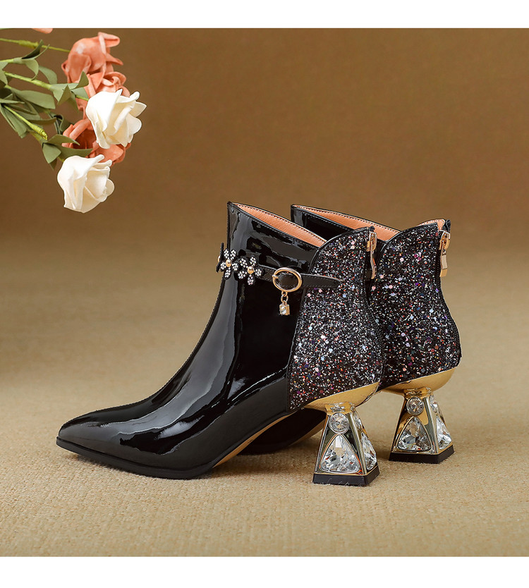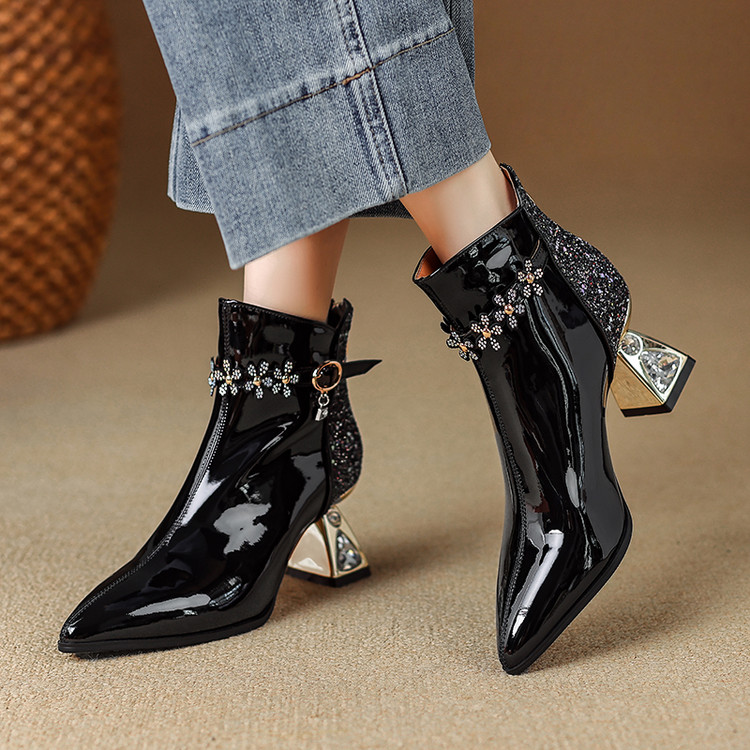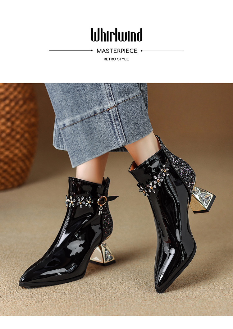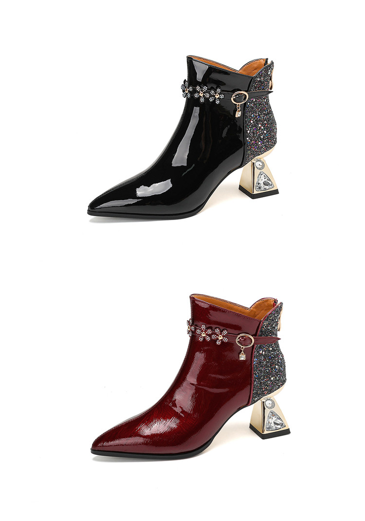 【预售5天】秋冬新款头层牛皮马丁靴女短靴粗跟尖头酒红色时尚超洋气女靴XME&898-806