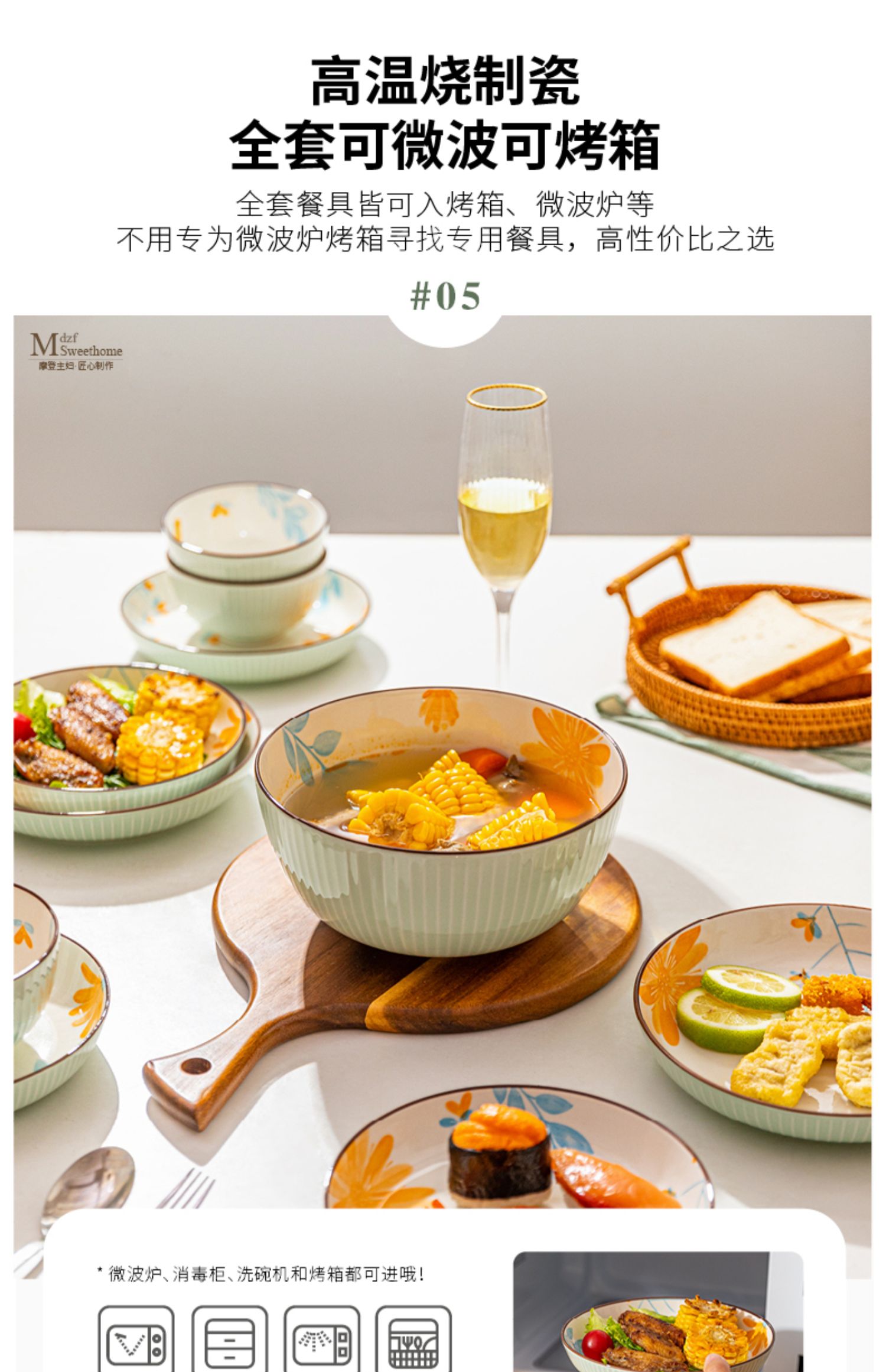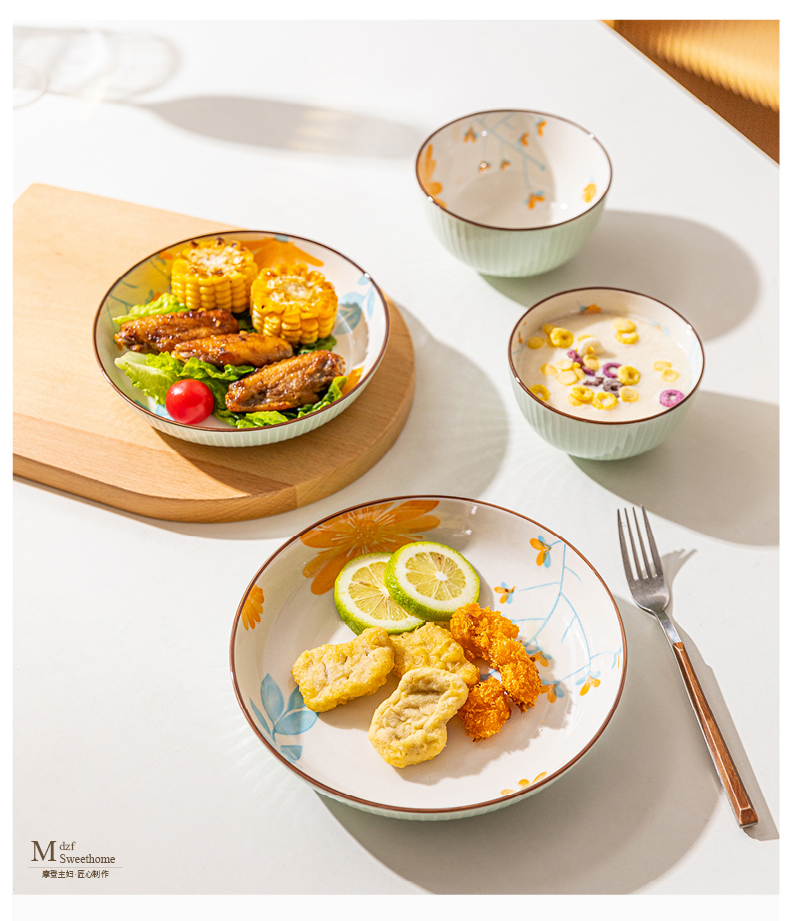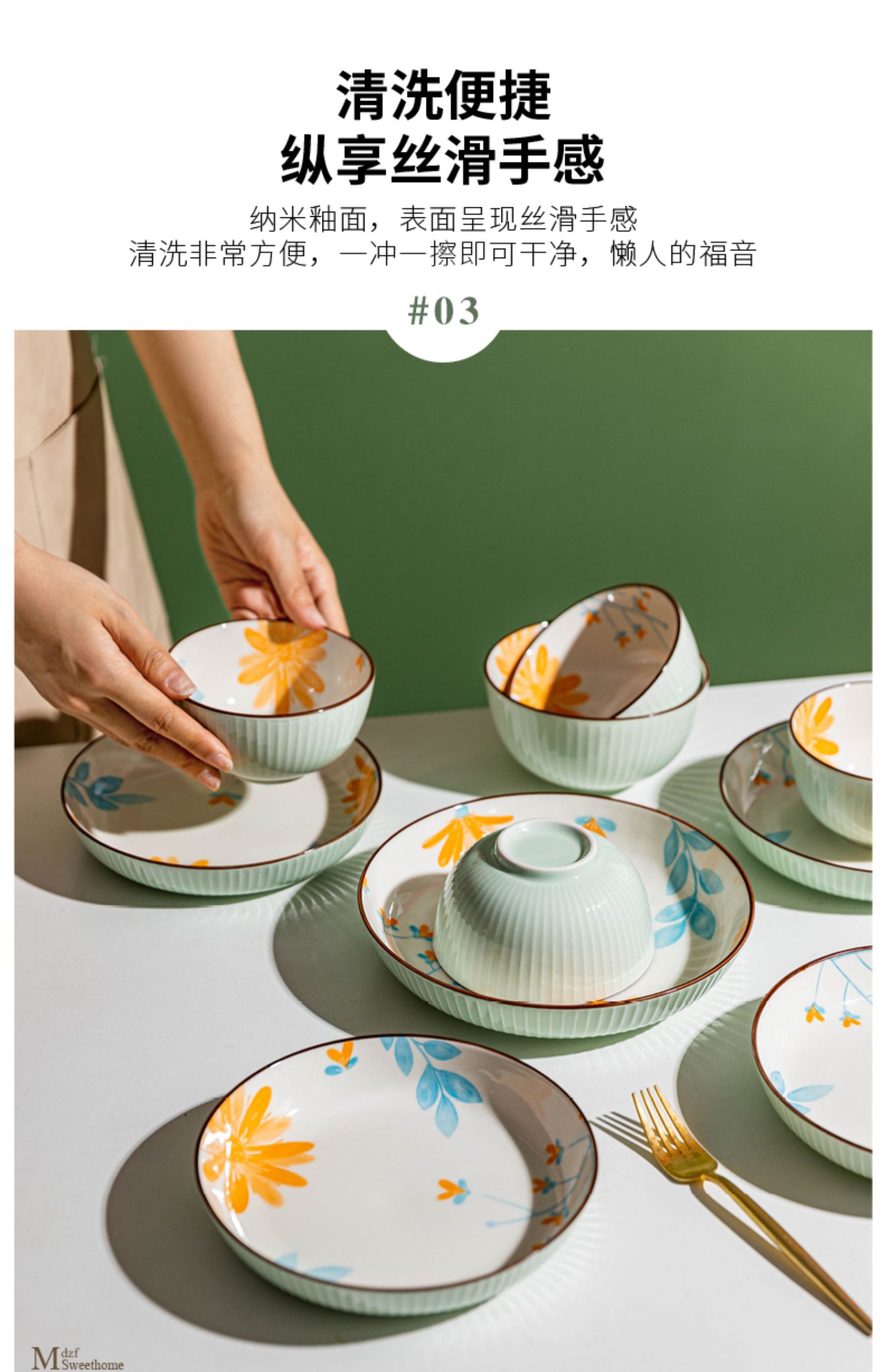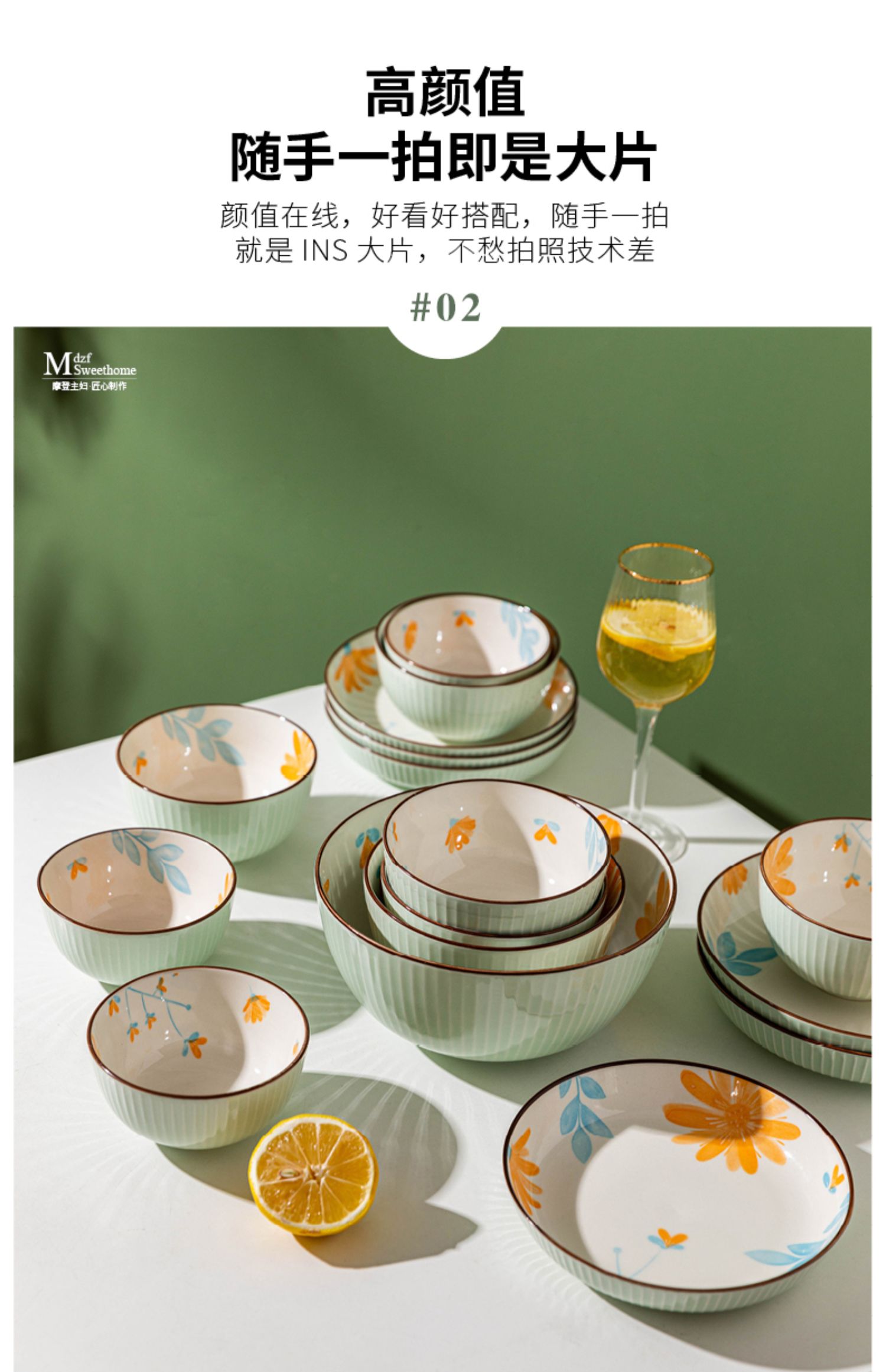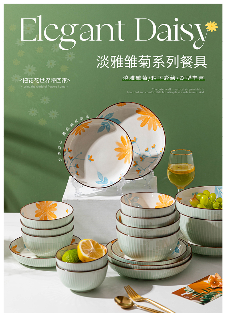 摩登主妇雏菊陶瓷盘子碗家用套装网红米饭碗面碗创意餐盘日式餐具