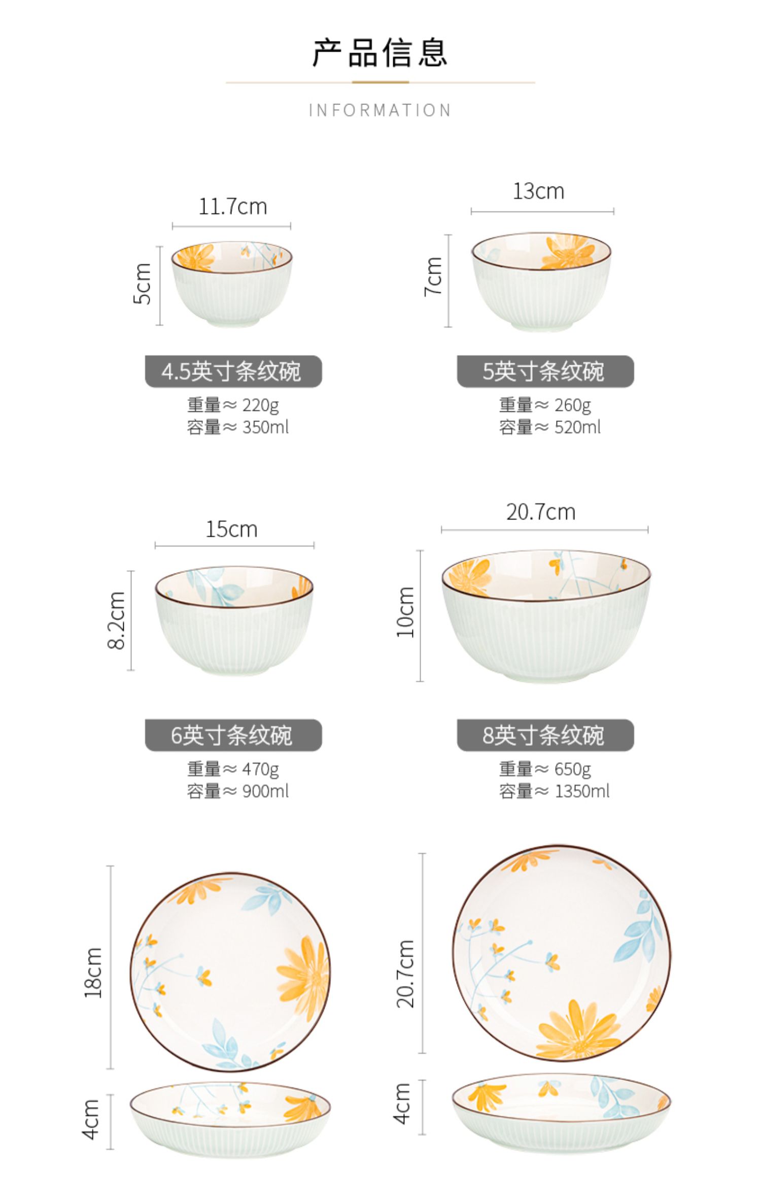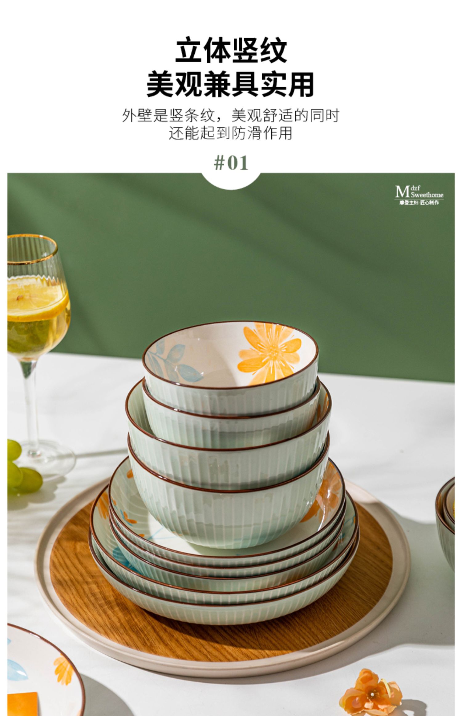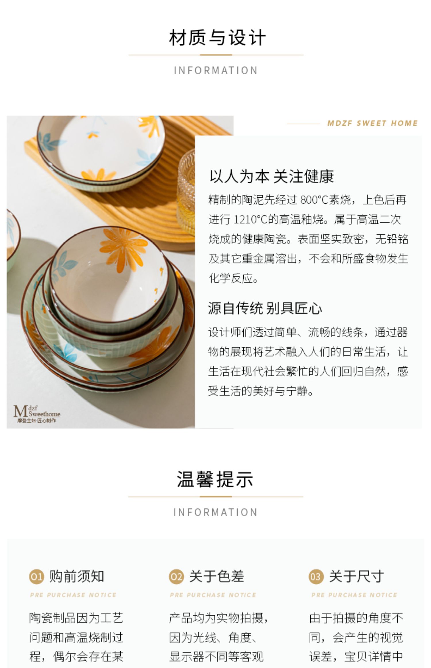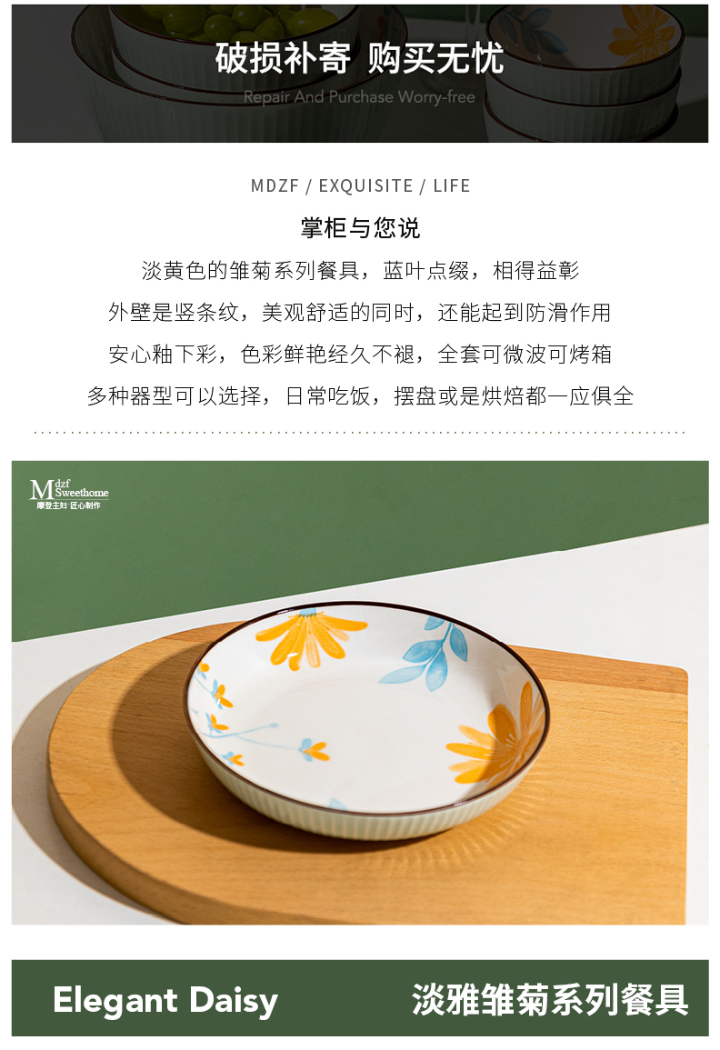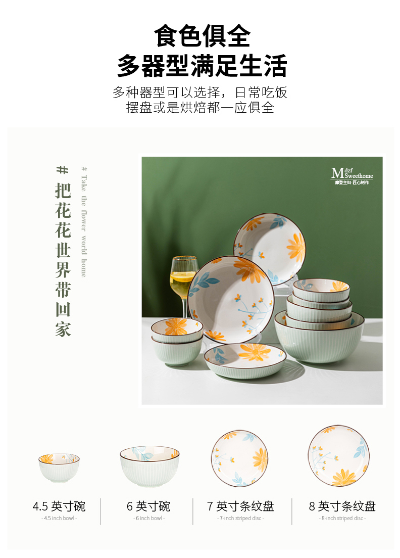 摩登主妇雏菊陶瓷盘子碗家用套装网红米饭碗面碗创意餐盘日式餐具