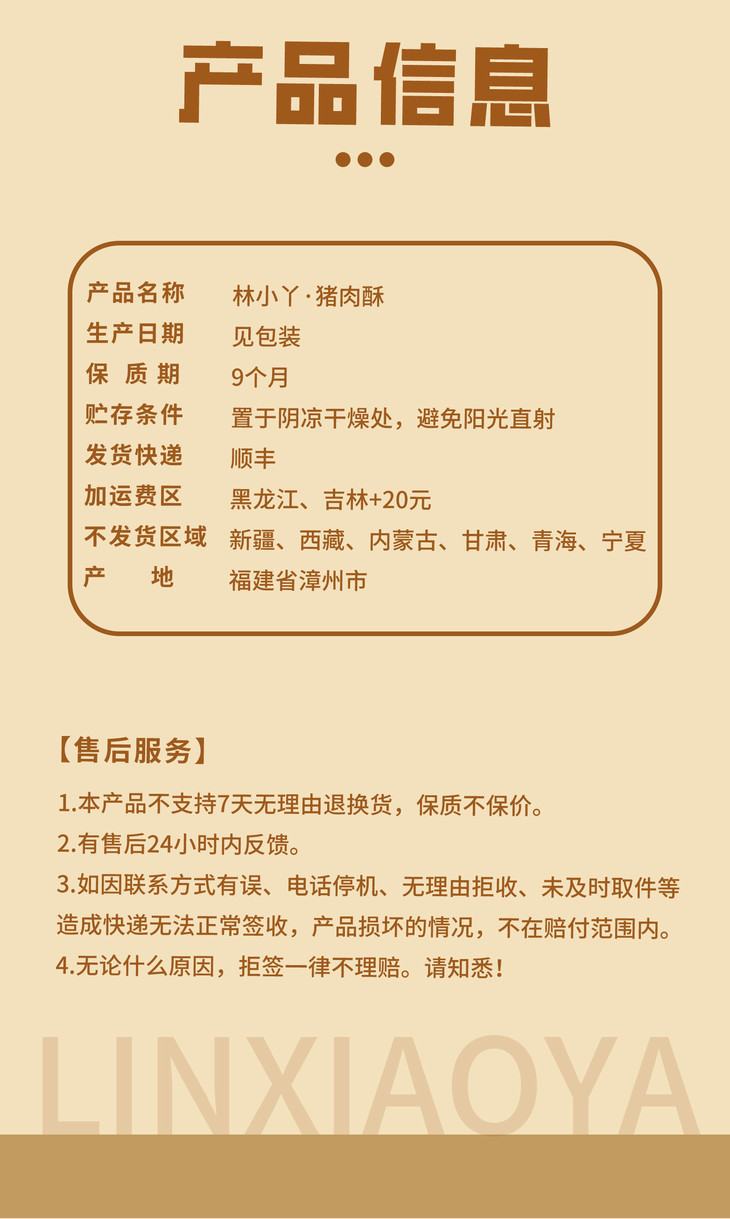 ②因生鲜产品具有特殊性和相关规定,下单时请一定认真确认收件信息,食品类不支持7天无理由退货换货,因客户原因导致转寄、延派、误派、擅自拒收、退货,口感问题等不在理赔范围。