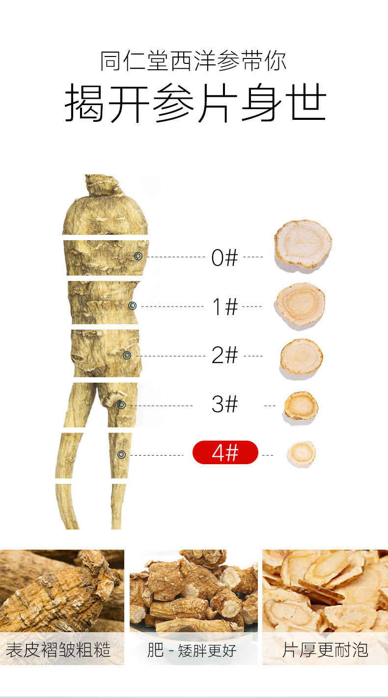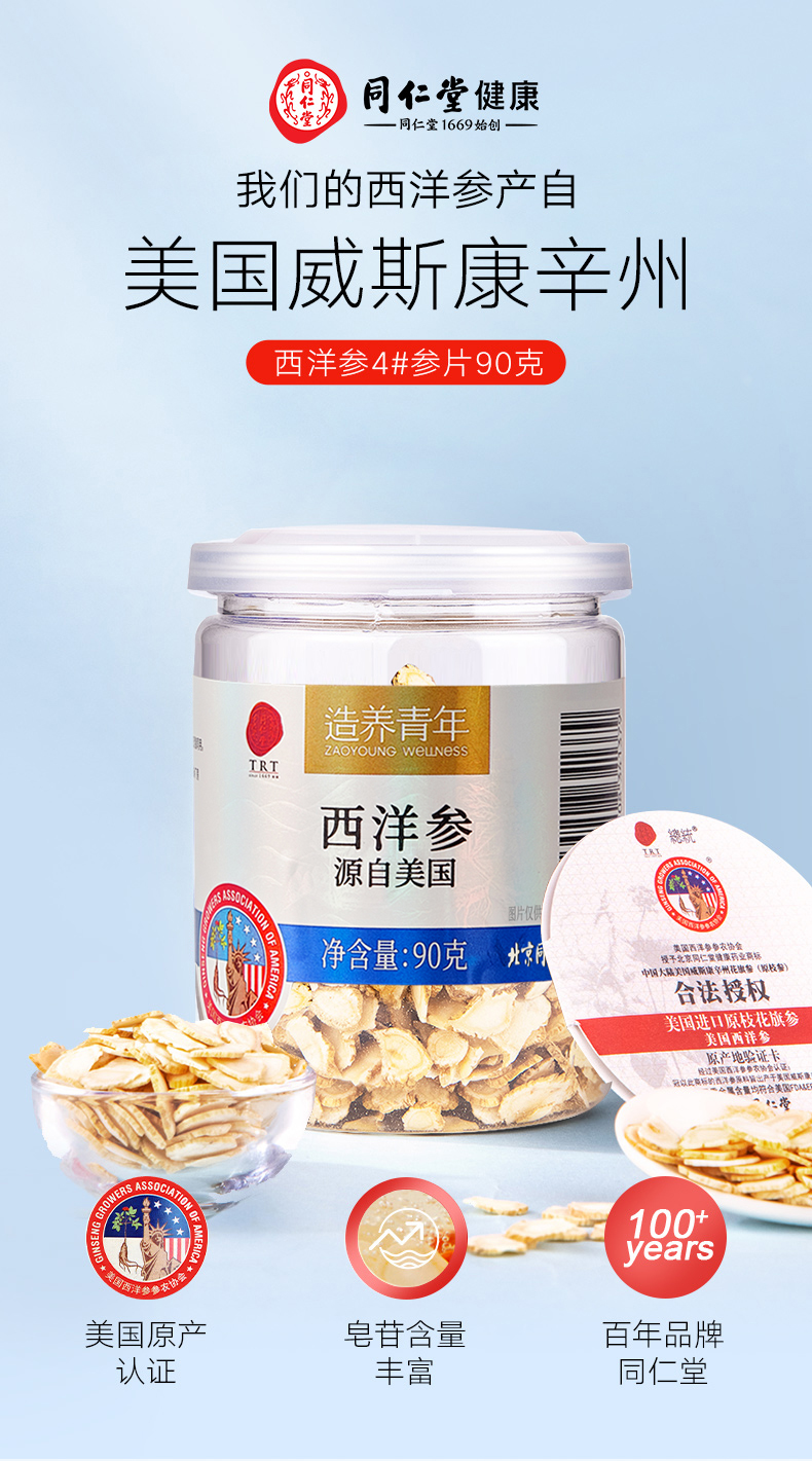 【正宗同仁堂品牌】北京同仁堂 美国西洋参片4# 90g 表皮褶皱 参香浓郁 微苦回甘 SY