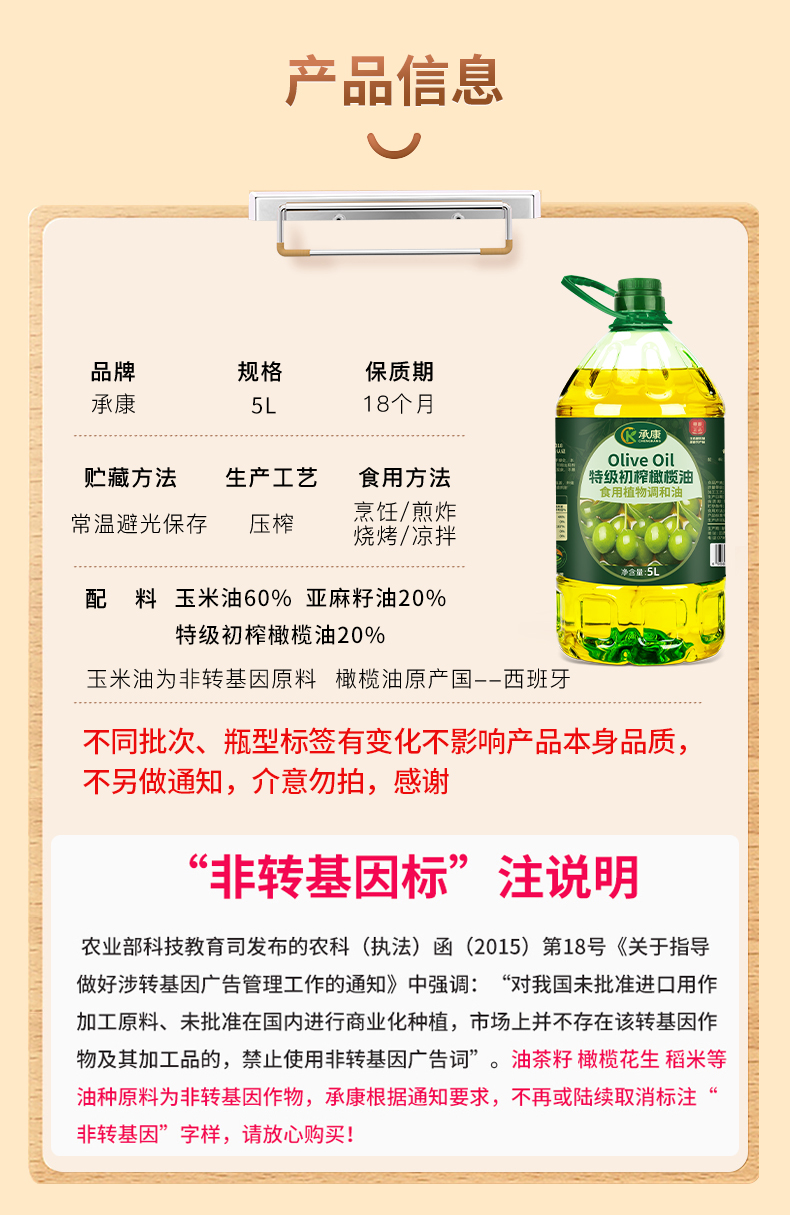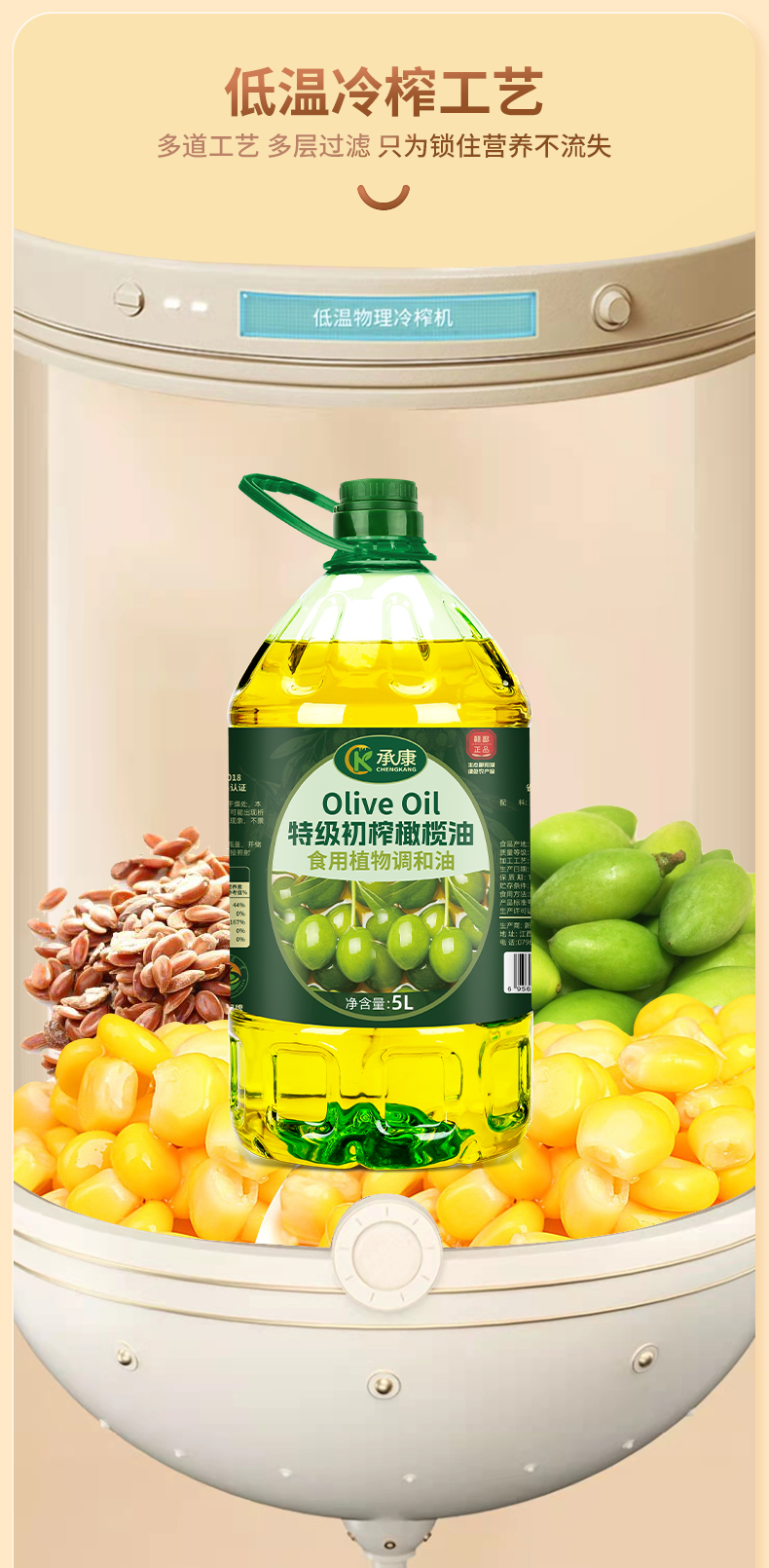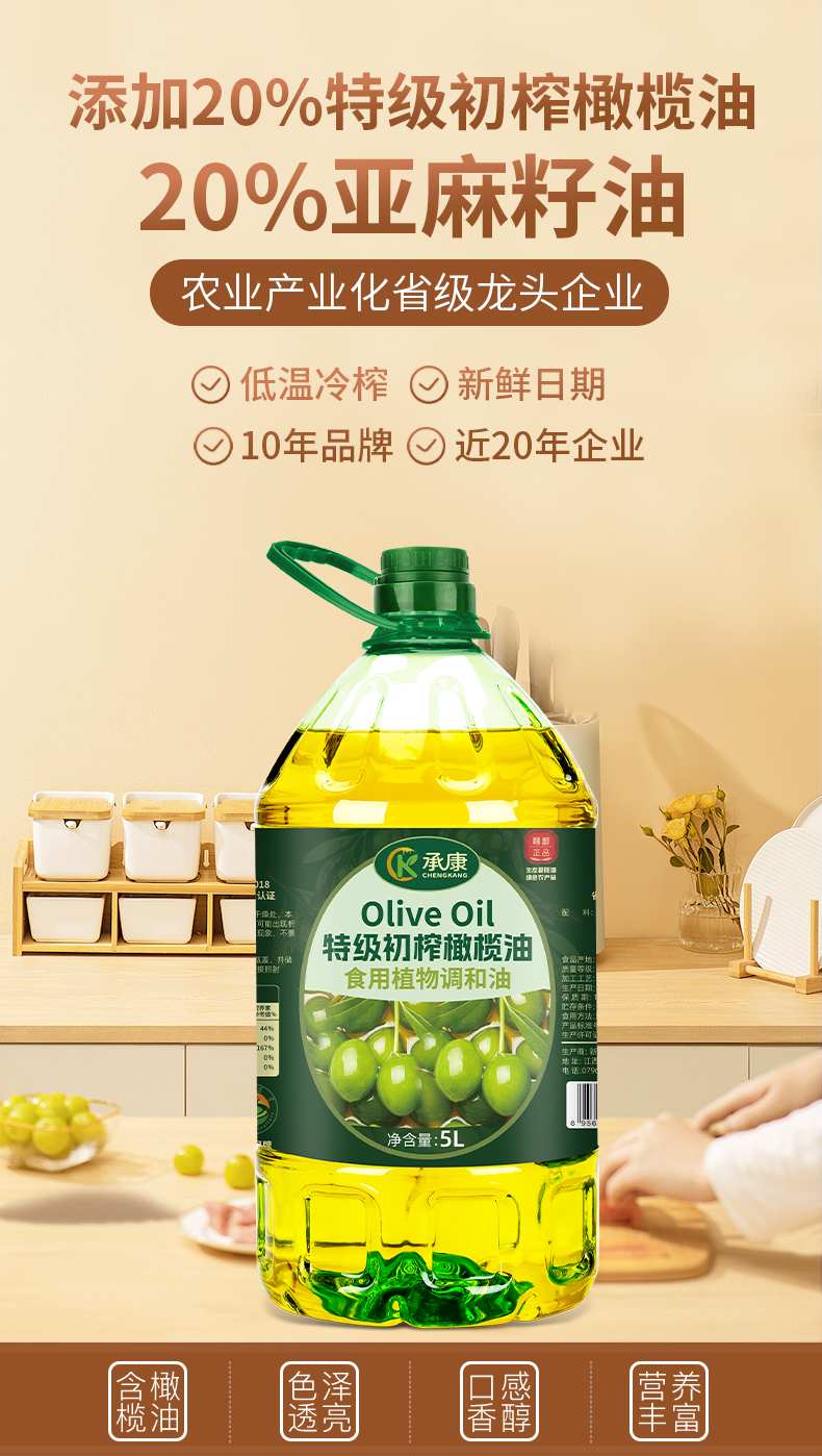 【拓高】 承康 特级初榨橄榄油(添加20%亚麻籽油)5L/桶【周日不发货】