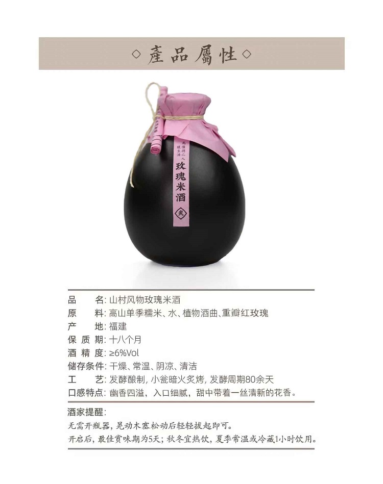 正安优选·山村风物玫瑰米酒500ml【入口食品不支持7天无理由退货】
