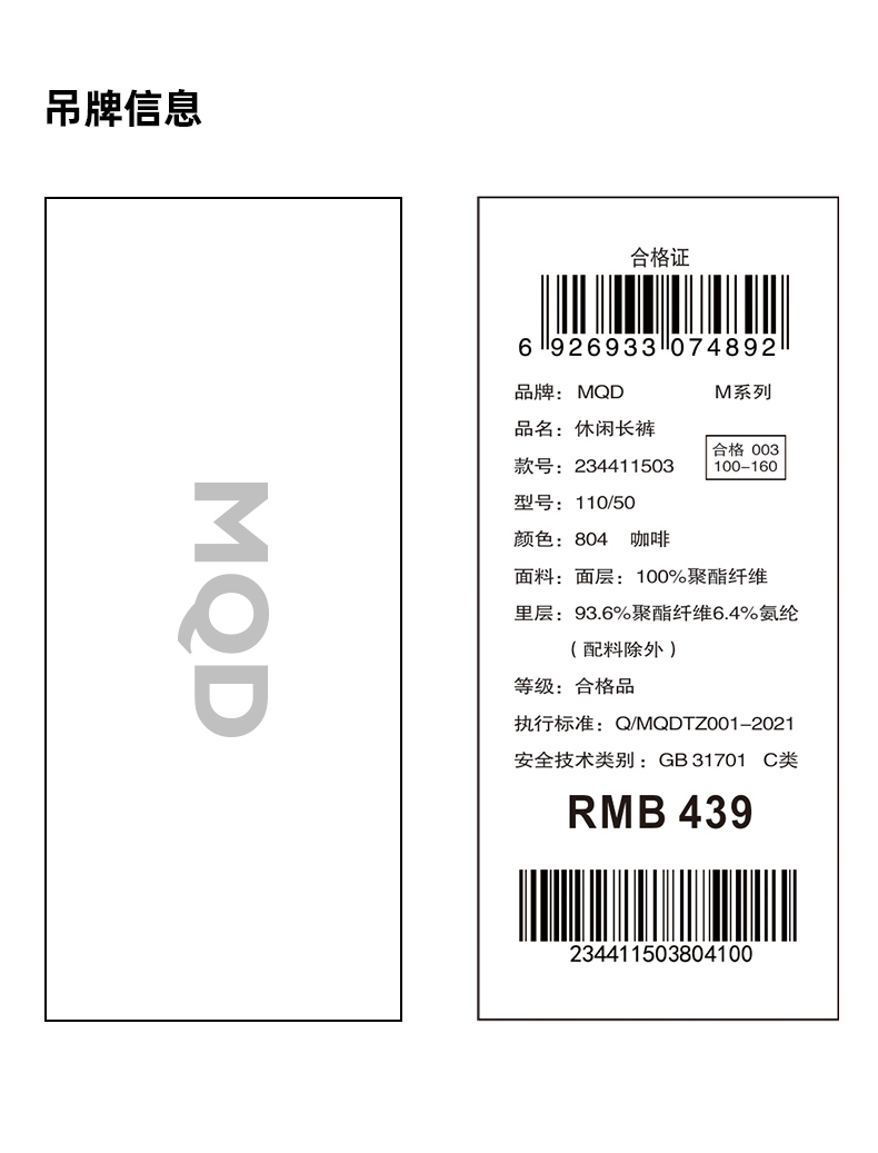 【MQD】男大童秋季新品经典百搭束脚休闲长裤