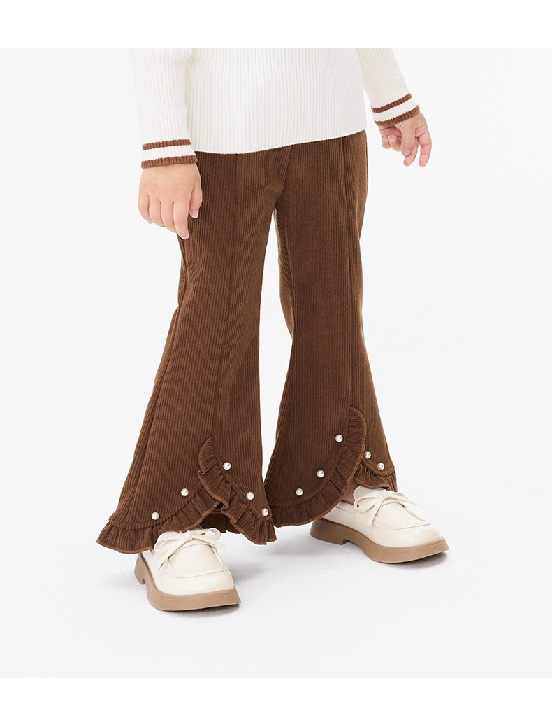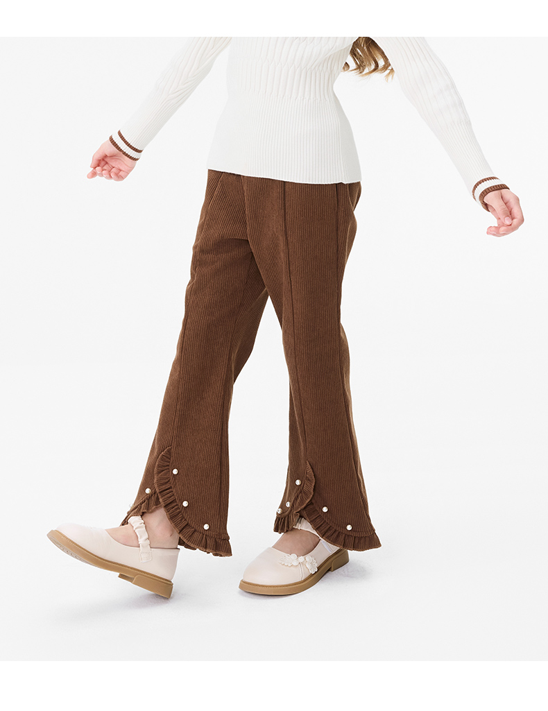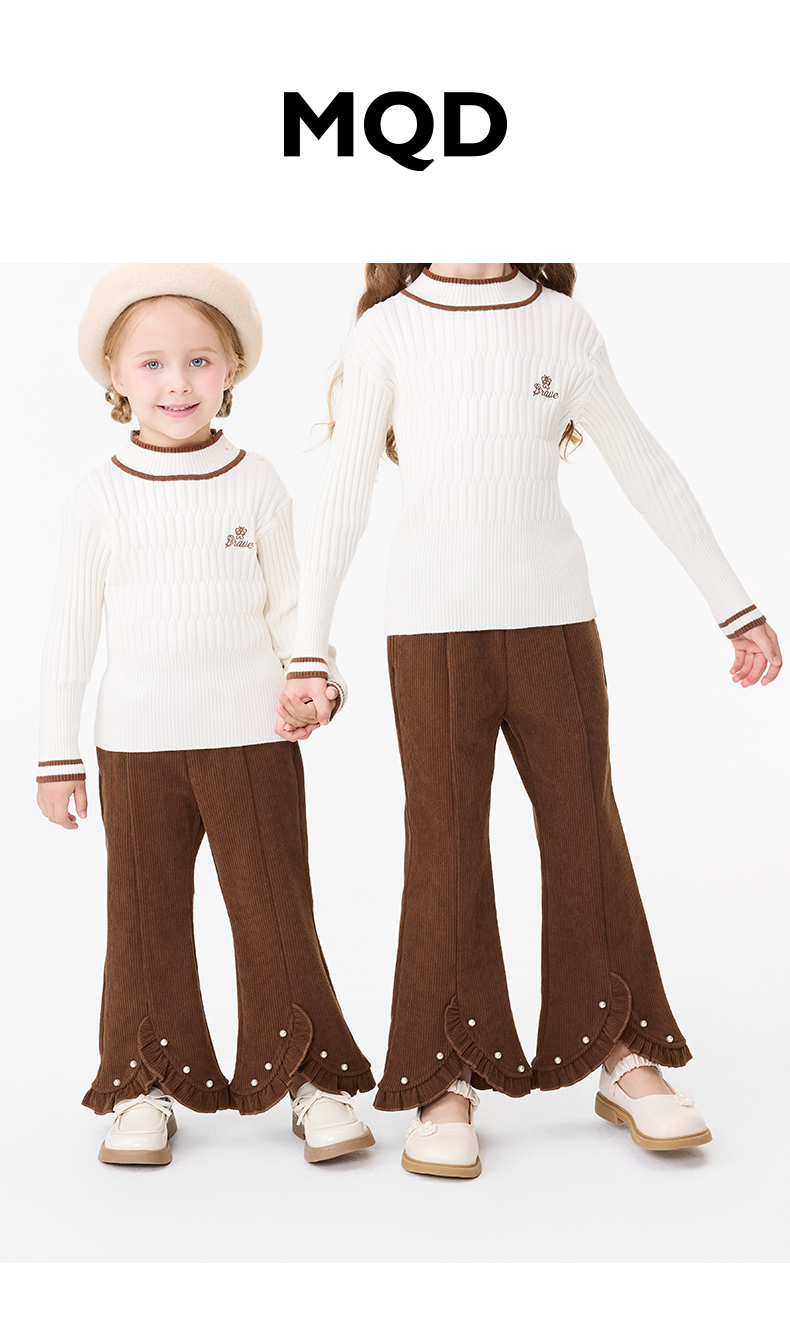 【秒3】【MQD】女童冬季甜美可爱花边休闲针织长裤