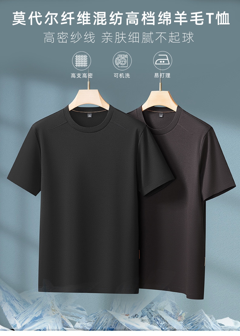 【DKP】【莫代尔+绵羊毛】大依优型大码男装螺纹领纯色短袖运动休闲T恤上衣