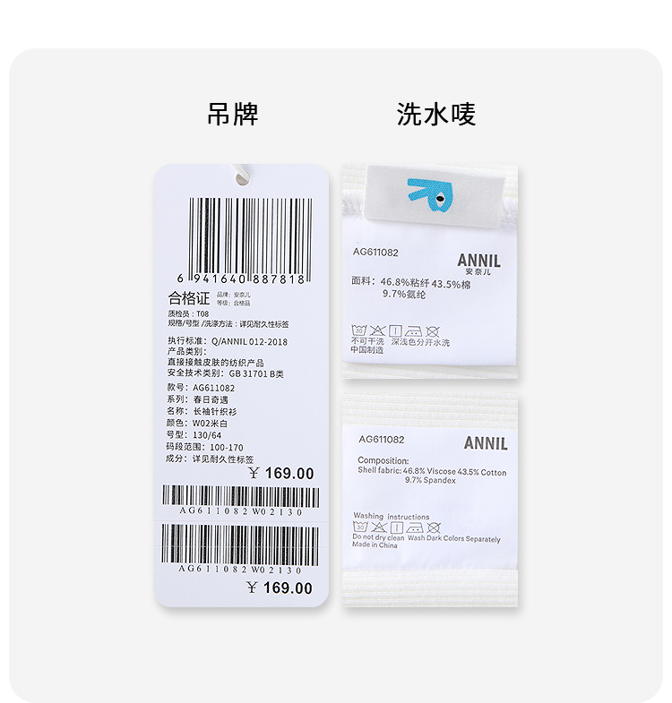 【实体店同款】女童长袖针织衫春季新款安奈儿童装AG611082