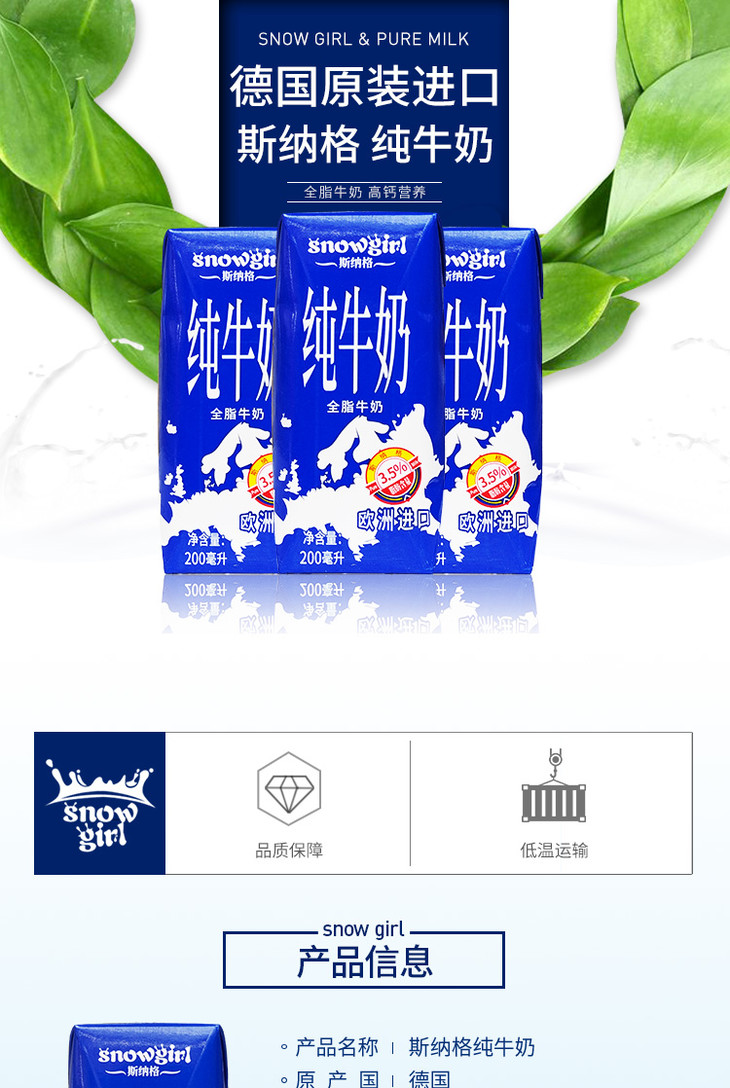 200ml*10斯纳格纯牛奶3.5% 德国原装进口