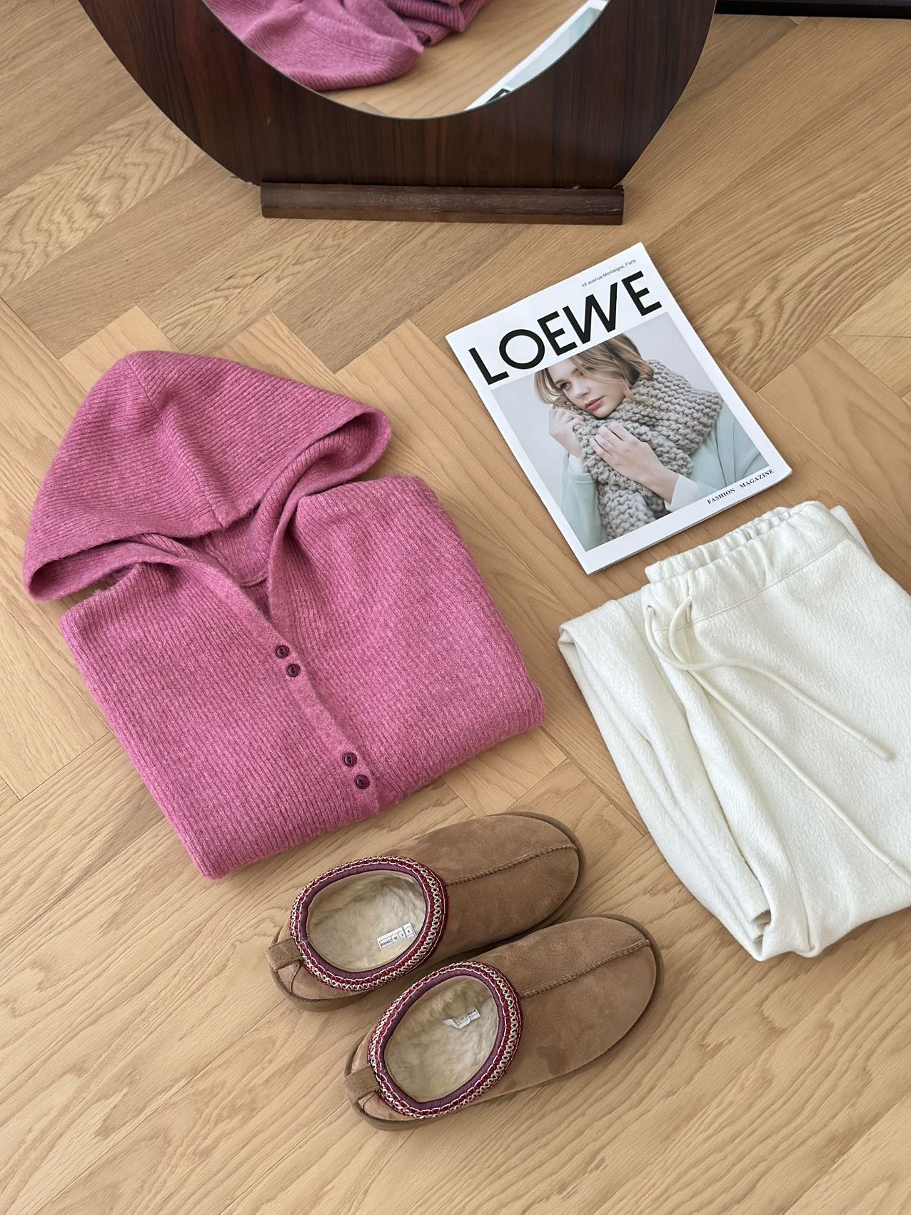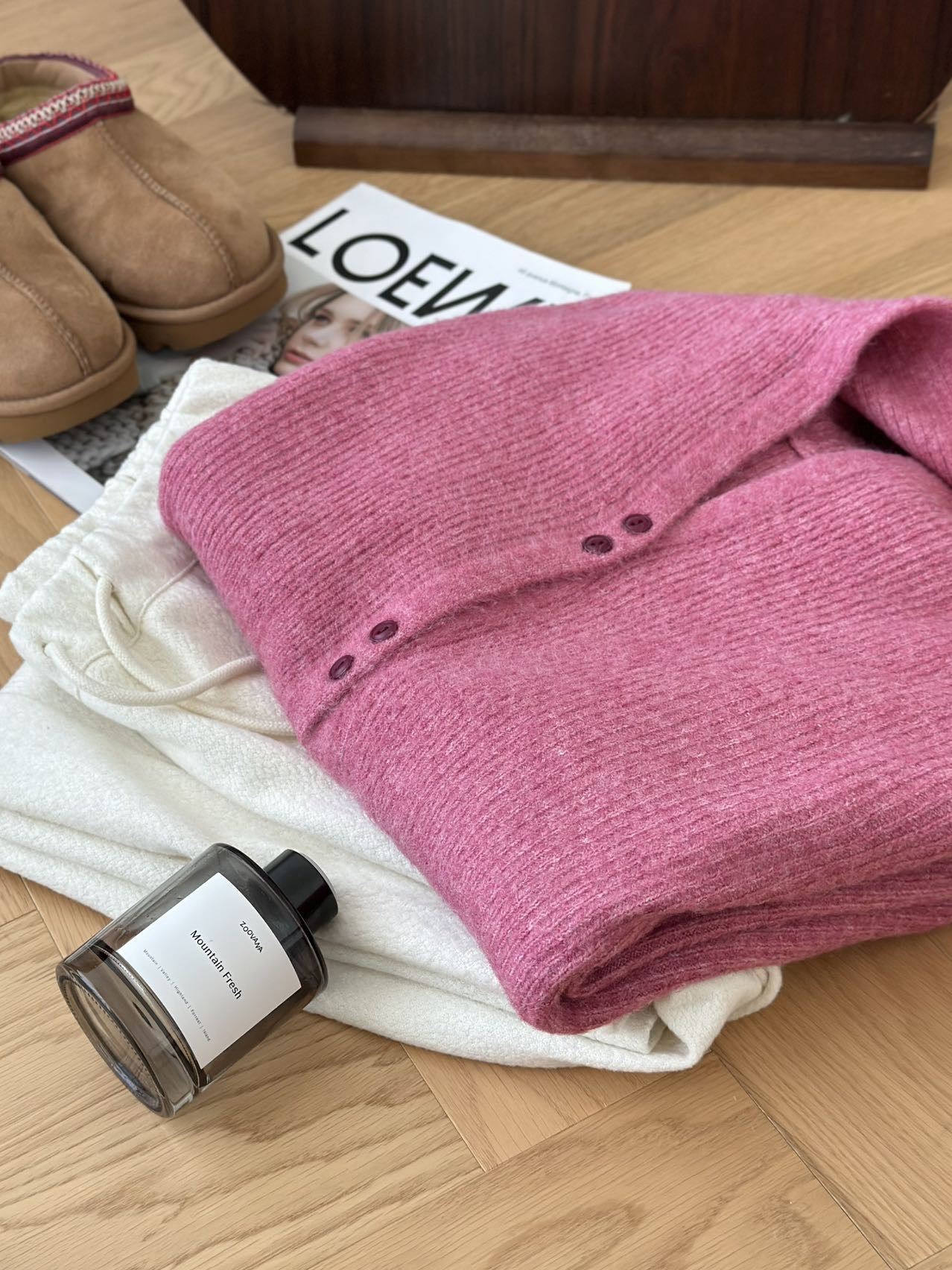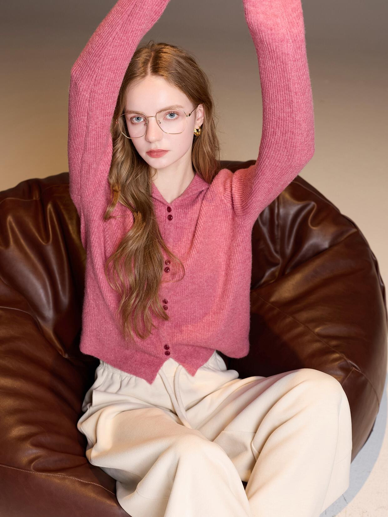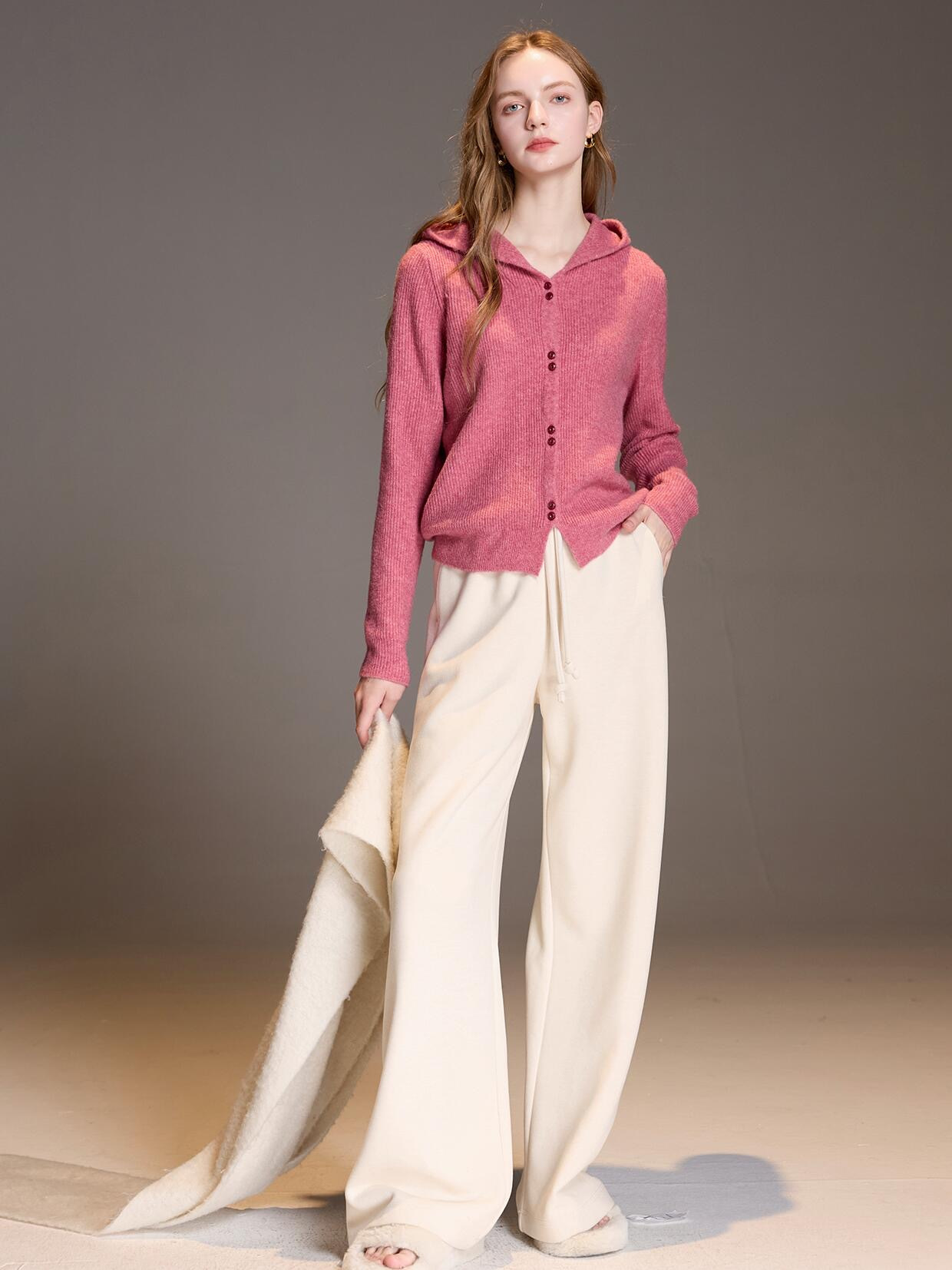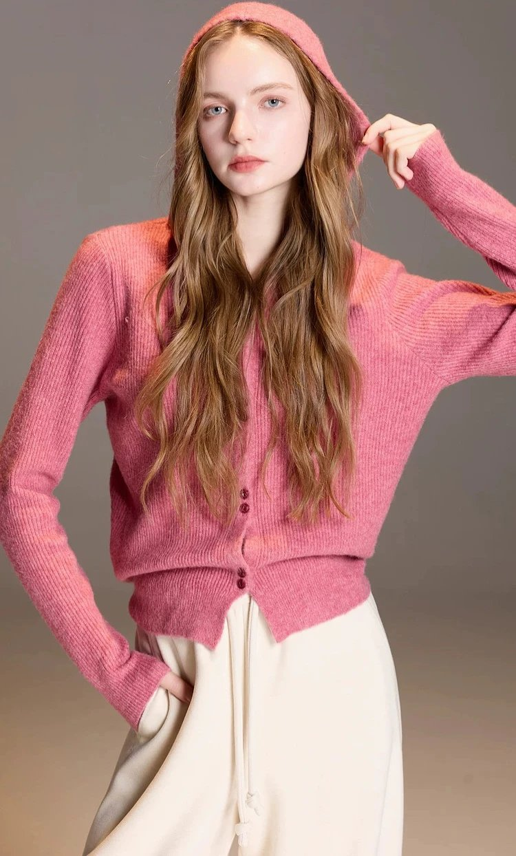 【CosAcosB 显白树莓粉连帽双扣羊毛开衫-JS3699123】显白色系 材质舒适亲肤