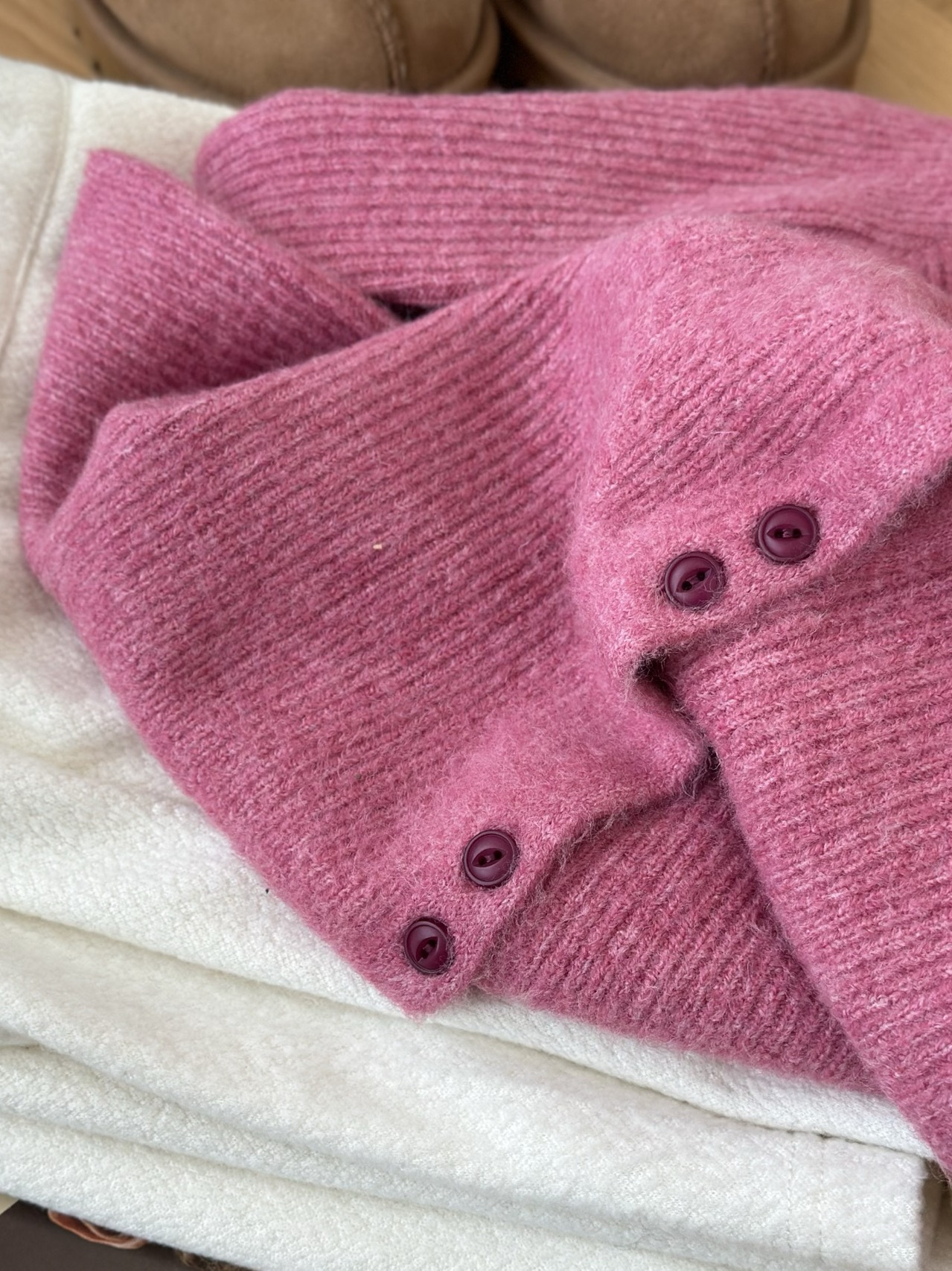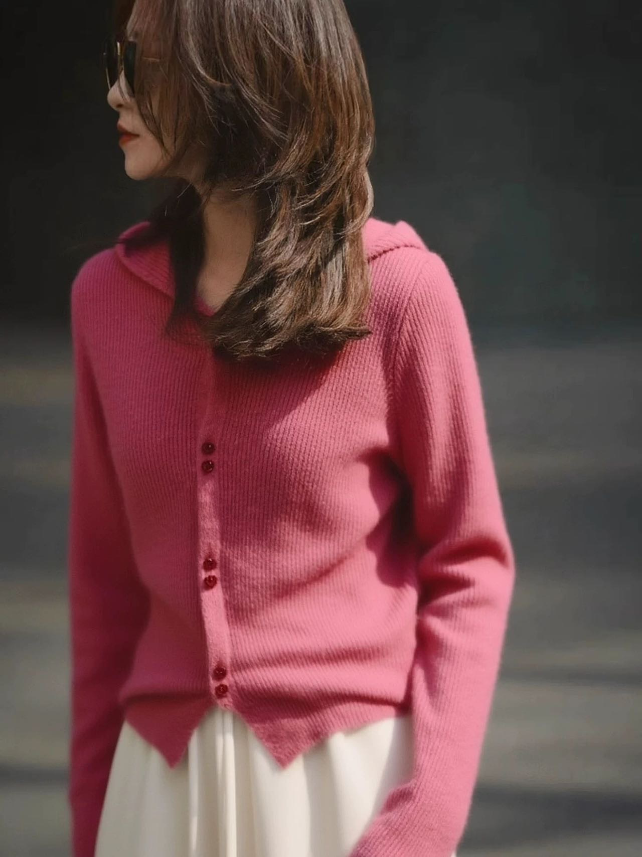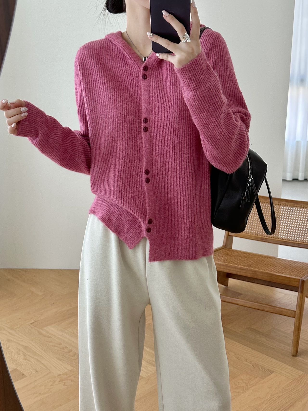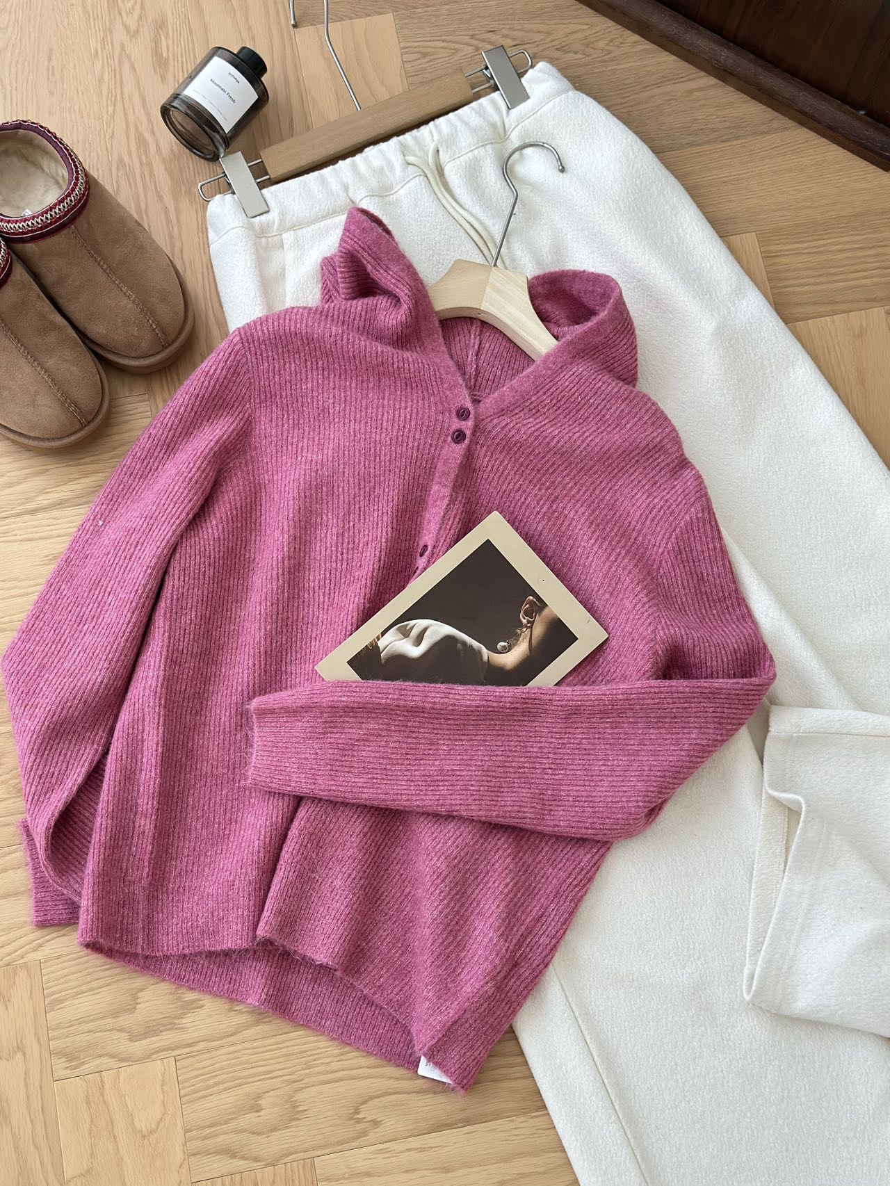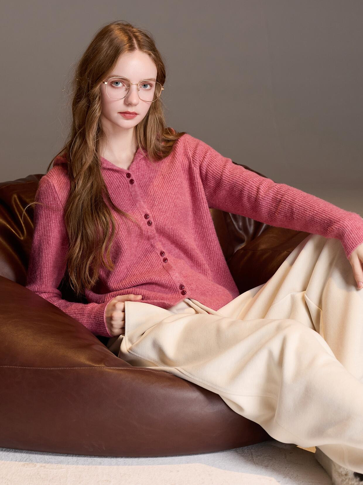 【CosAcosB 显白树莓粉连帽双扣羊毛开衫-JS3699123】显白色系 材质舒适亲肤