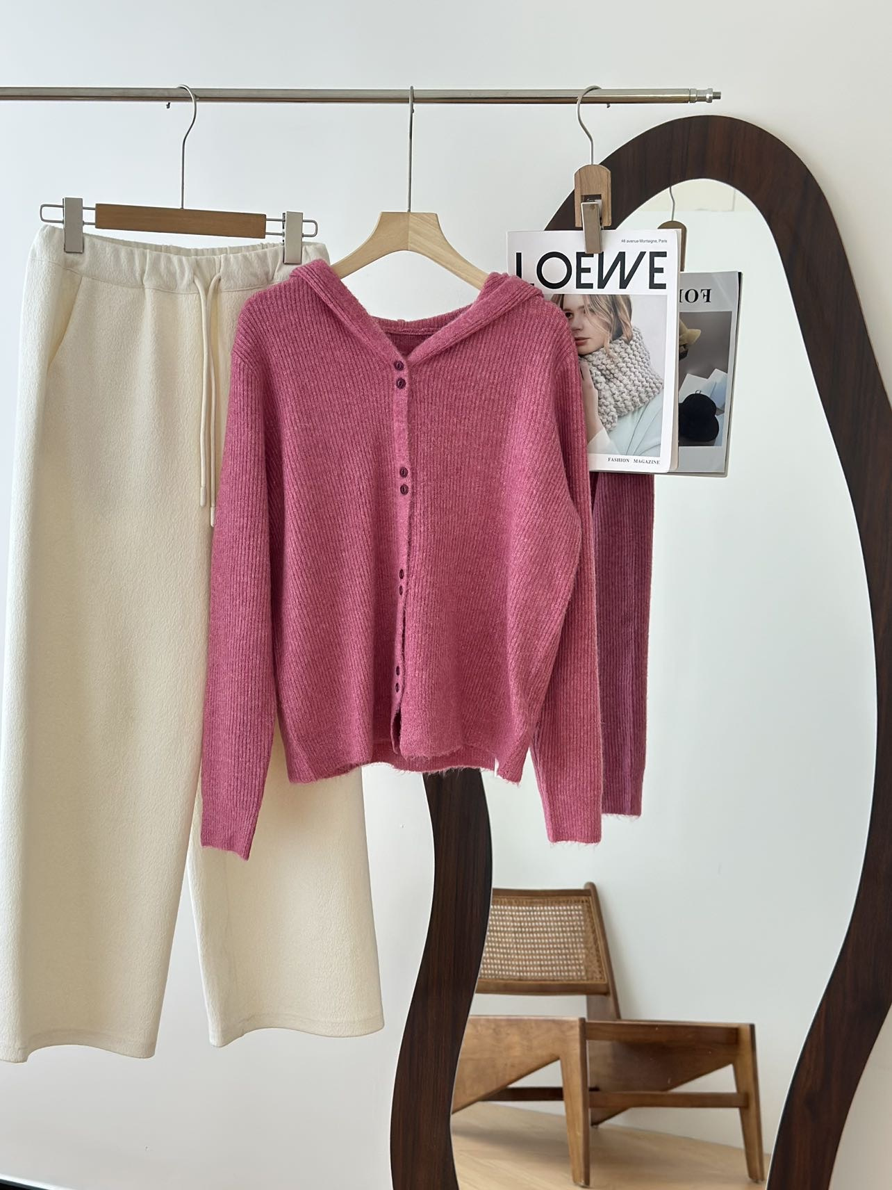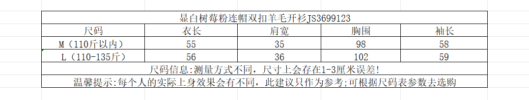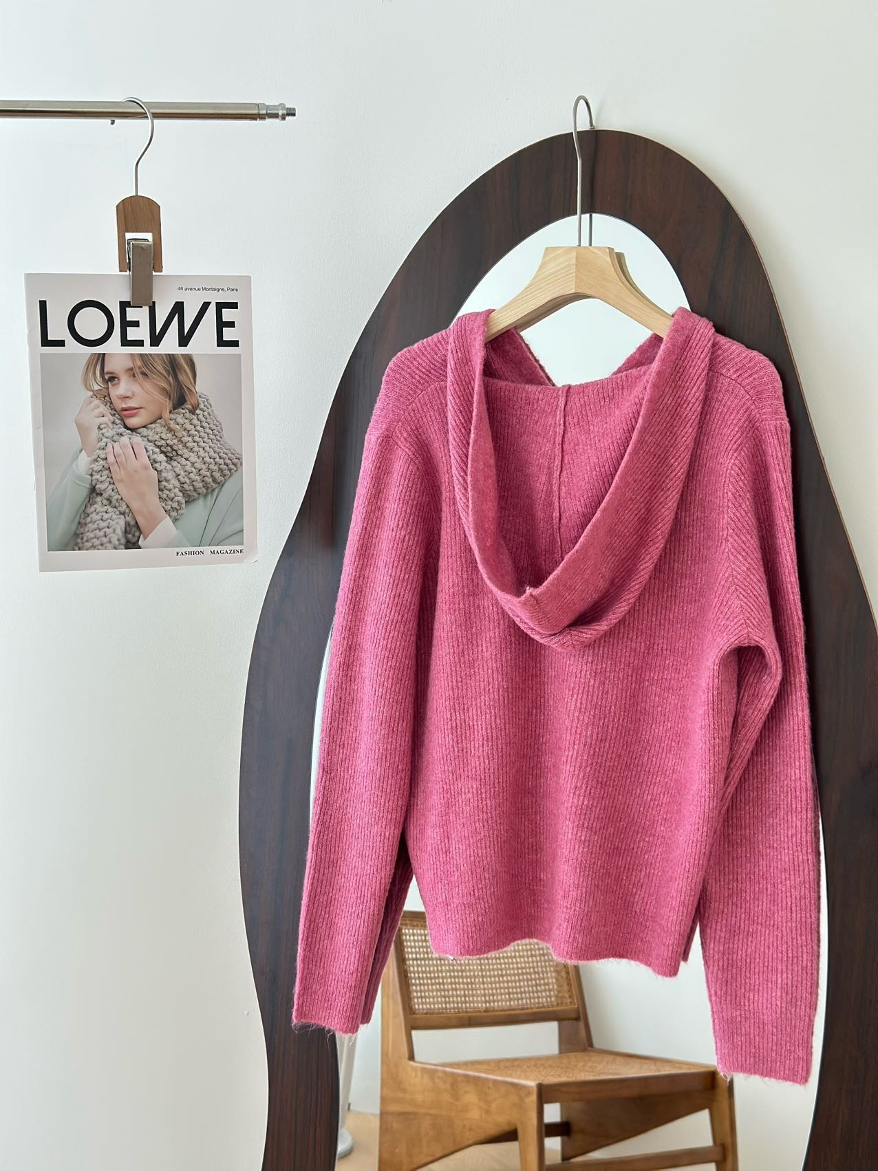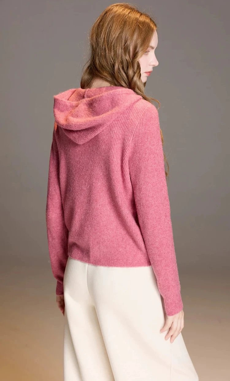 品名:cosAcosB显白树莓粉连帽双扣羊毛开衫JS3699123