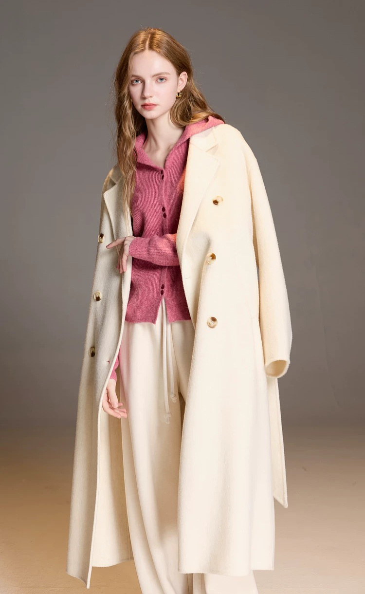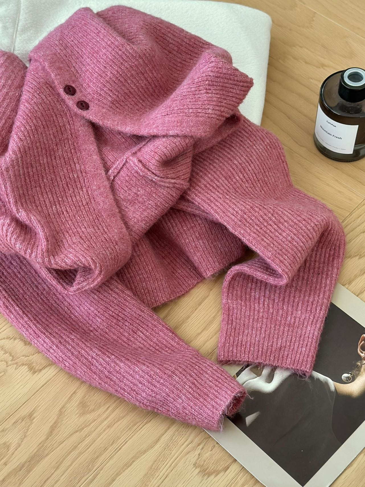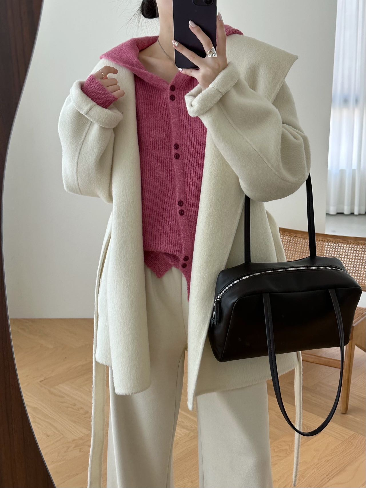 品名:cosAcosB显白树莓粉连帽双扣羊毛开衫JS3699123