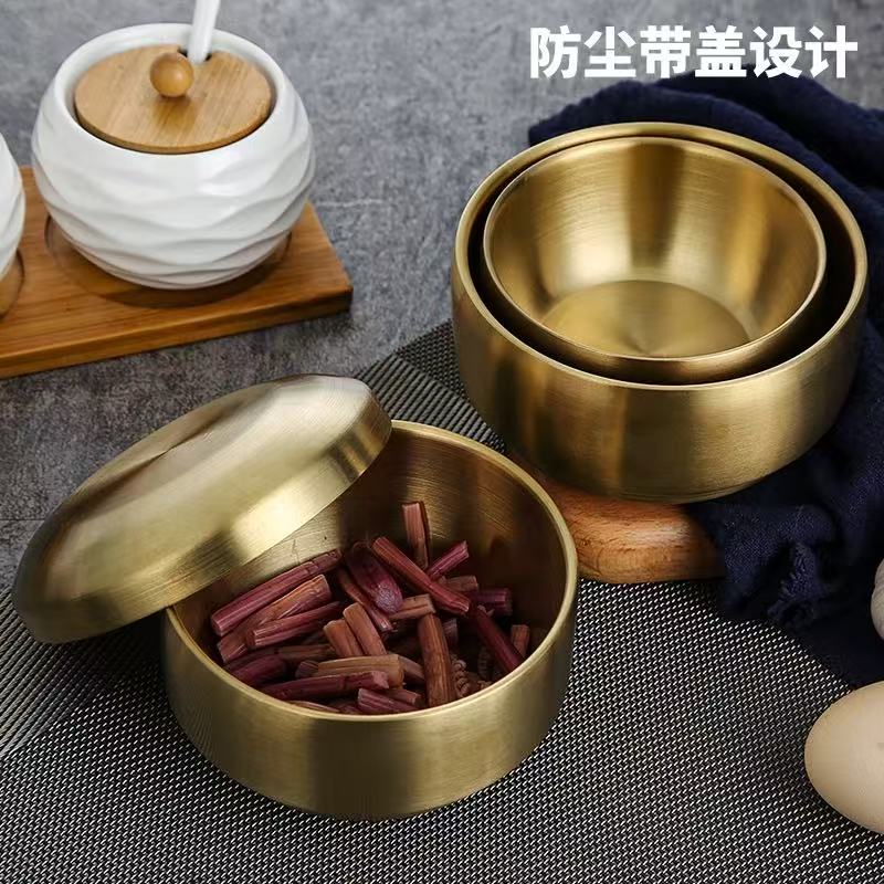 밥공기 韩式不锈钢金色带盖米饭碗