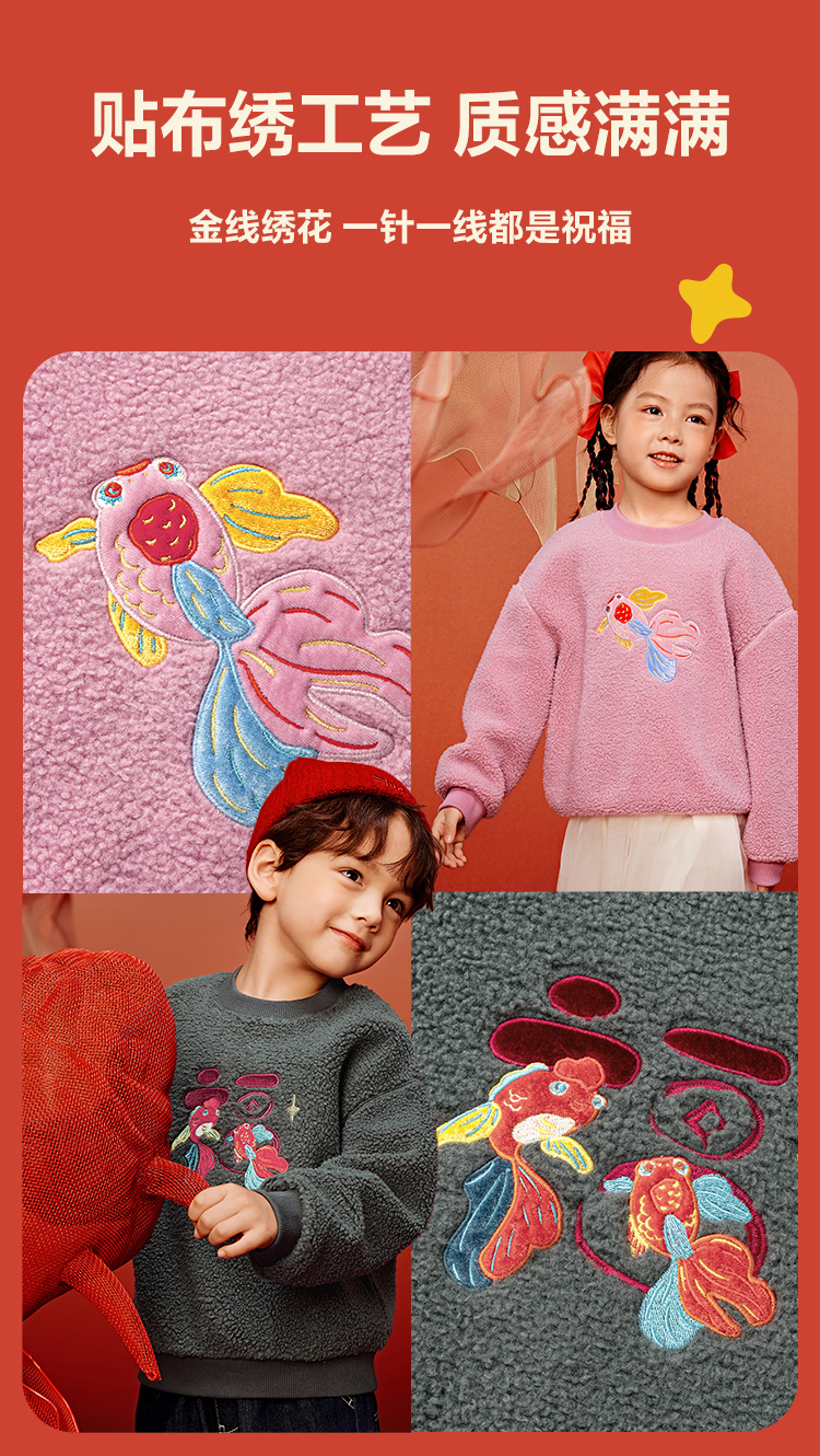 【非遗联名】迷你巴拉巴拉男女童卫衣冬拜年服卫衣儿童长袖上衣