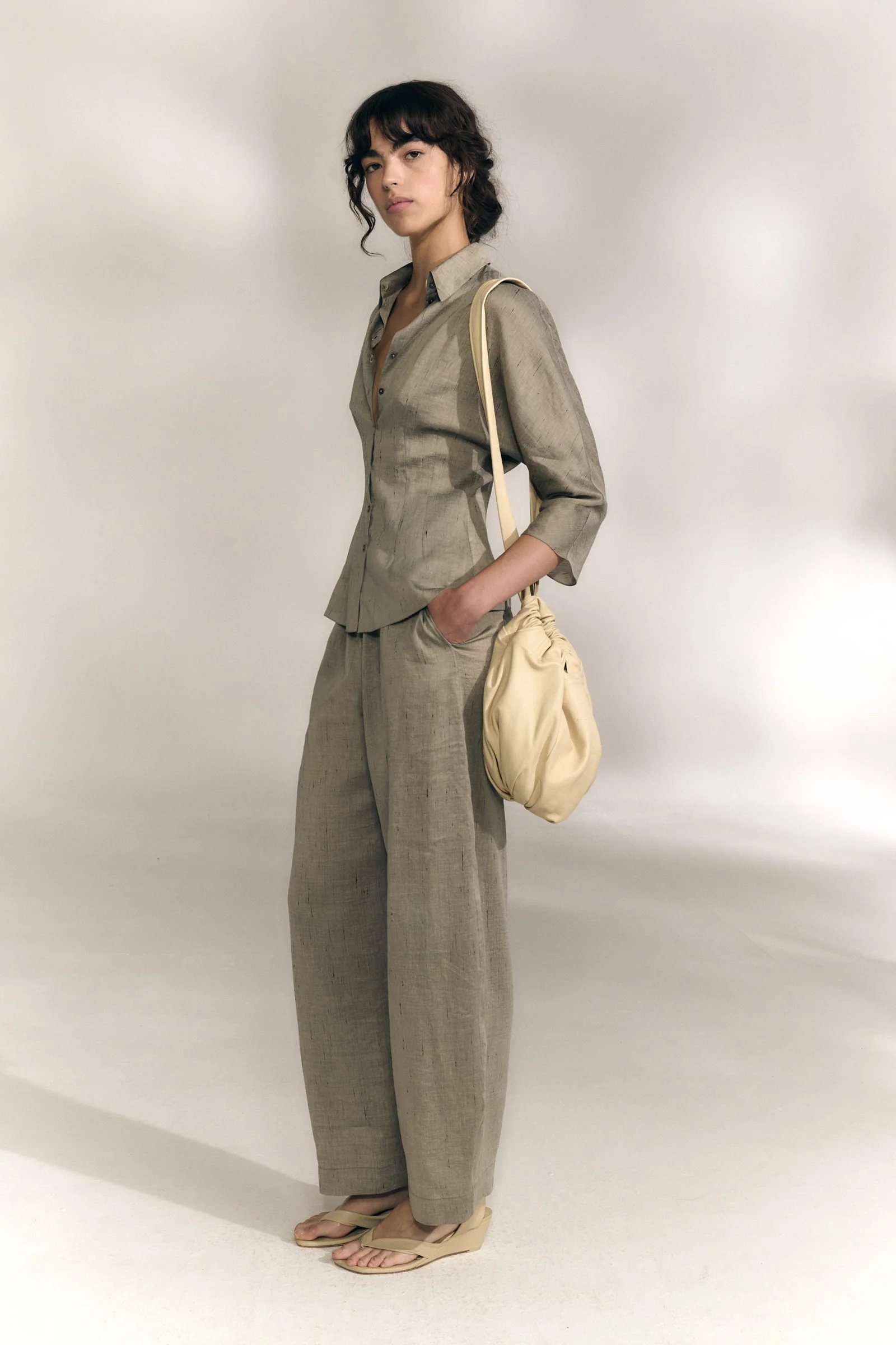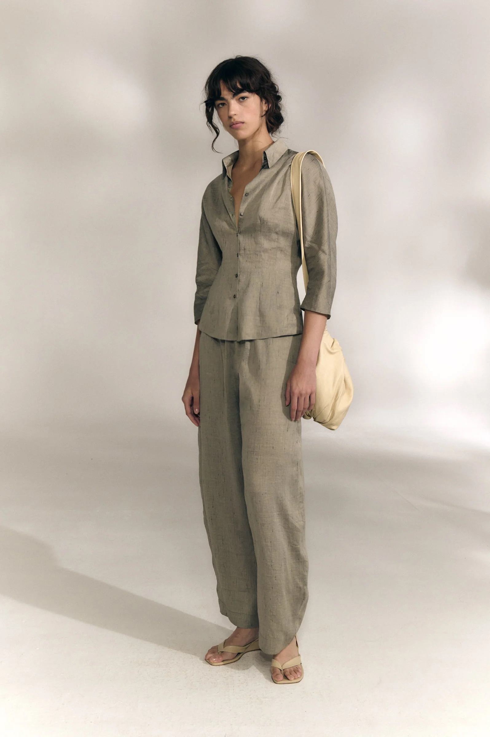 49%亚麻 36%人造丝 14%真丝 1%初剪羊毛