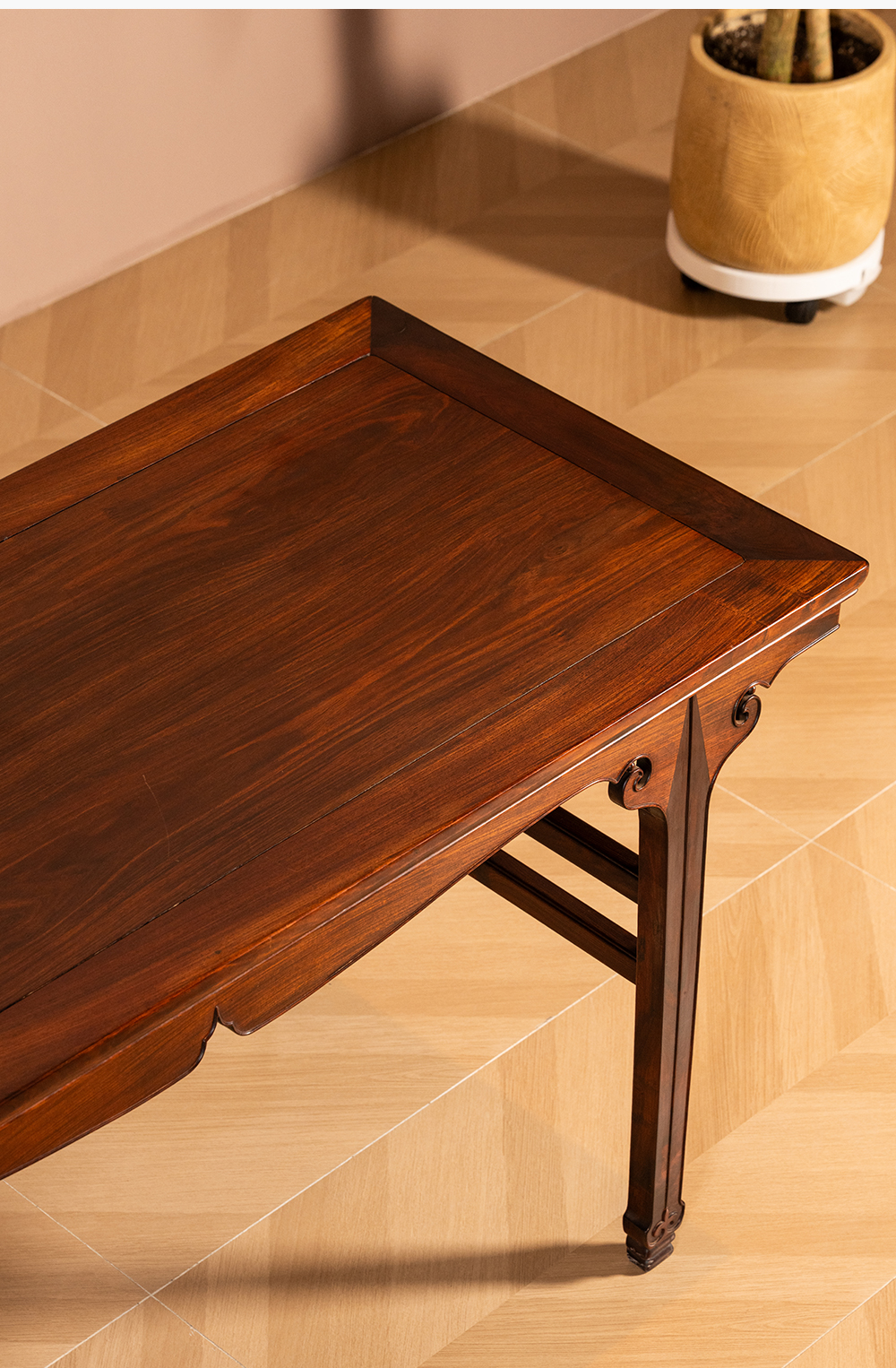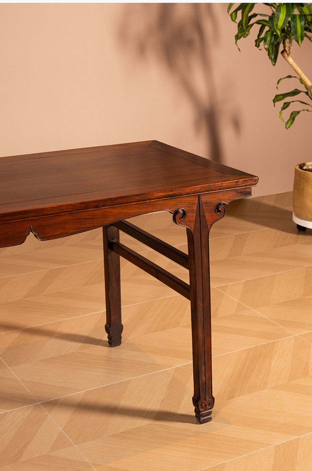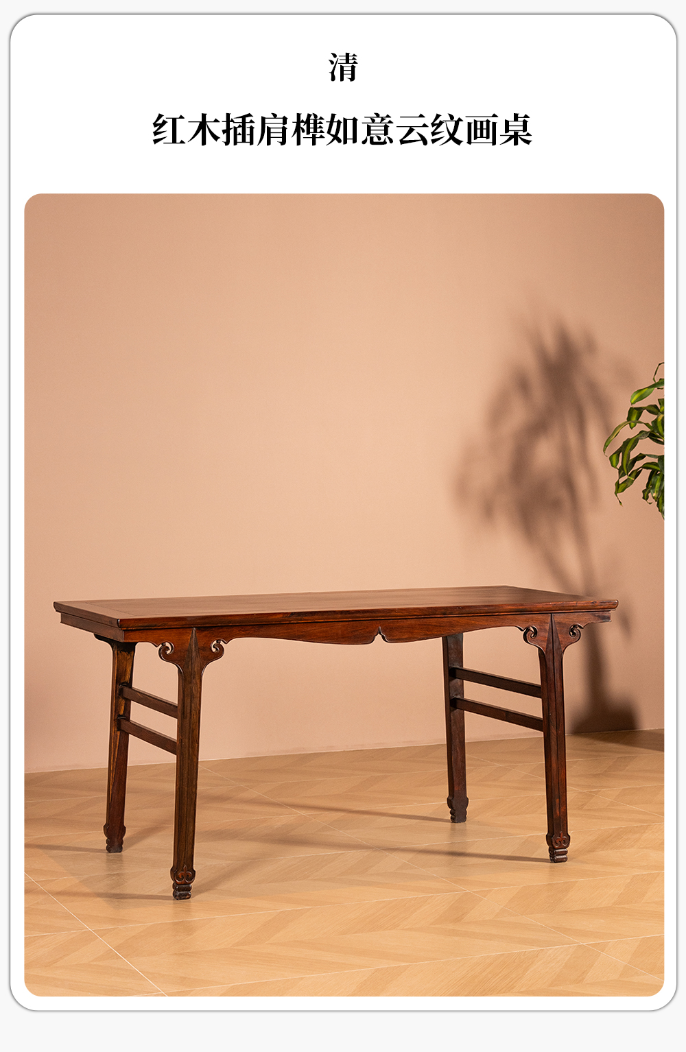 清 红木插肩榫如意云纹画桌