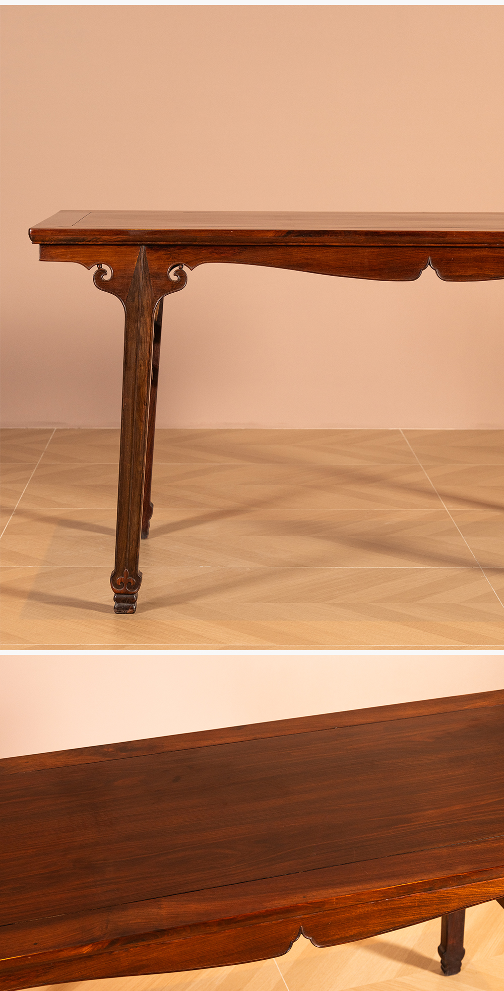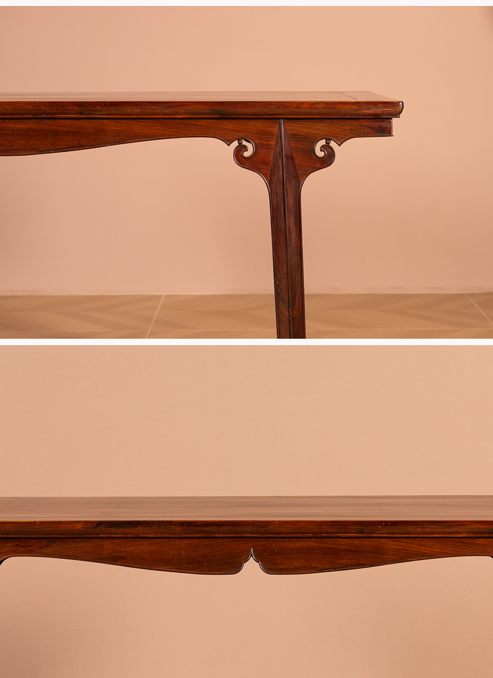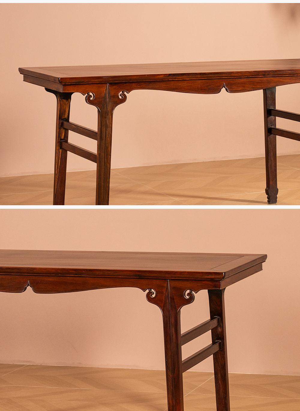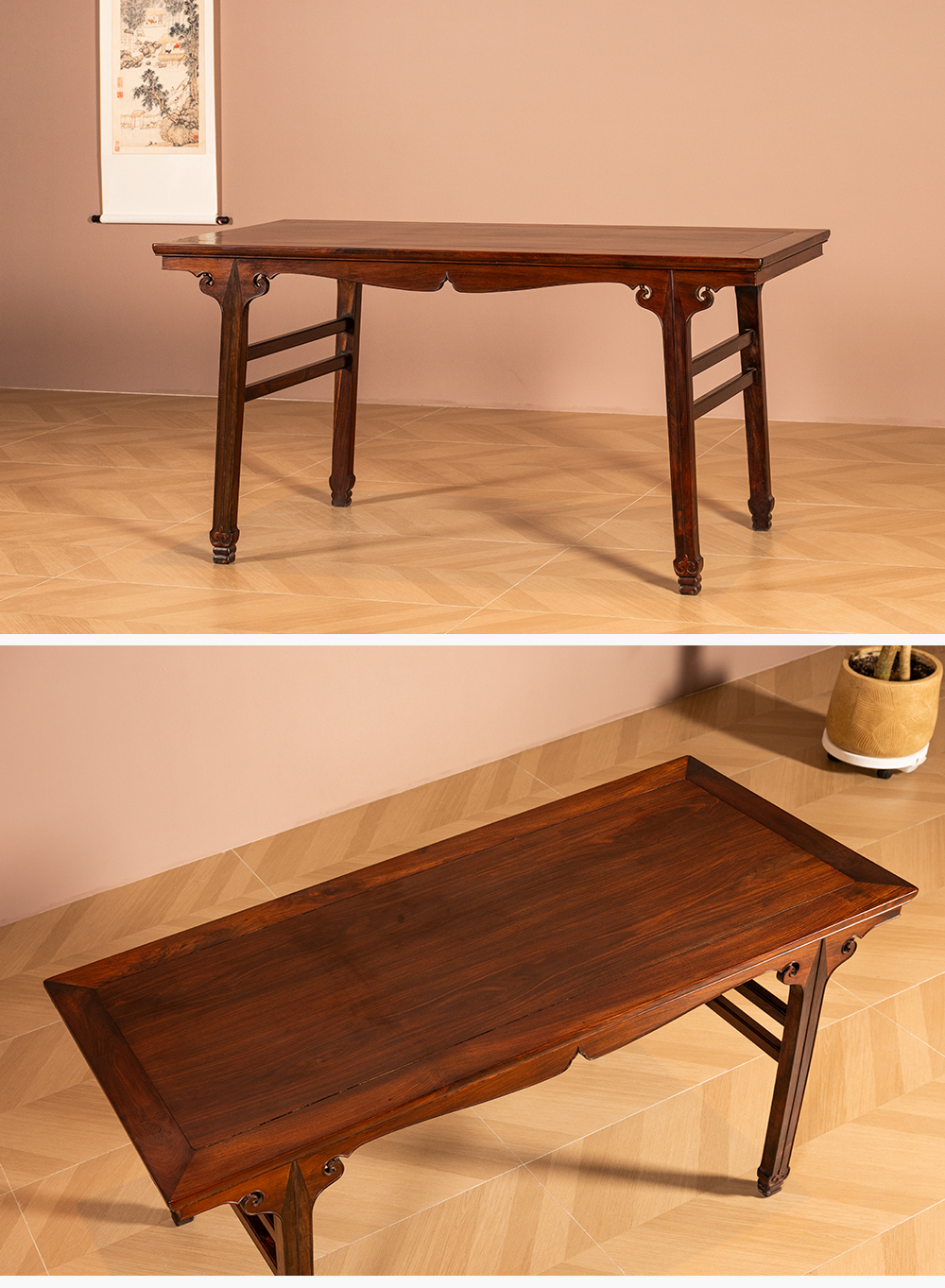 清 红木插肩榫如意云纹画桌