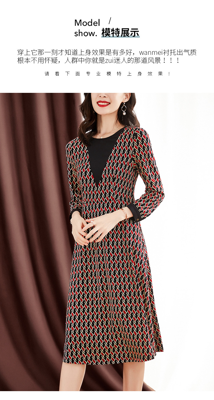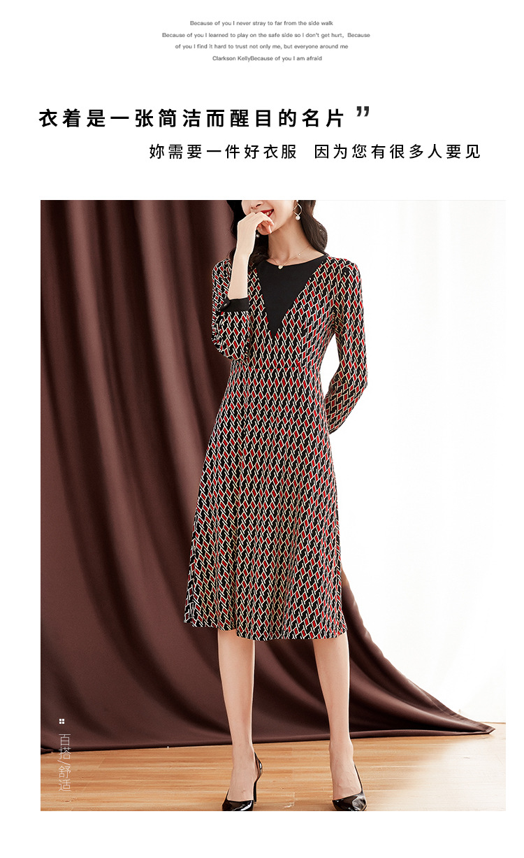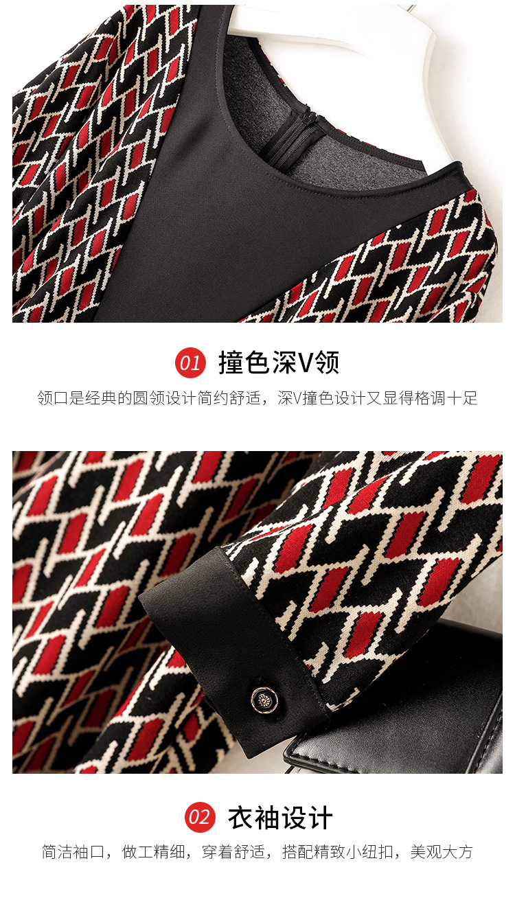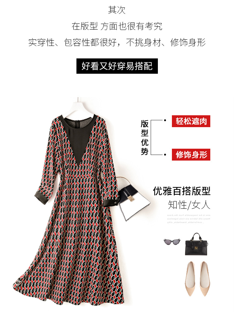 ZS-1672新款秋季大码长袖连衣裙洋气拼接假两件V领裙子