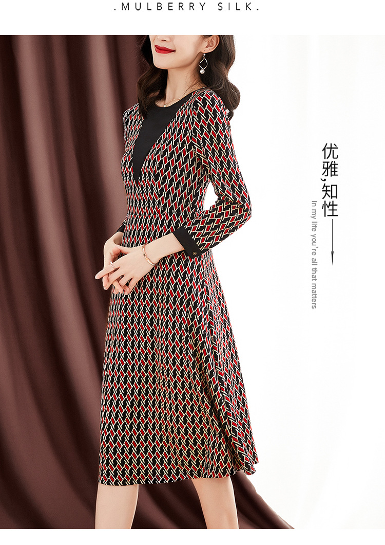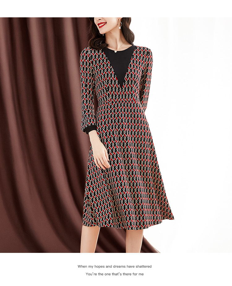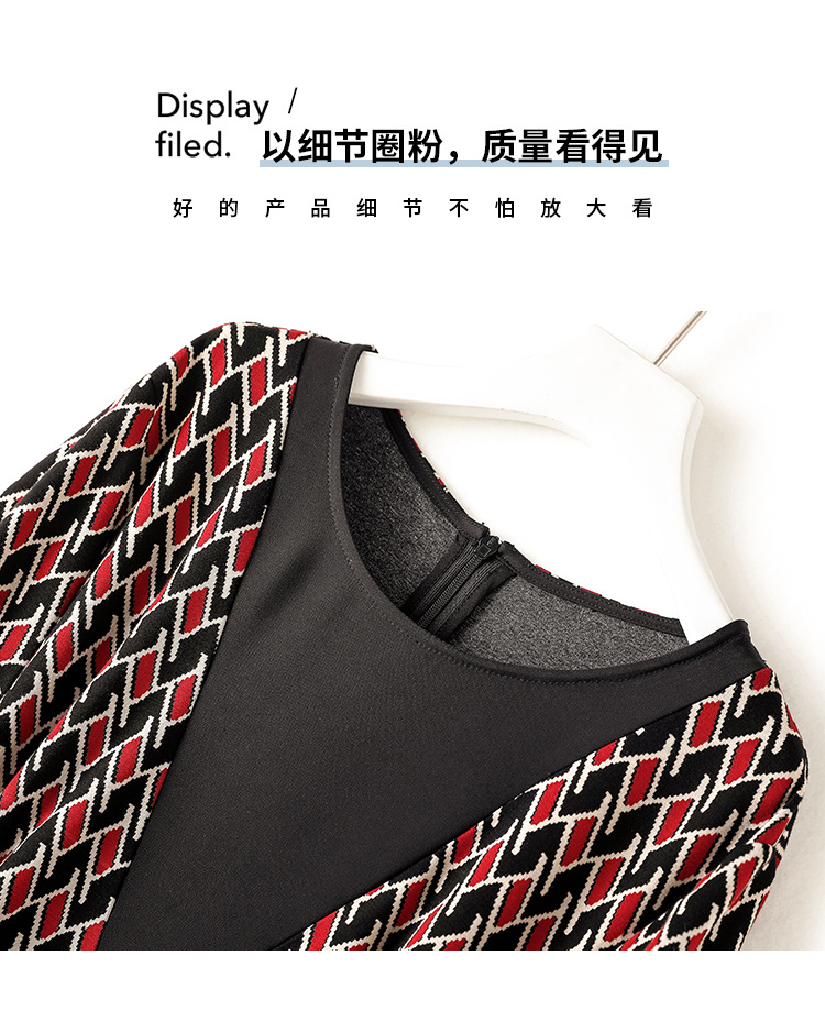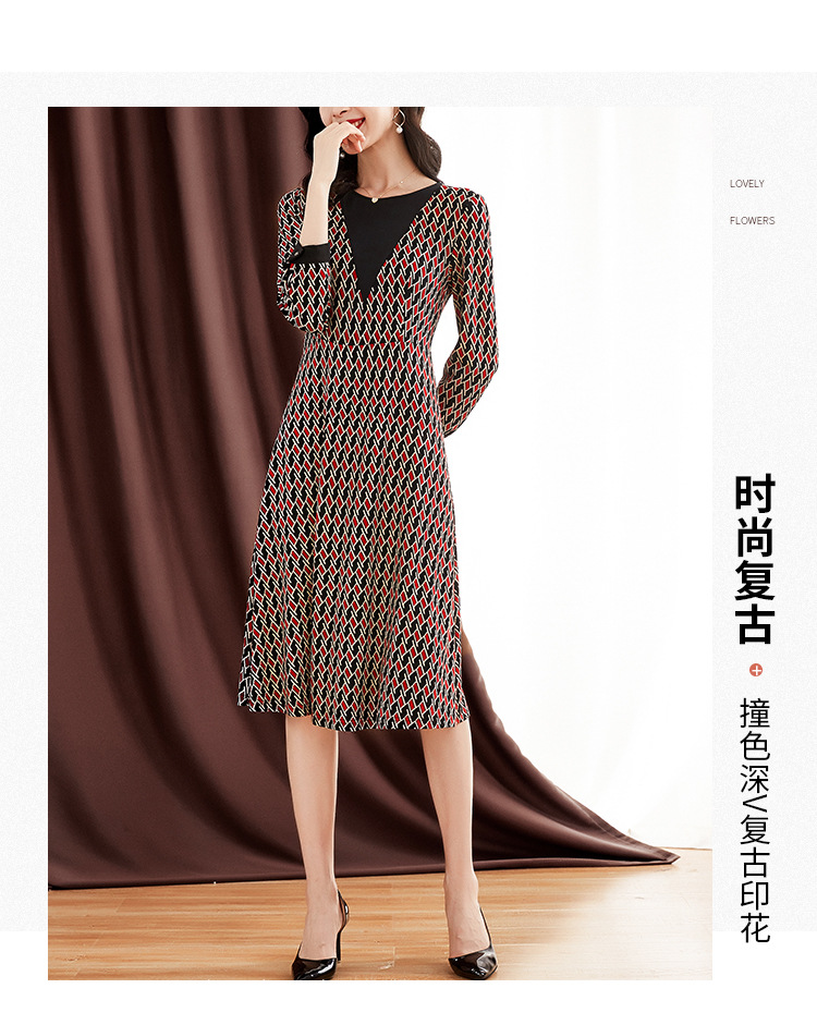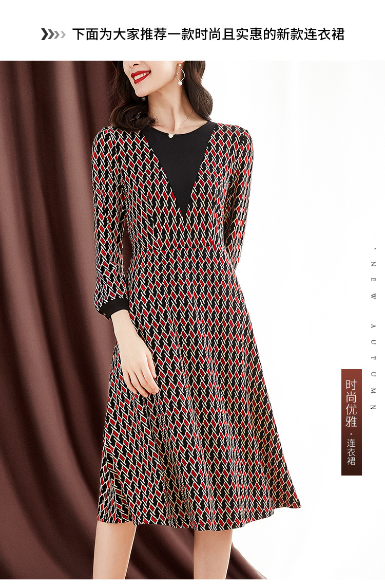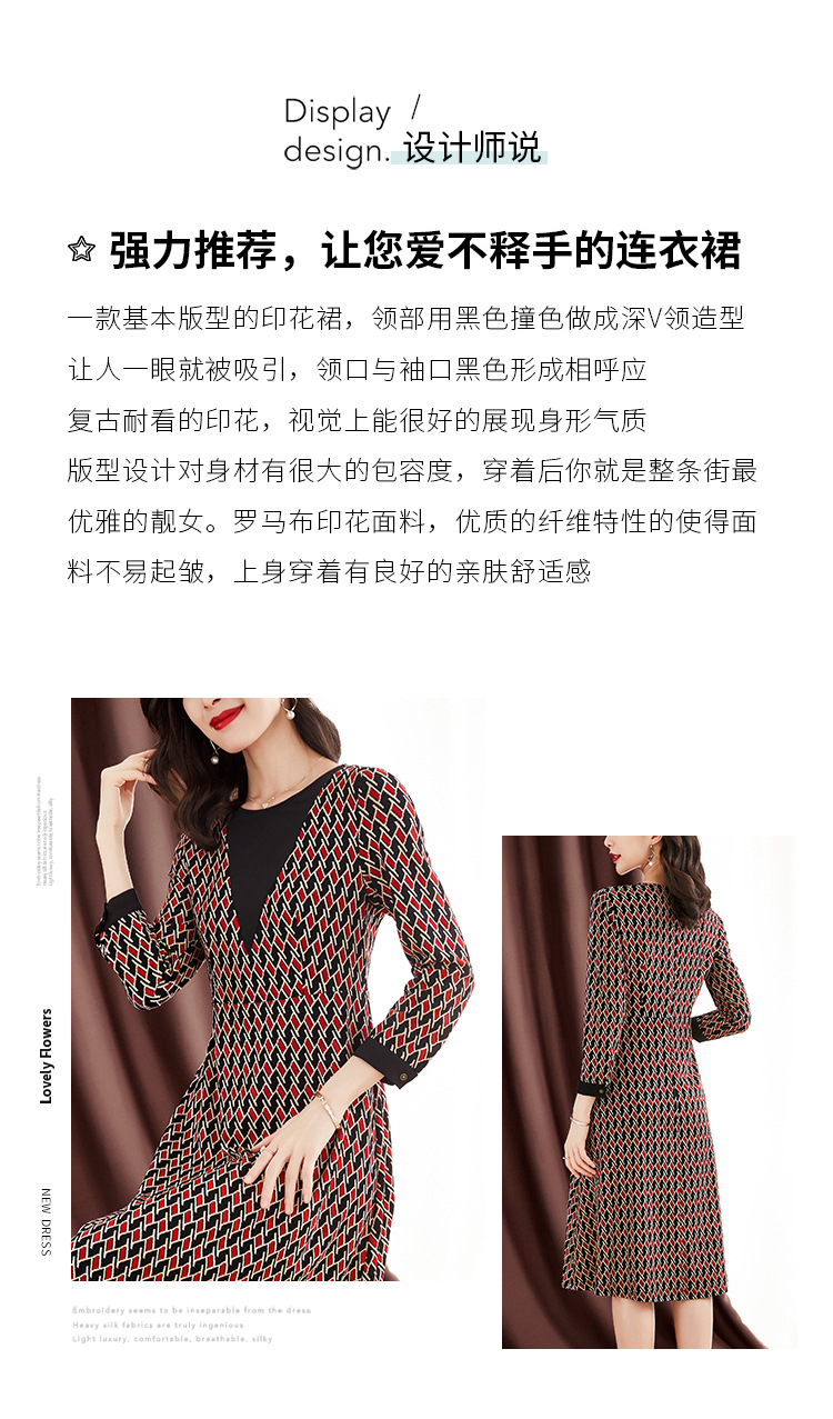 ZS-1672新款秋季大码长袖连衣裙洋气拼接假两件V领裙子