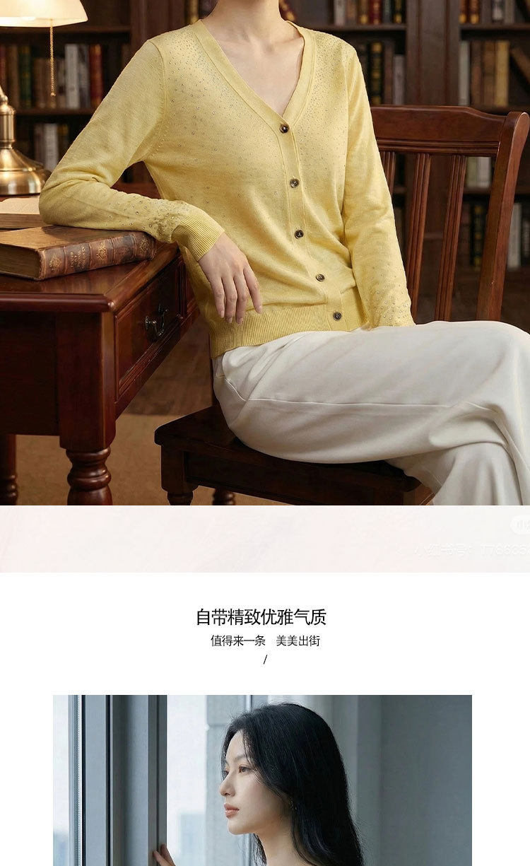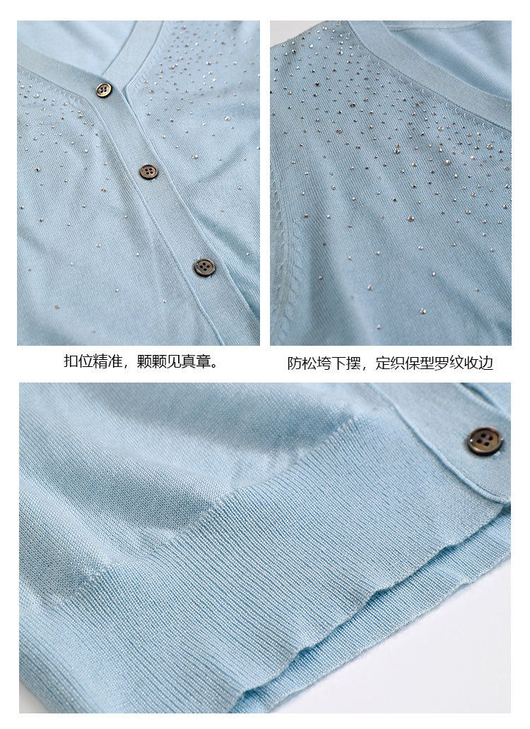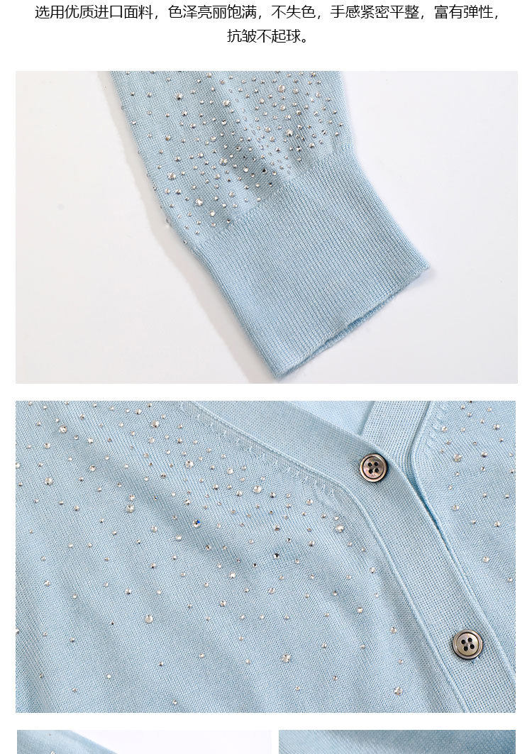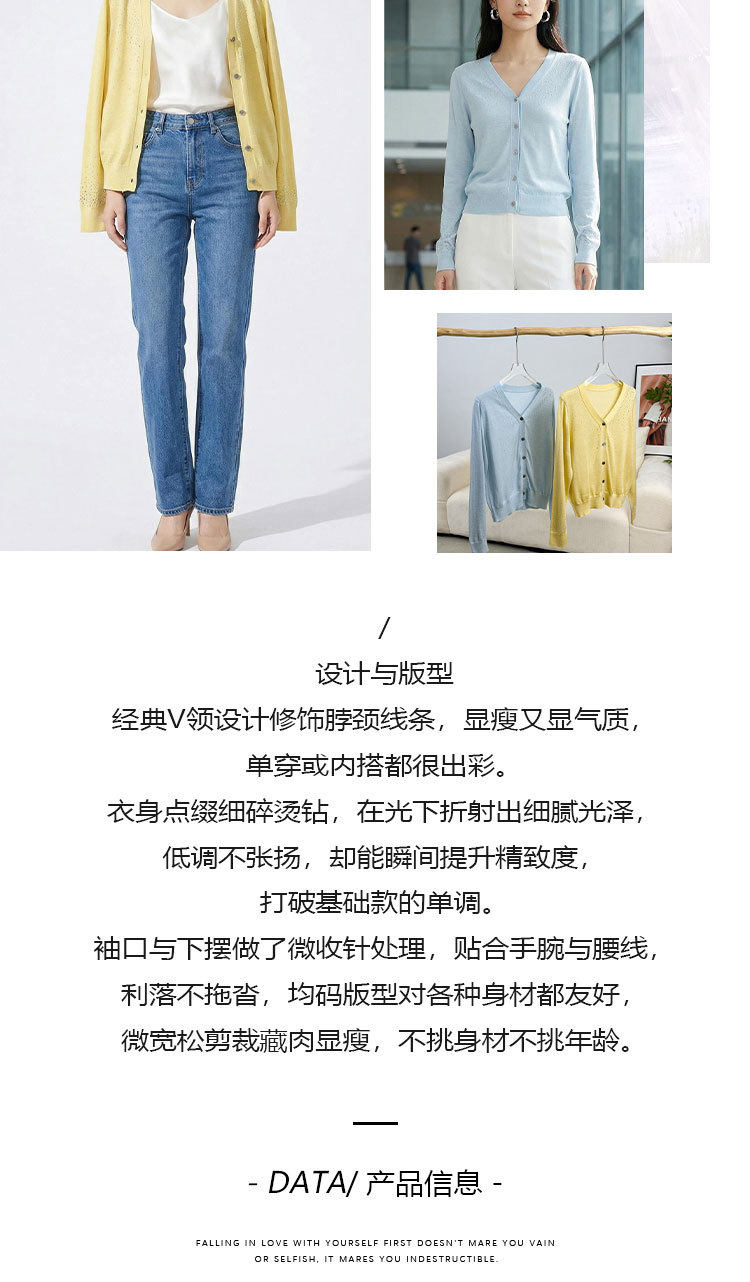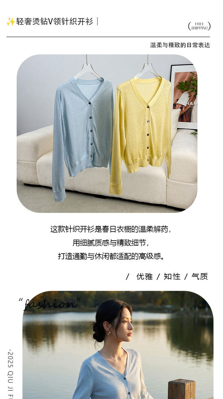 「自」全新升级【铂金会员293/天猫399/差价106】(81355)洛诗琳重工烫钻V领开衫2026春季纯色简约百搭显瘦针织小外套