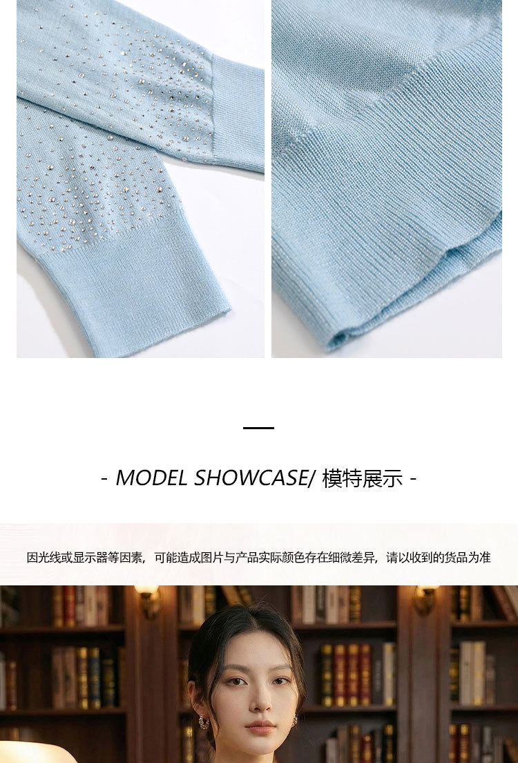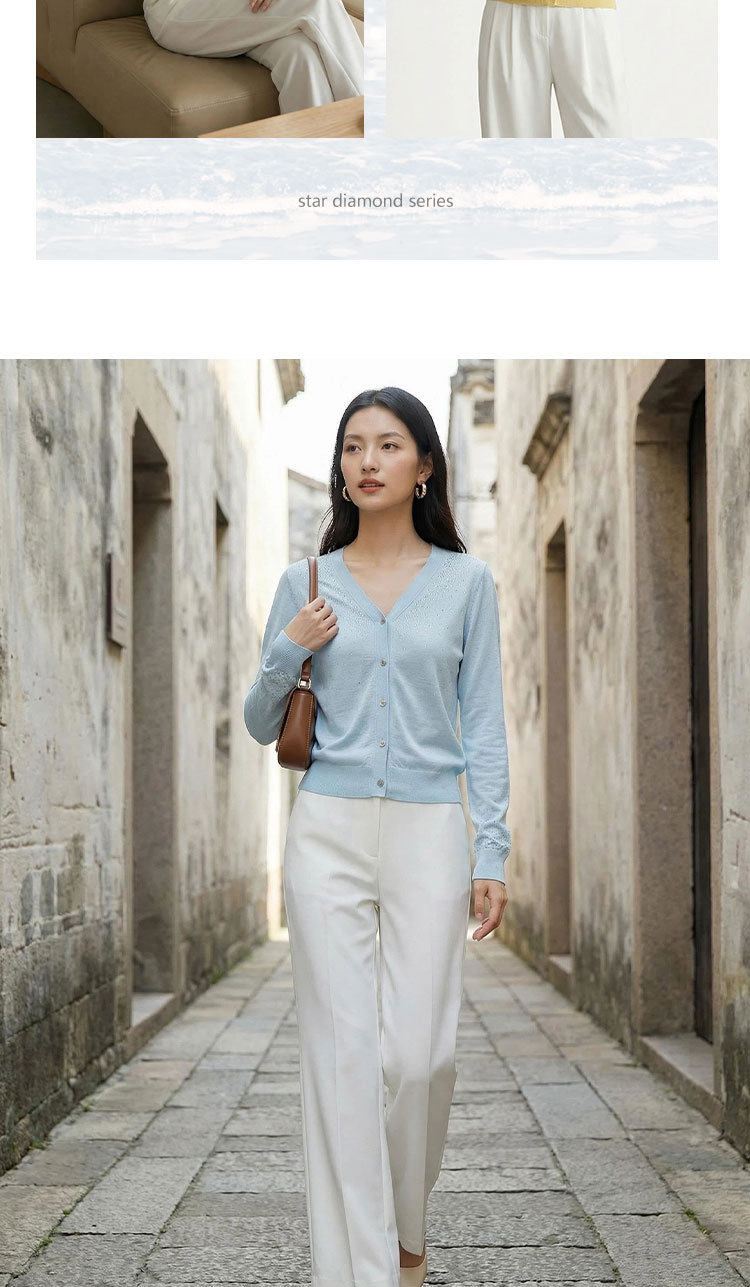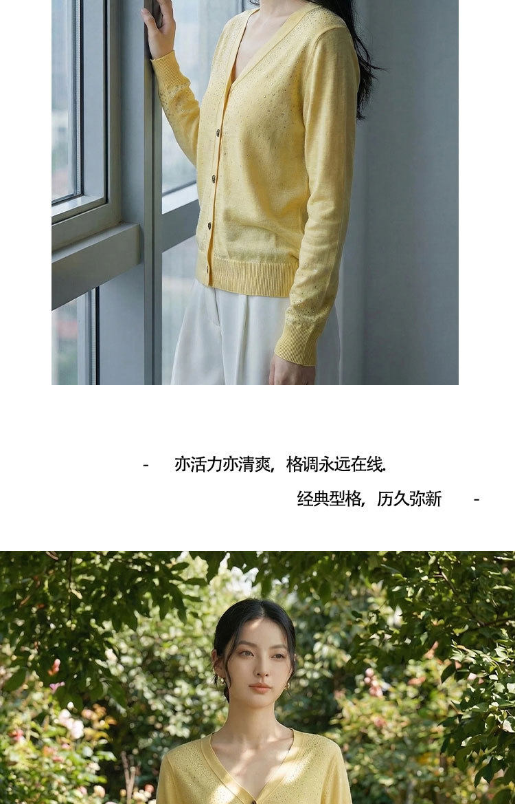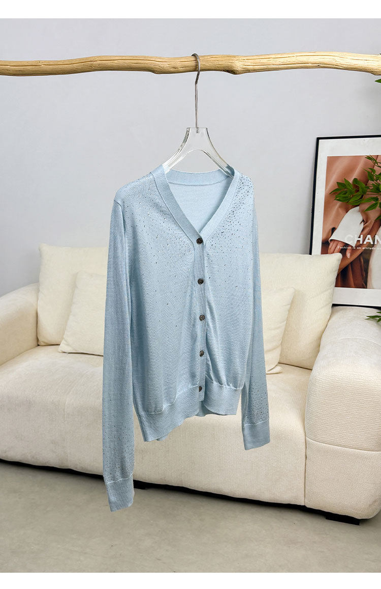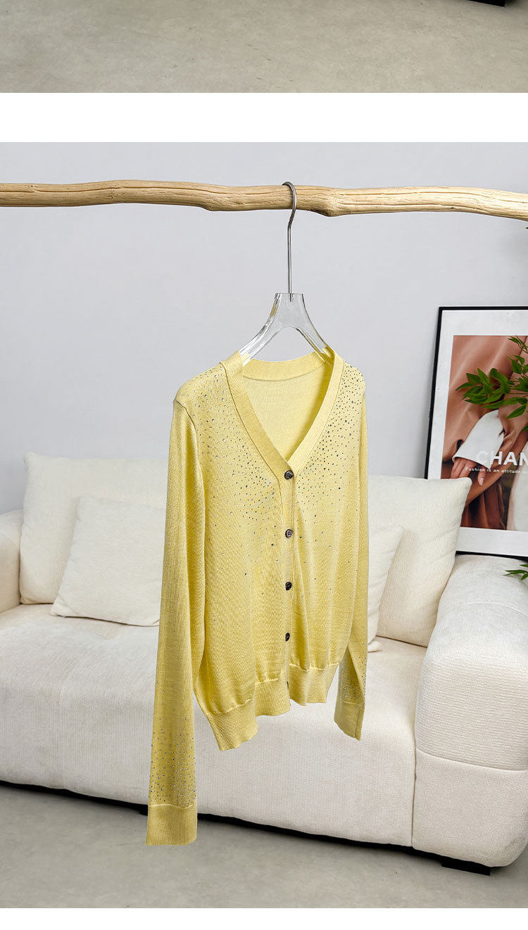「自」全新升级【铂金会员293/天猫399/差价106】(81355)洛诗琳重工烫钻V领开衫2026春季纯色简约百搭显瘦针织小外套