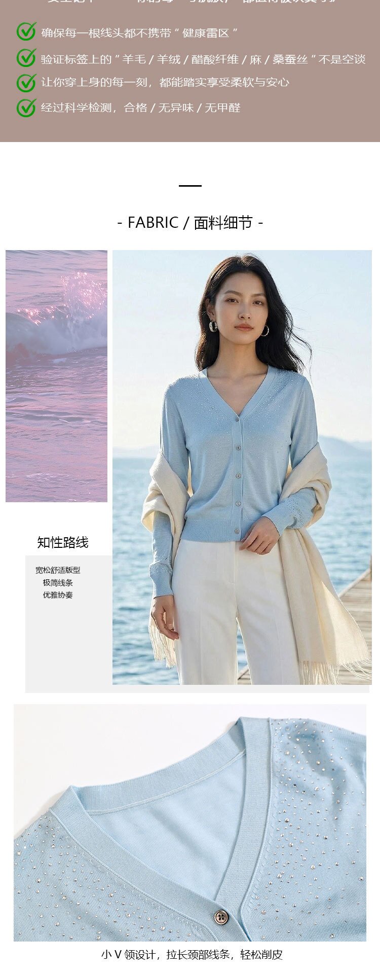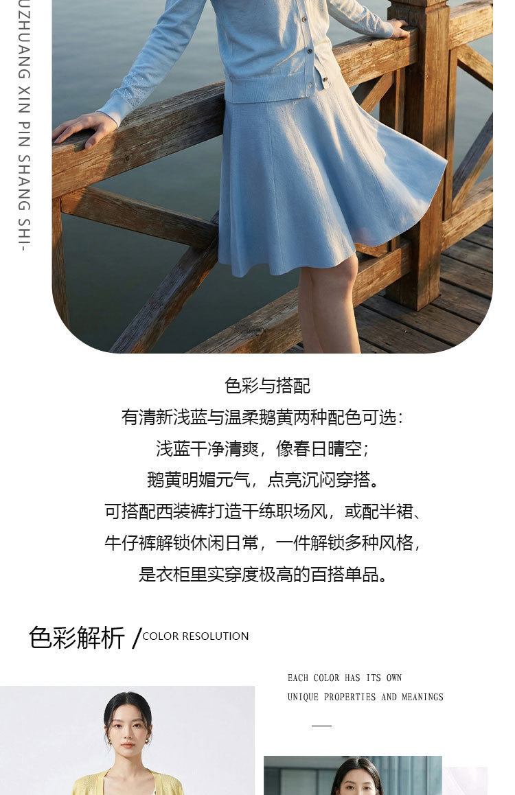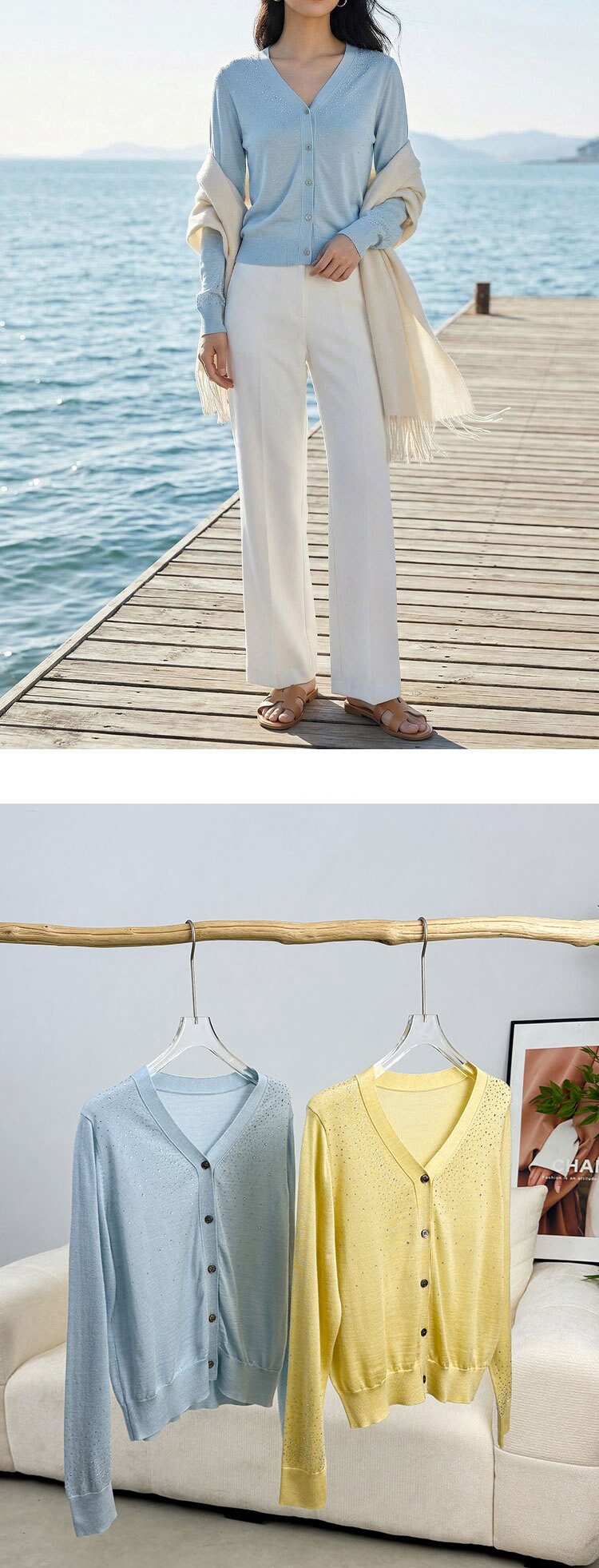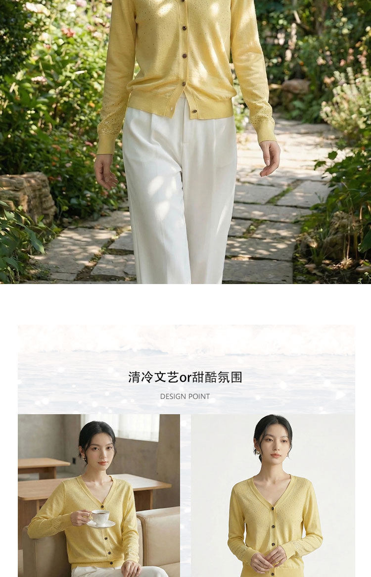 「自」全新升级【铂金会员293/天猫399/差价106】(81355)洛诗琳重工烫钻V领开衫2026春季纯色简约百搭显瘦针织小外套