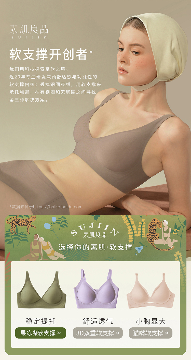 素肌良品【果冻条】软支撑无钢圈无痕文胸 升级固定杯 MX074F+MX124F-FX