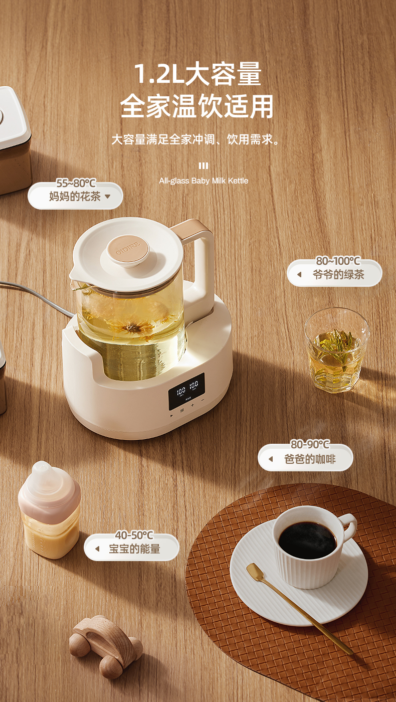 杞冠臻选 | 奥帝尔 Oidire 全玻璃调奶器ODI-HT11 尺寸223*174*256mm 内含主机*1+水壶*1+说明书*1