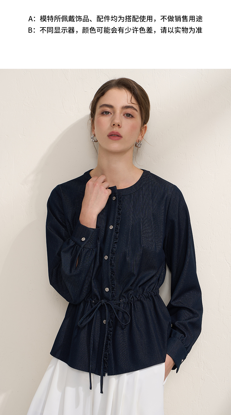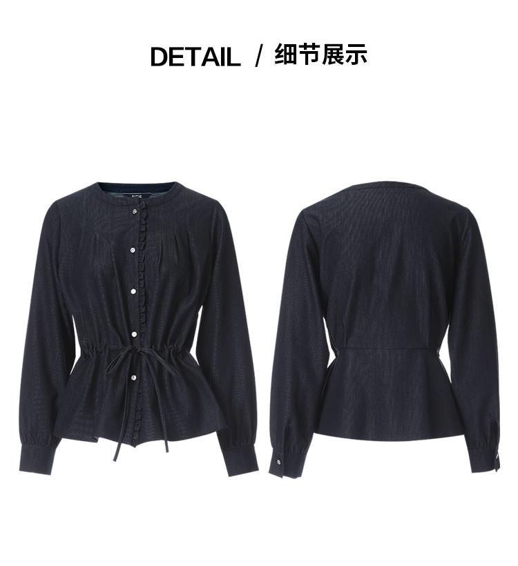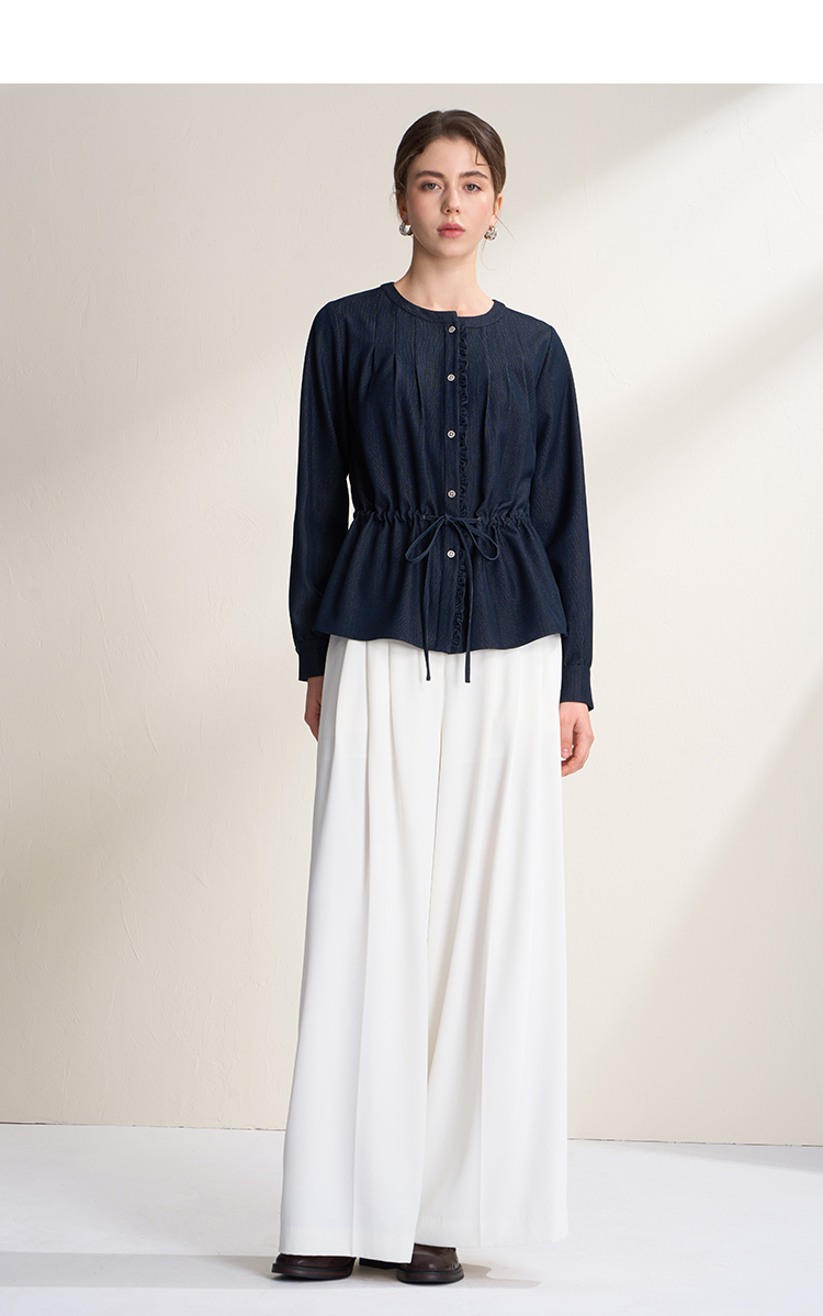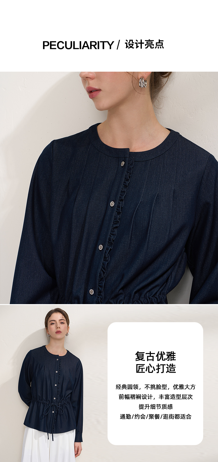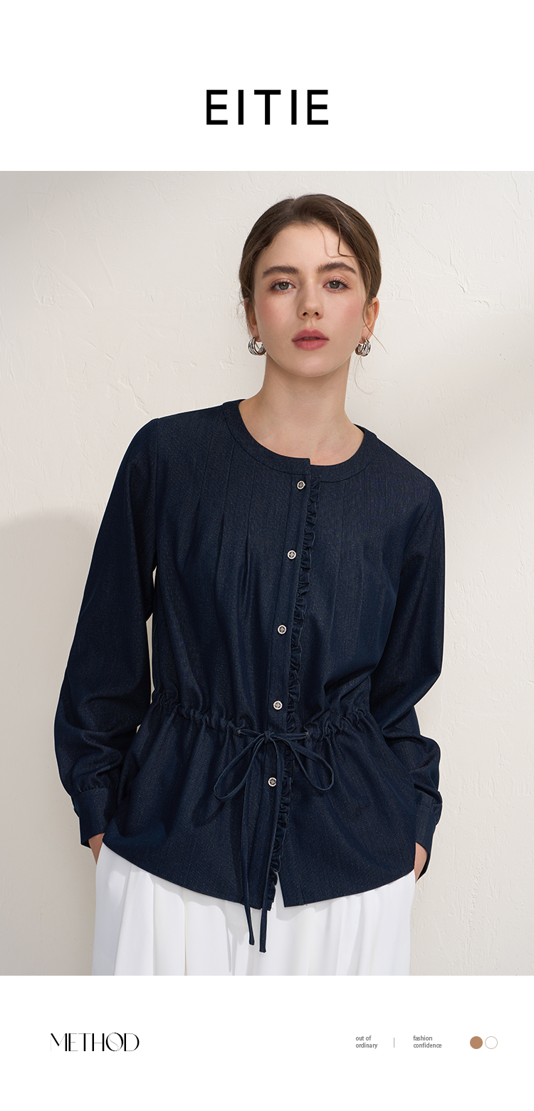EITIE爱特爱松弛慵懒抽绳收腰设计圆领气质通勤2026春季新款衬衣A2609107