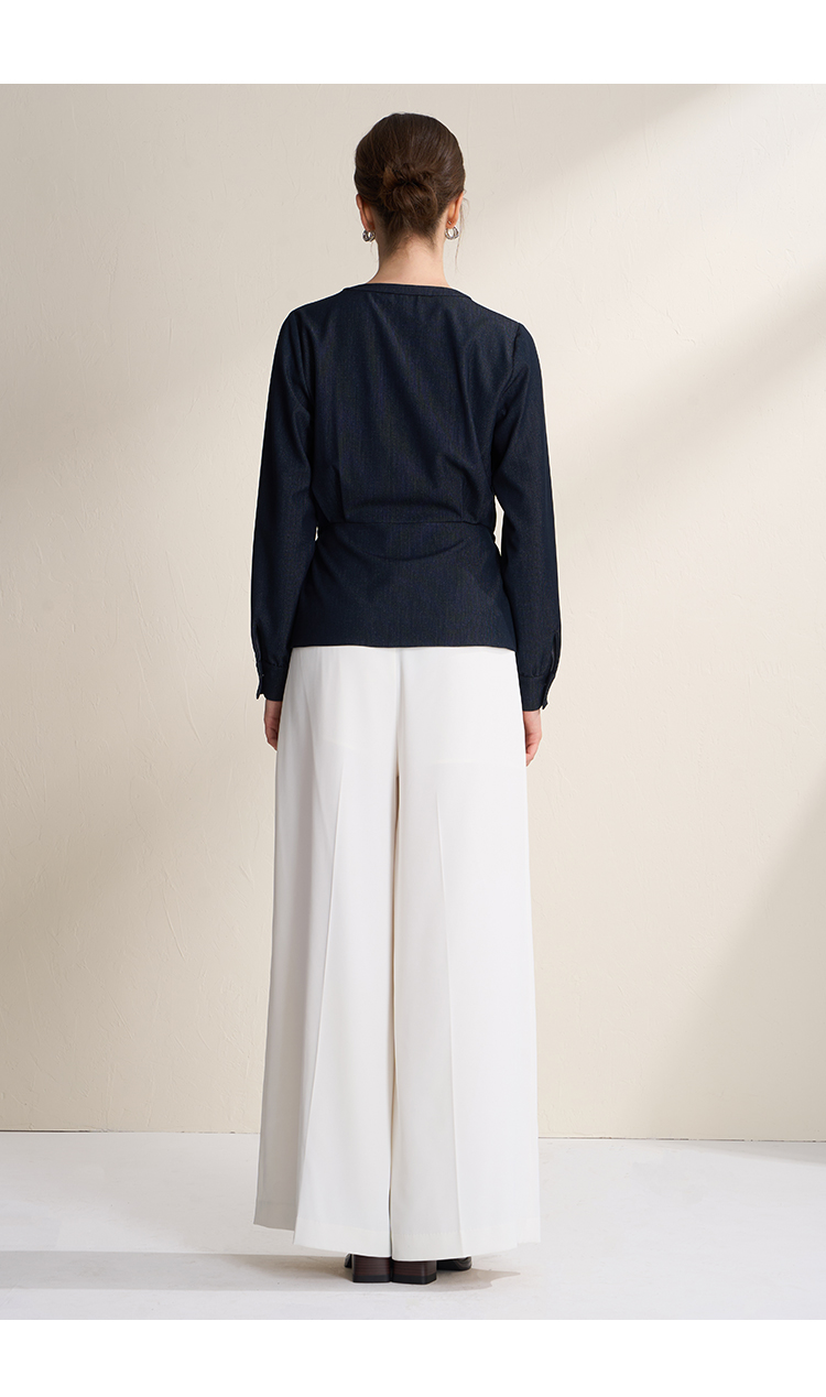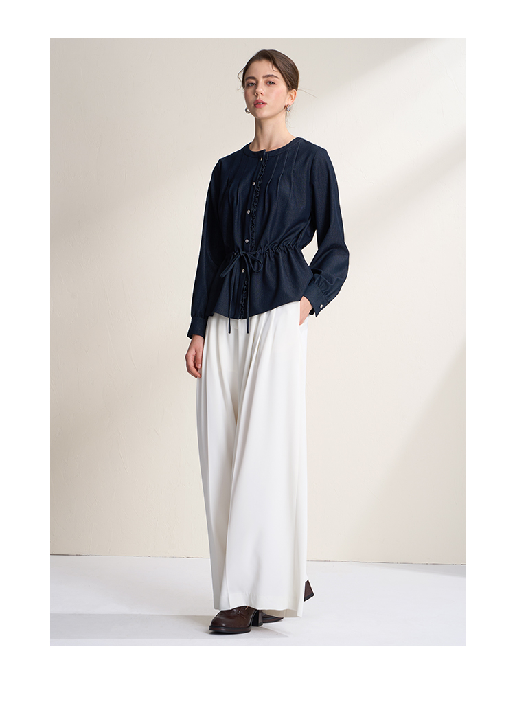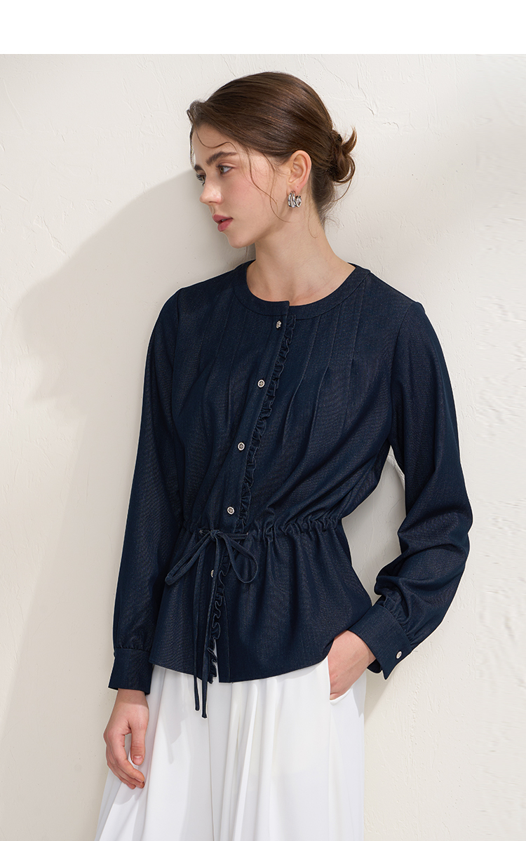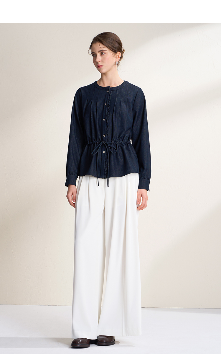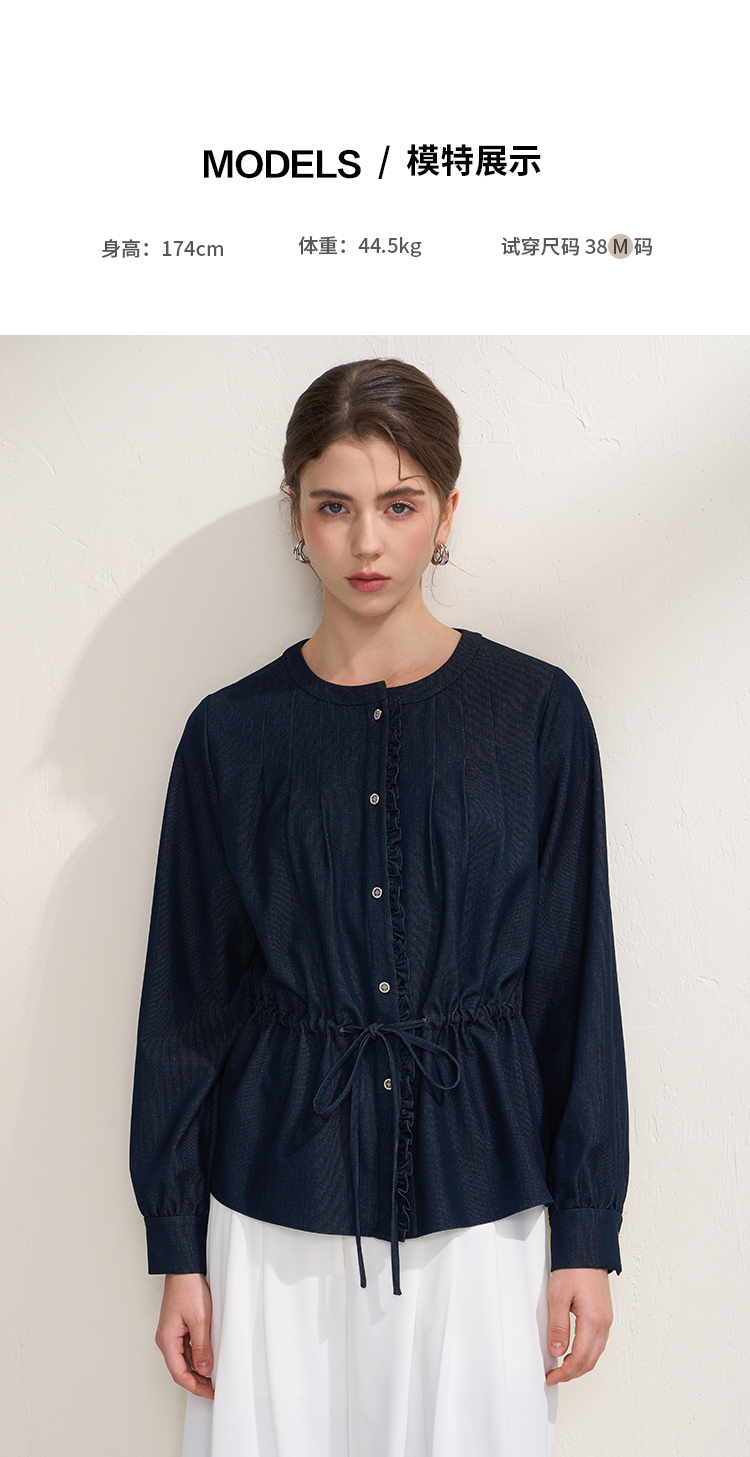 EITIE爱特爱松弛慵懒抽绳收腰设计圆领气质通勤2026春季新款衬衣A2609107