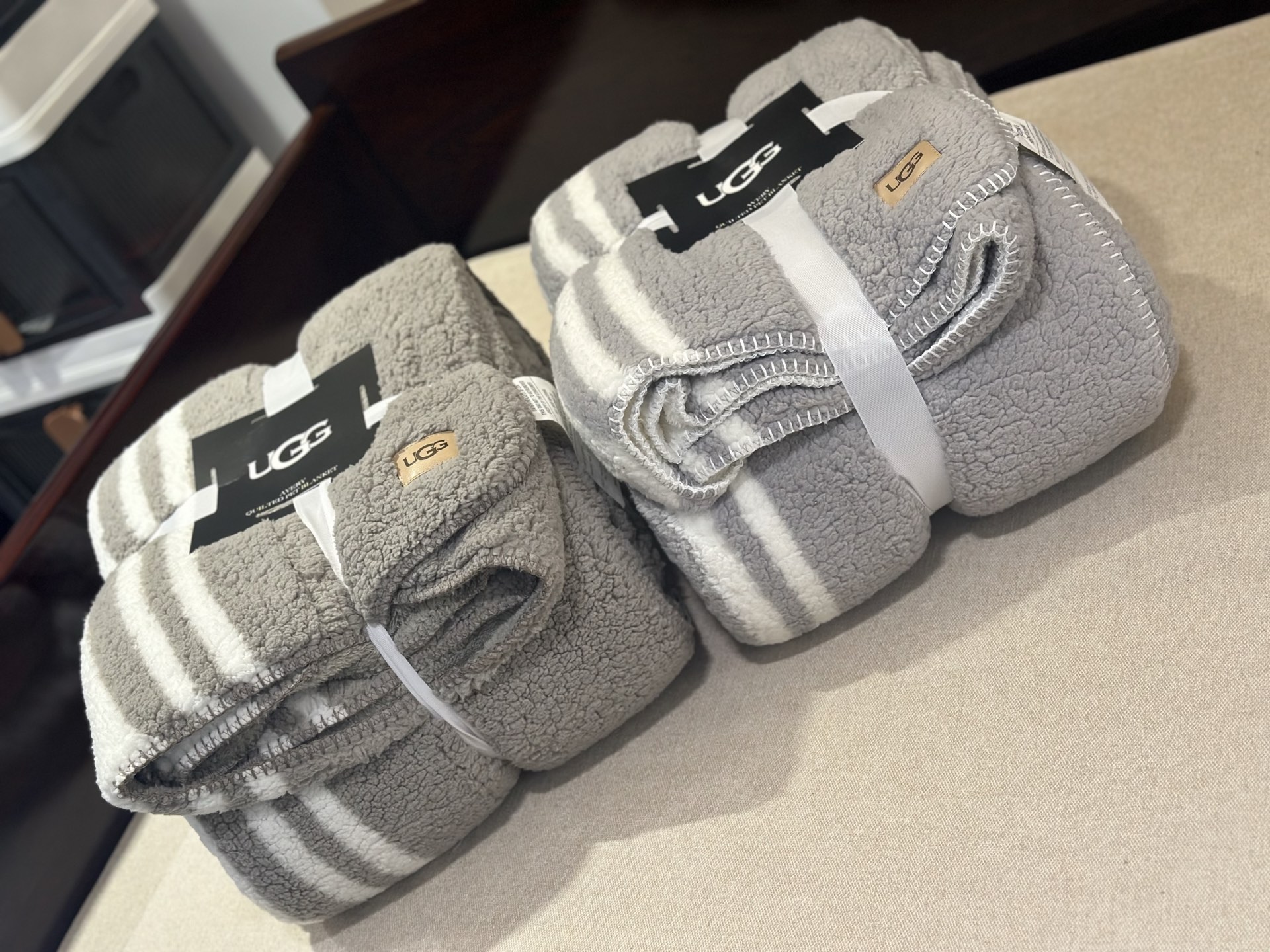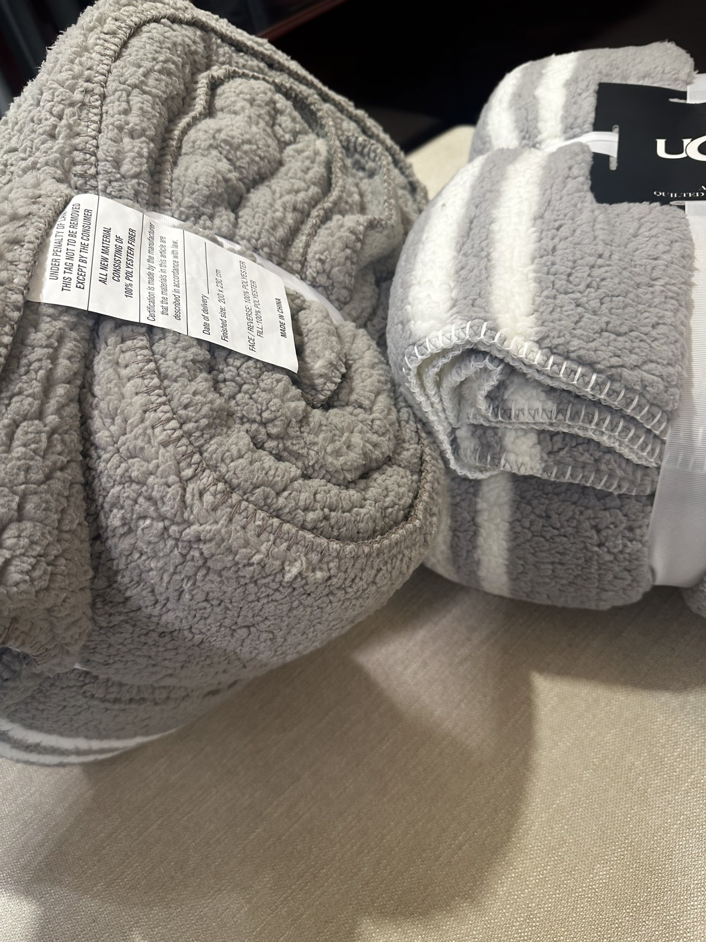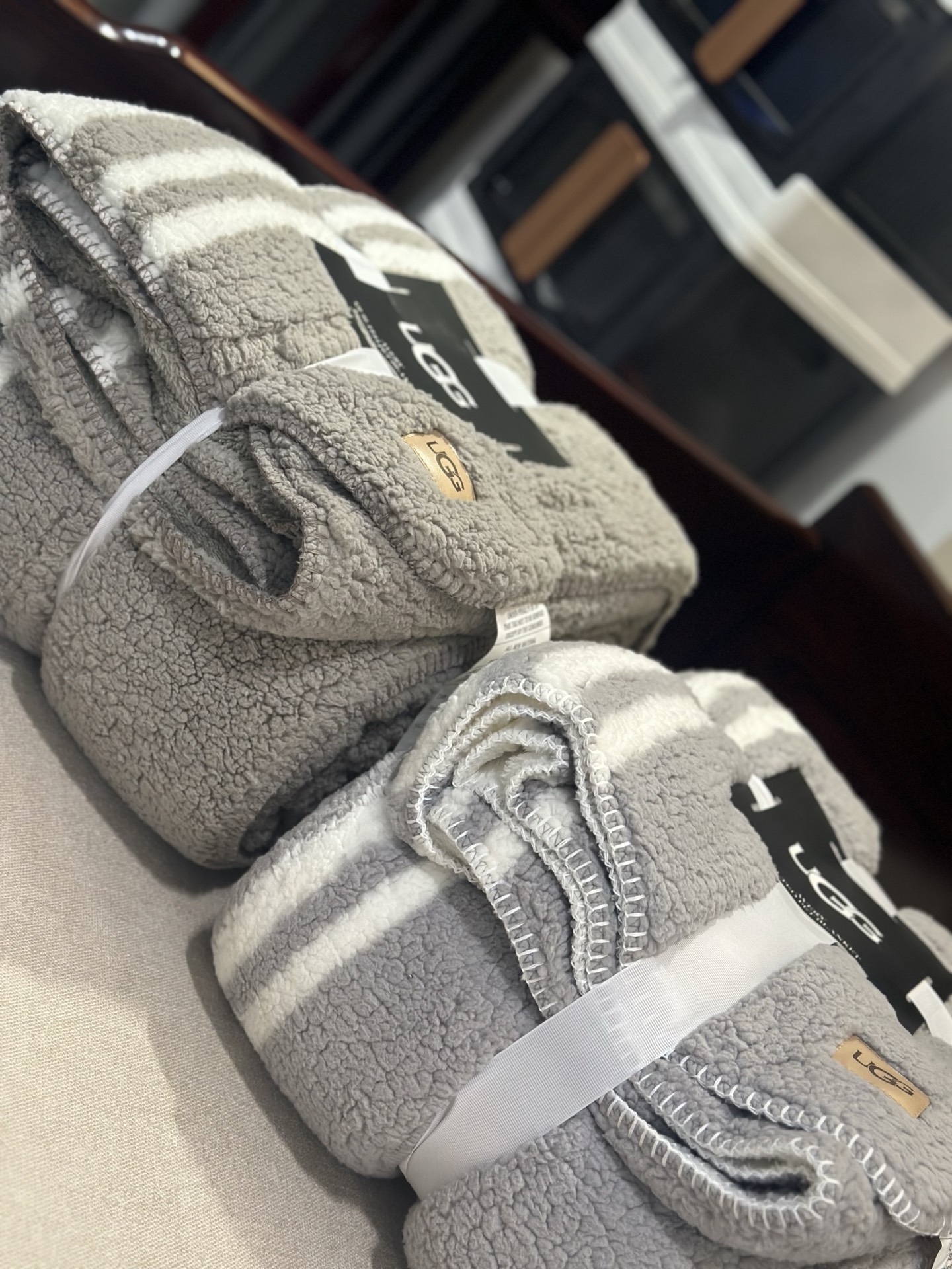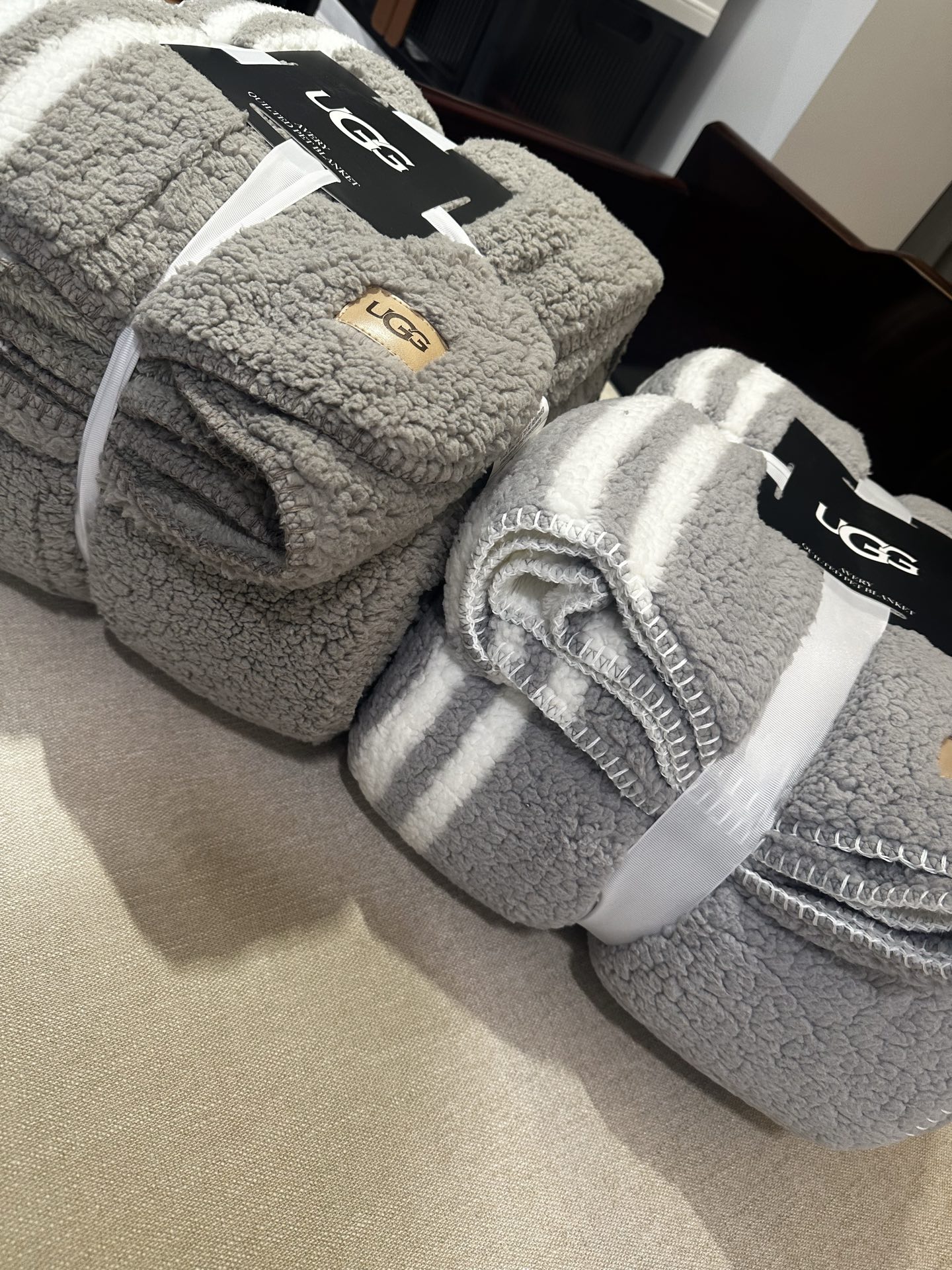 正儿八经纯原,出柜多余‼️ UG G云朵⛅️毯子!条重2.3斤左官网 上新,要卖的抓紧了。纯原UGG高货来了,官网已上新,。送礼首选 超大尺寸222*228。双层加厚皮毛一体复合工艺。A面云朵般柔软的泰迪绒。B面高级北极绒,超细腻的双面牛奶绒,面料克重达到每平方580克,只有彭德尔顿和Ug的毯子才会使用这种高克重面料,所以手感使用舒适度真的很好,妥妥的云朵的质感!!