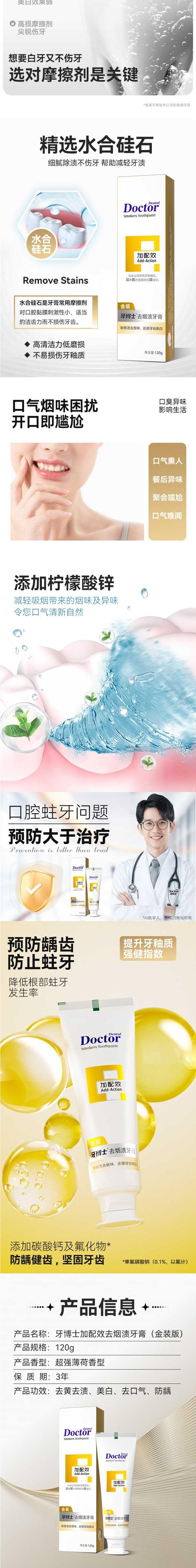 牙博士 加配效去烟渍牙膏-金装120g 6924431412642A