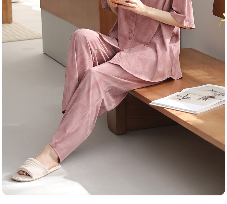 雀说柔软棉睡衣女士夏季薄款凉感纯棉短袖长裤新款夏天家居服套装AL4428