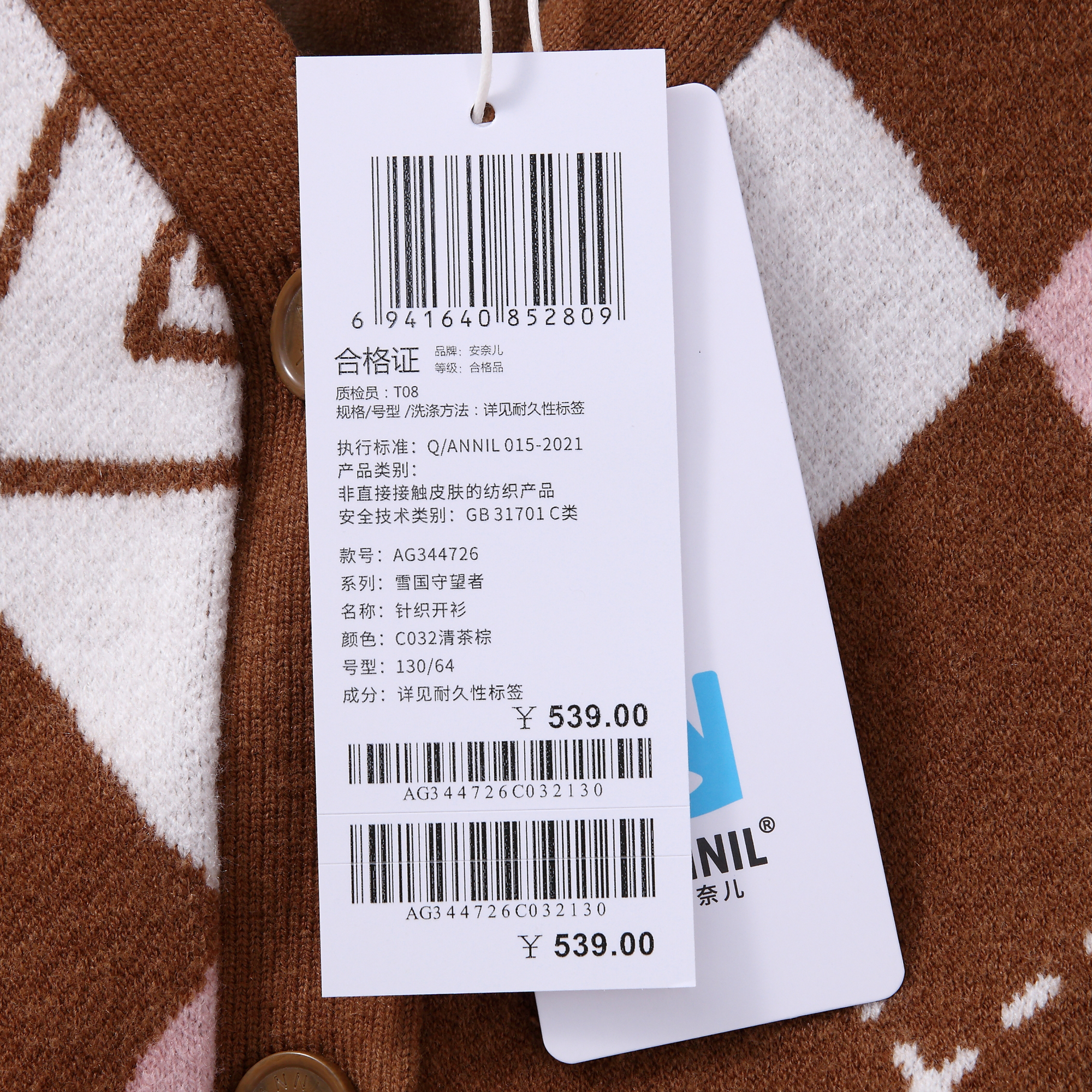 【实体店同款】女童针织开衫2023年冬季新款安奈儿童装AG344726