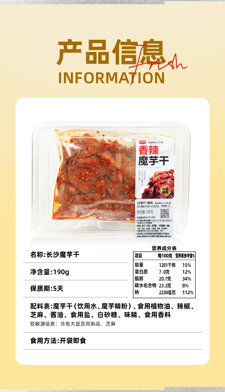 【鲜食新品】黑色经典X几多全长沙魔芋干香辣味 190g