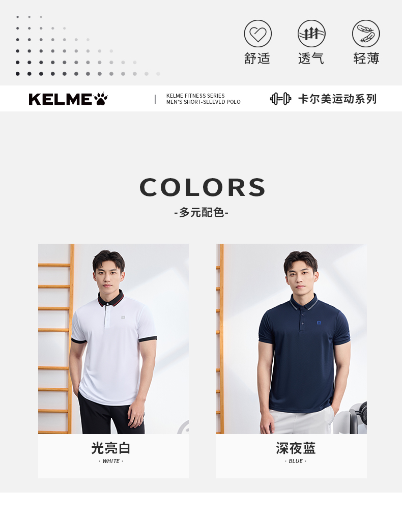 KELME卡尔美polo衫男士2023夏季新款时尚透气上衣运动翻领短袖T恤