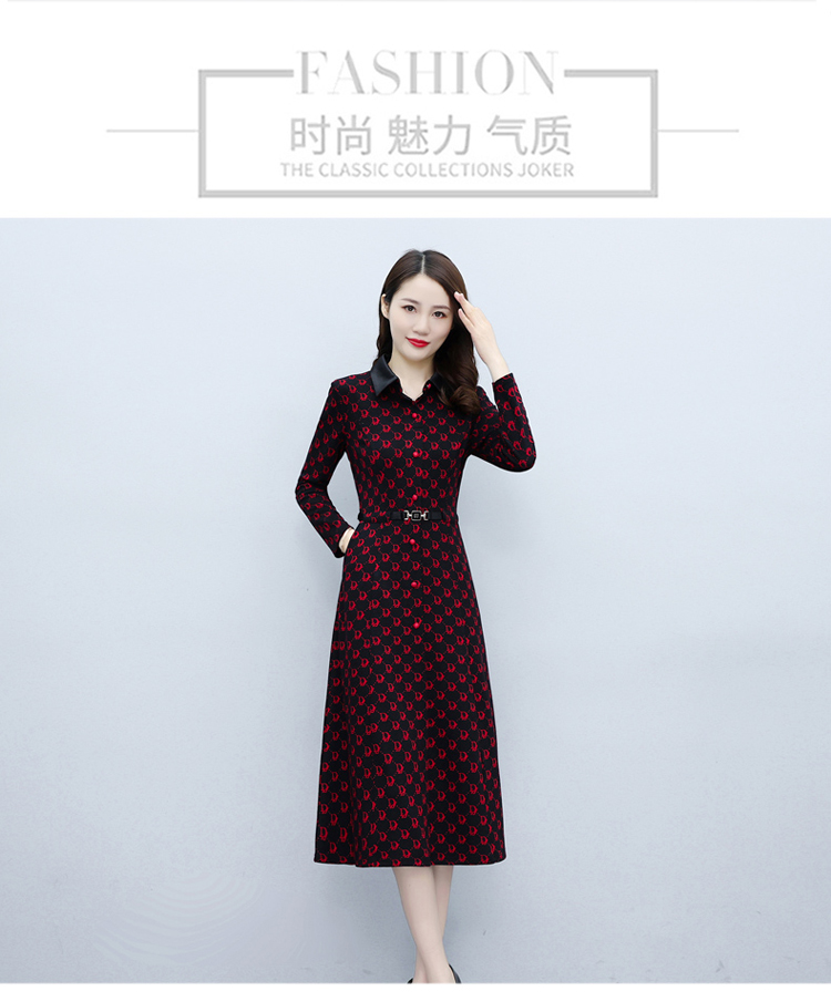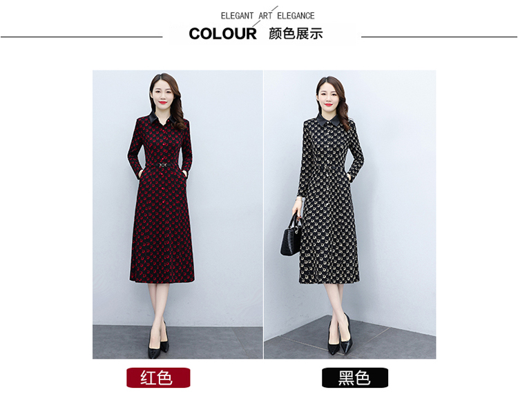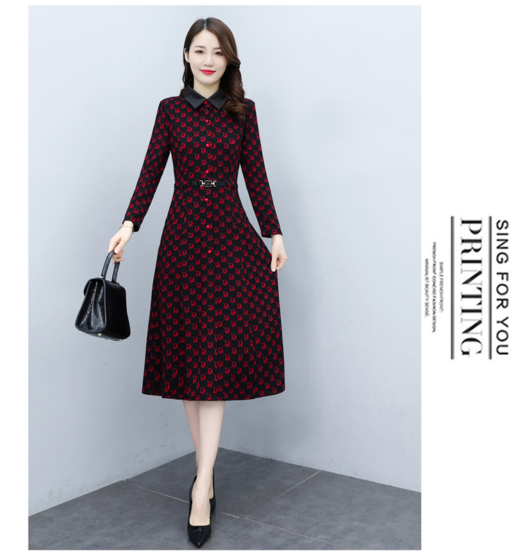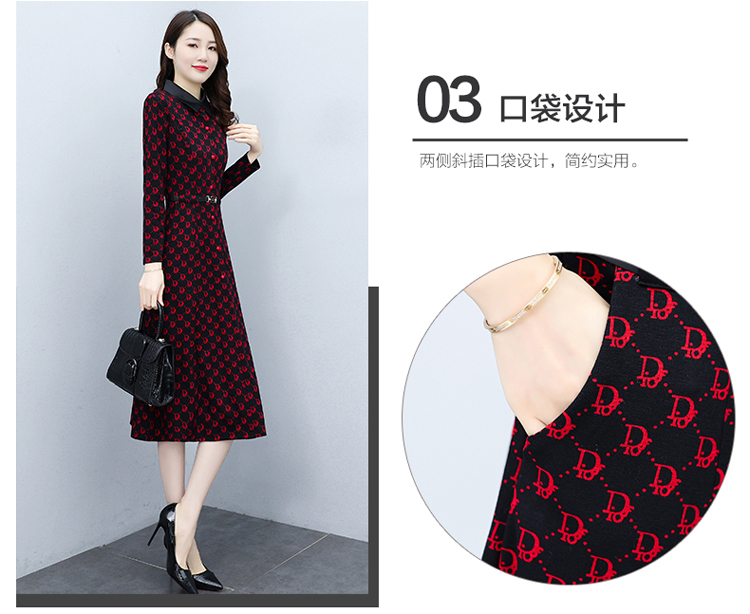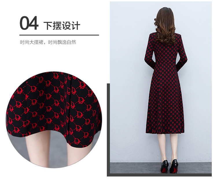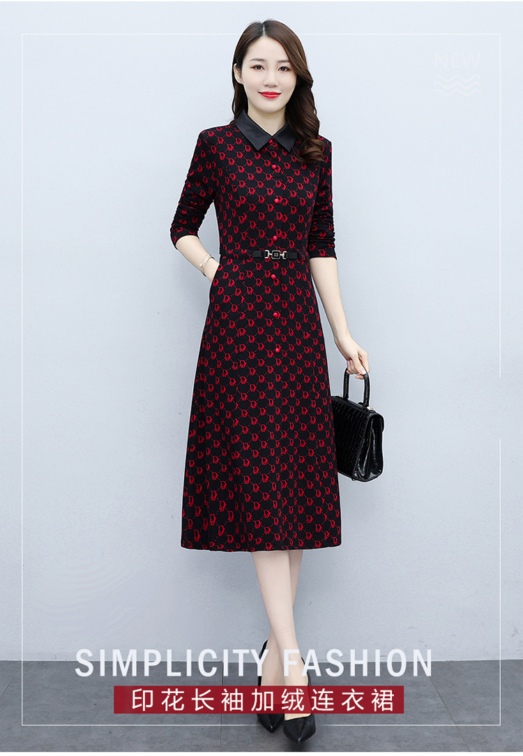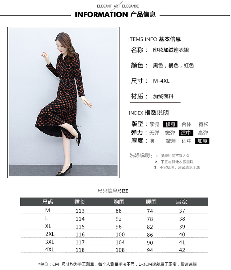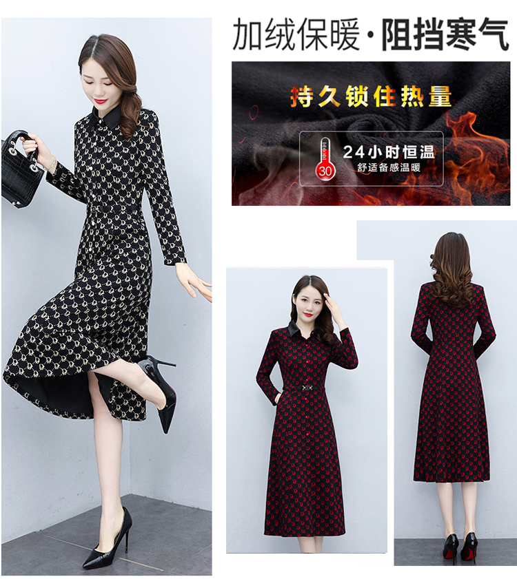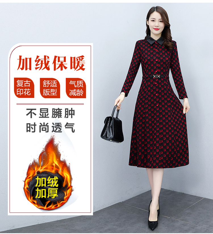 保暖修身,加厚加绒长袖女气质显瘦复古印花打底连衣裙HR-XYFS6257