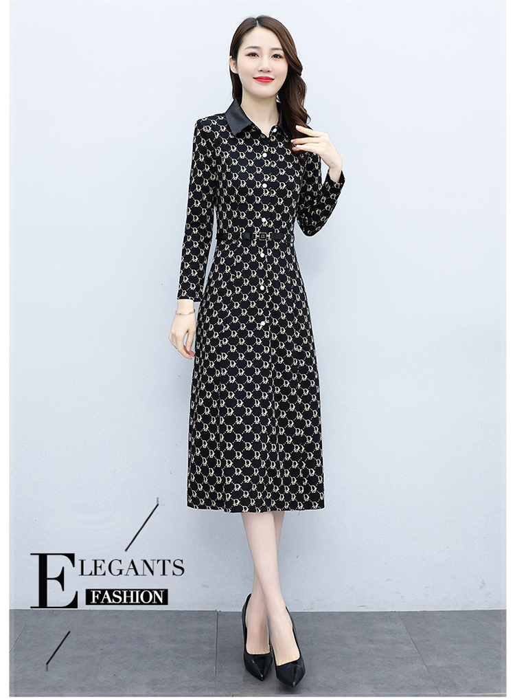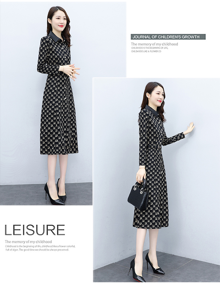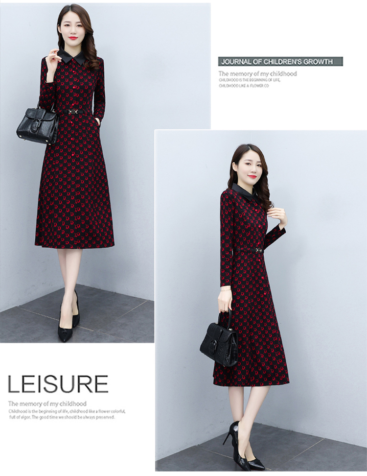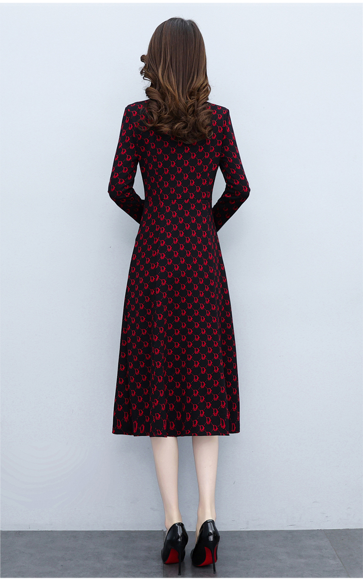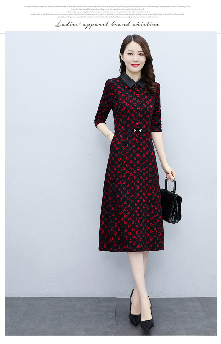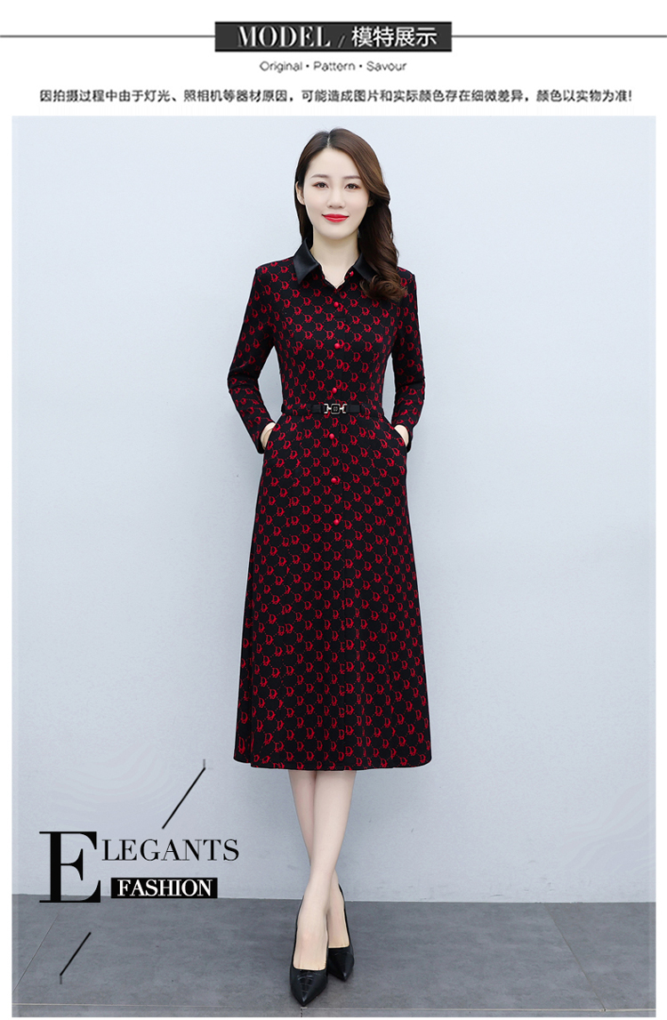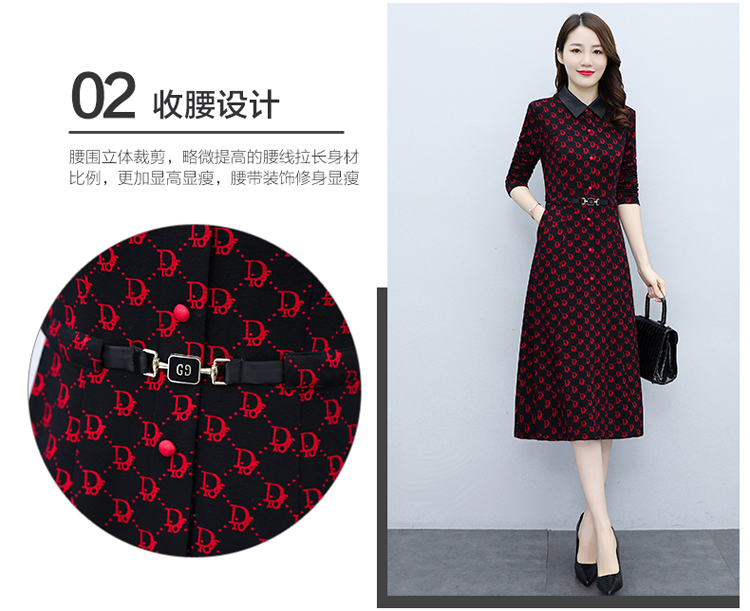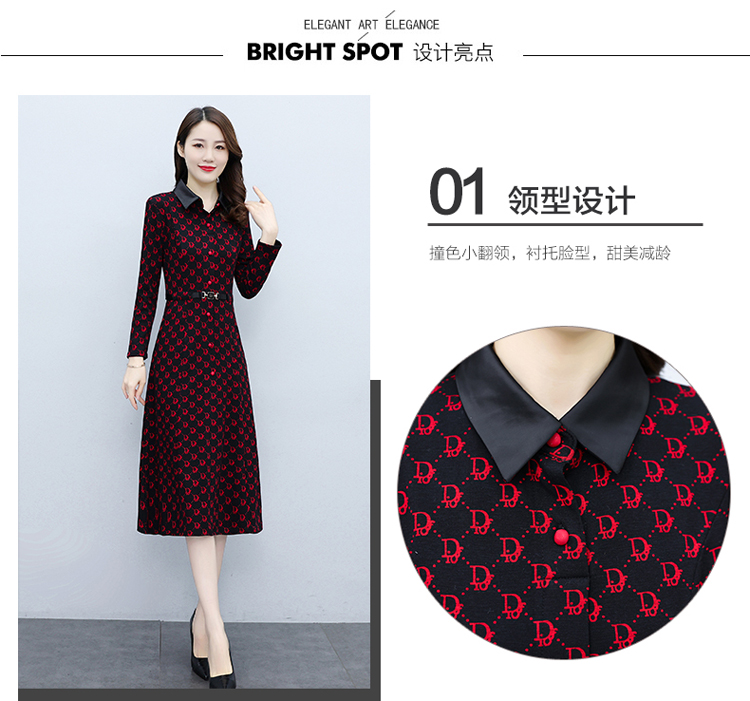 保暖修身,加厚加绒长袖女气质显瘦复古印花打底连衣裙HR-XYFS6257