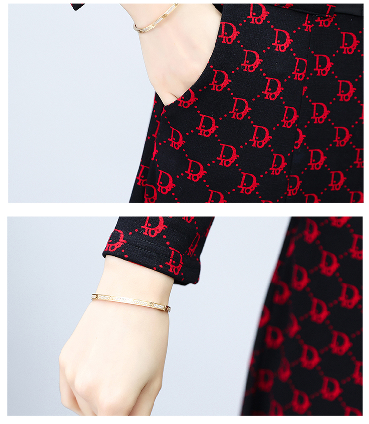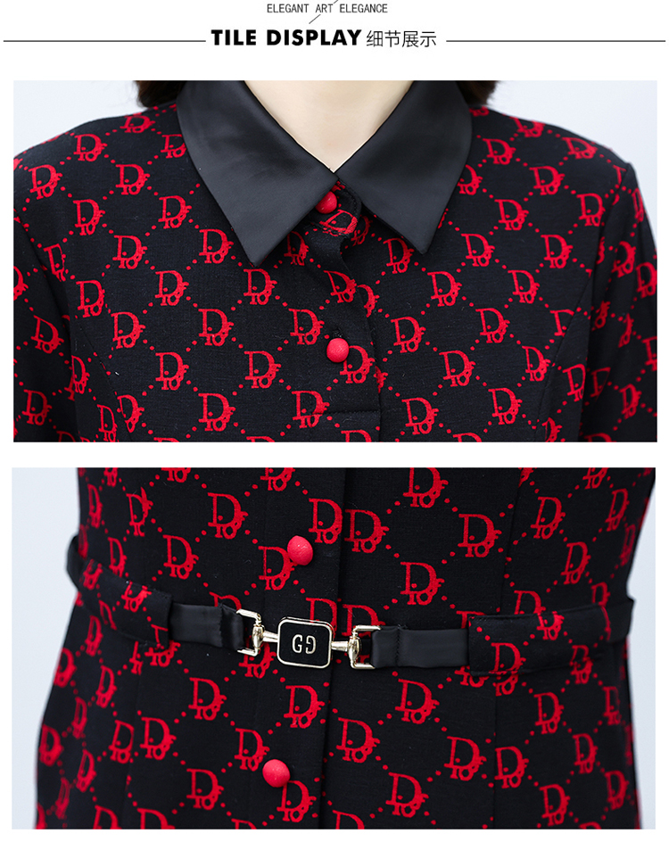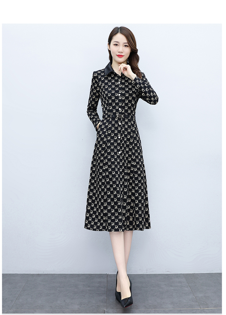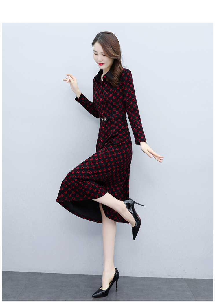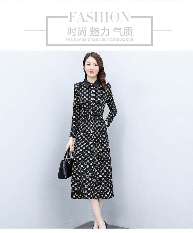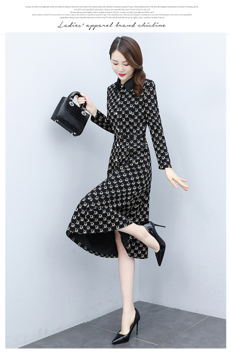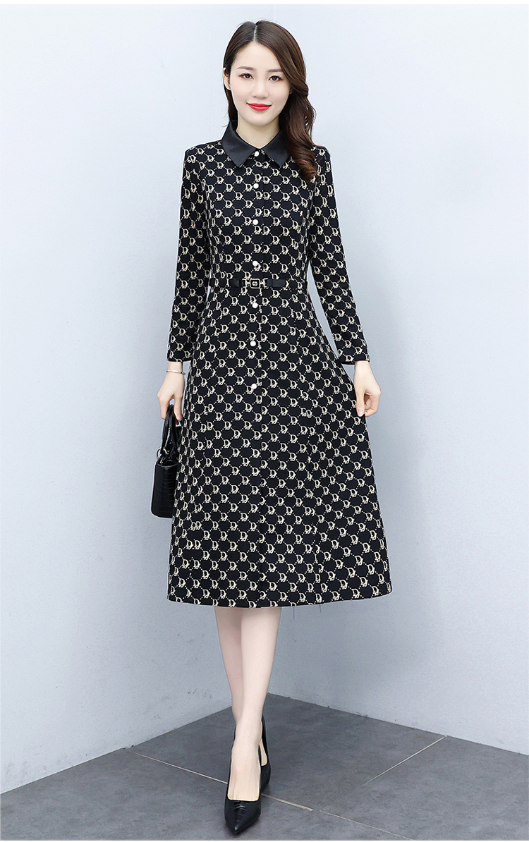 保暖修身,加厚加绒长袖女气质显瘦复古印花打底连衣裙HR-XYFS6257