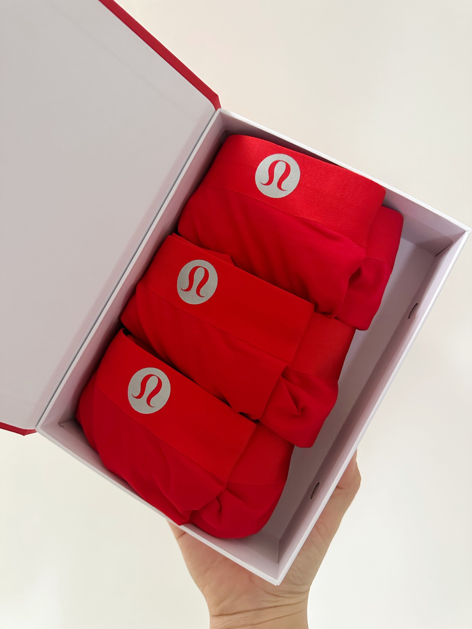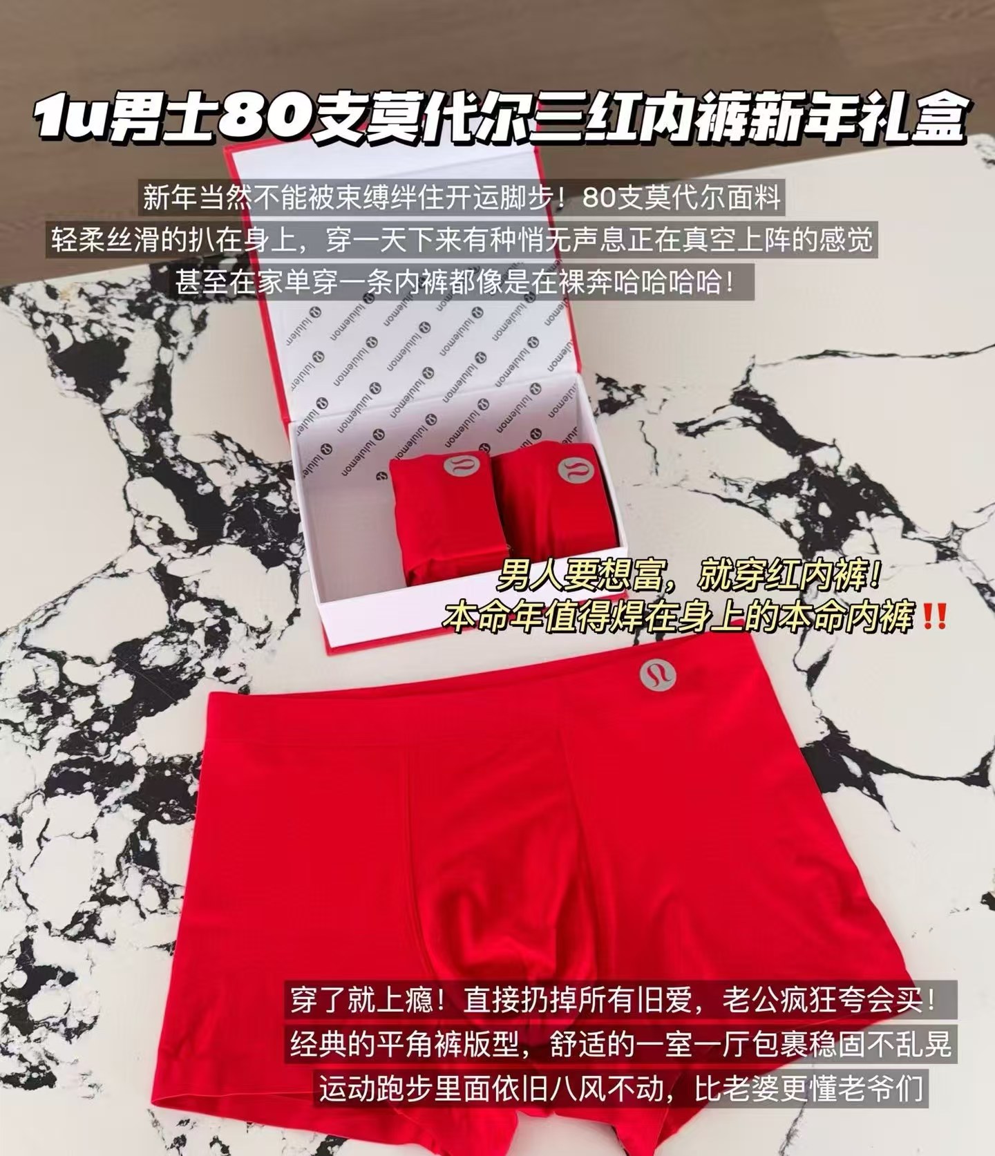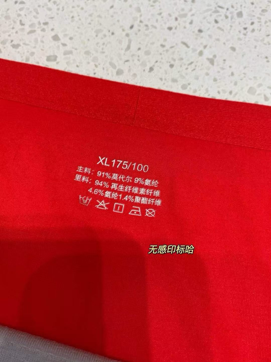 面料:⚠️外层面料是91%莫代尔+9%氨纶,舒适弹力,贴合细腻不紧绷,面料具有很好的透气性、吸湿排汗、亲肤舒适,比常规棉质内衣质地更丝滑,更有速干性。 ⚠️双重里裆,再生纤维素纤维混纺,科学配比,具有很好的抑菌效果,透气舒适不闷热,排汗吸湿,体感干爽。 ⚠️整款内裤都是立体裁剪,无侧缝、无臀缝,舒适亲肤,通身一片式裁剪,很舒服,减少磨肤感。腰身无痕弹力腰带,腰间logo印花点缀,舒适贴合不紧绷,裤脚位置是无痕热压收边,防卷边设计的,工艺非常到位。 礼盒装的开运红内裤来了哈,咱们一盒三条,送人也很好,真香价格!面料弹力十足,超级舒服,新年必留款的男士红内裤套盒!L适合腰围2尺2-2尺4 体重100-125斤 XL适合腰围 2尺4-2尺6 体重125-145斤 XXL适合腰围2尺6-2尺8 体重145-165斤 XXXL适合腰围2尺9-3尺2 体重165-190斤