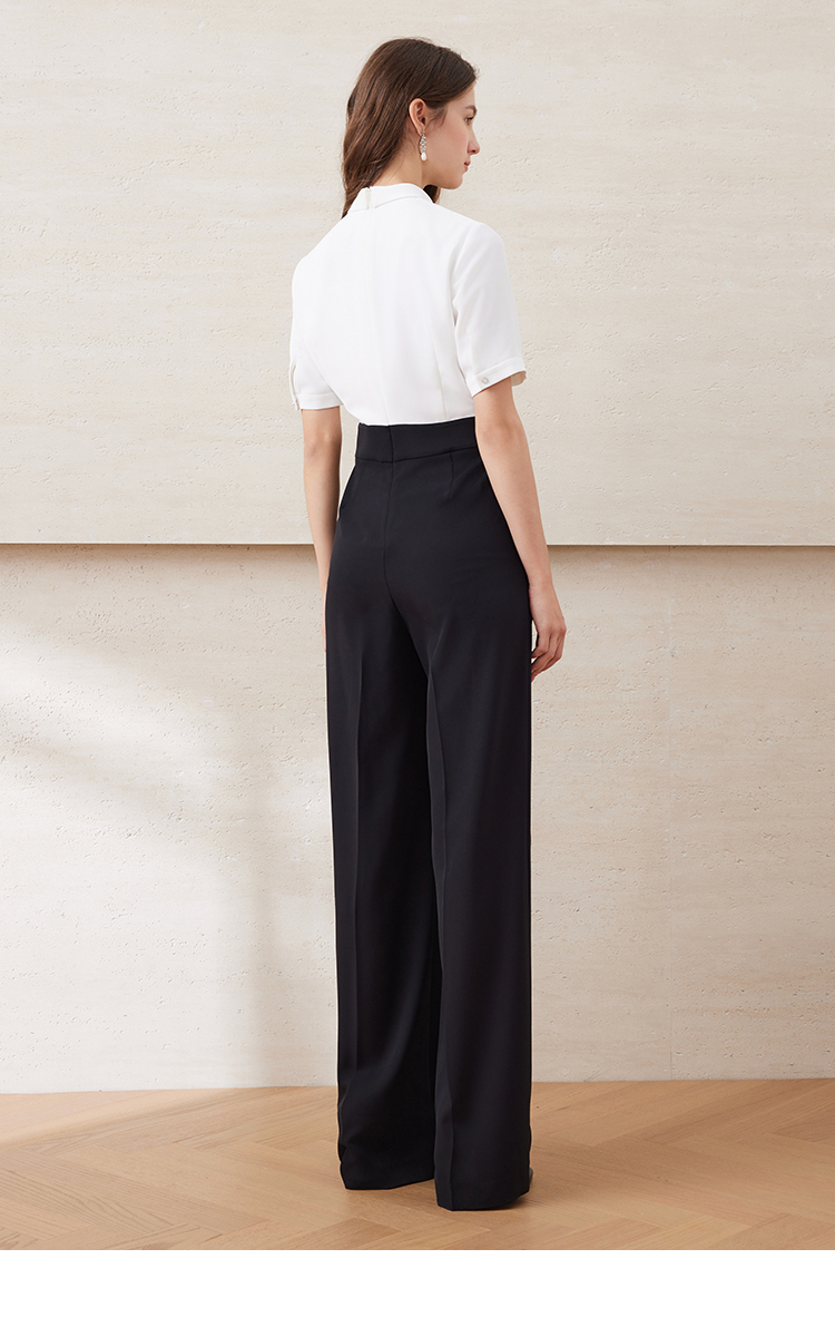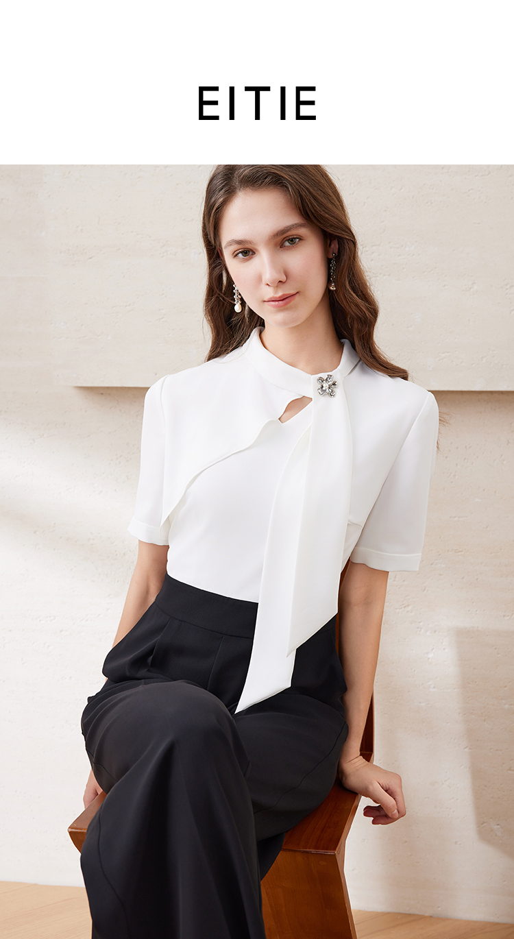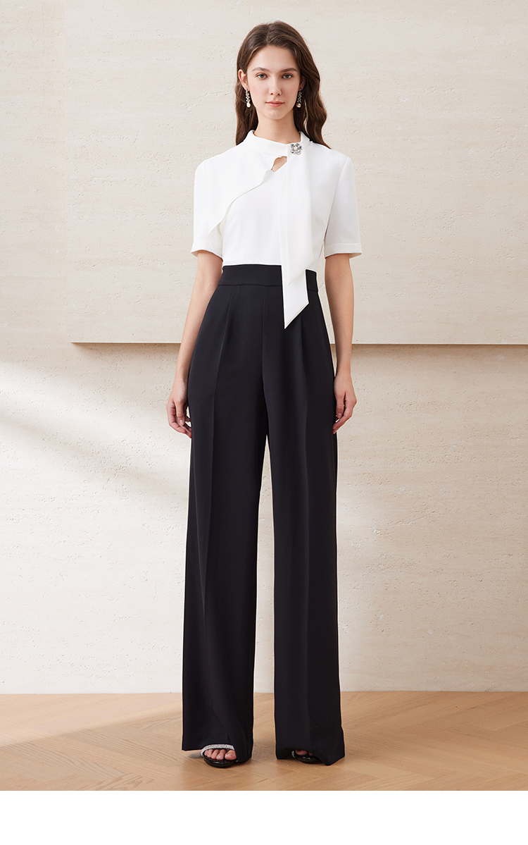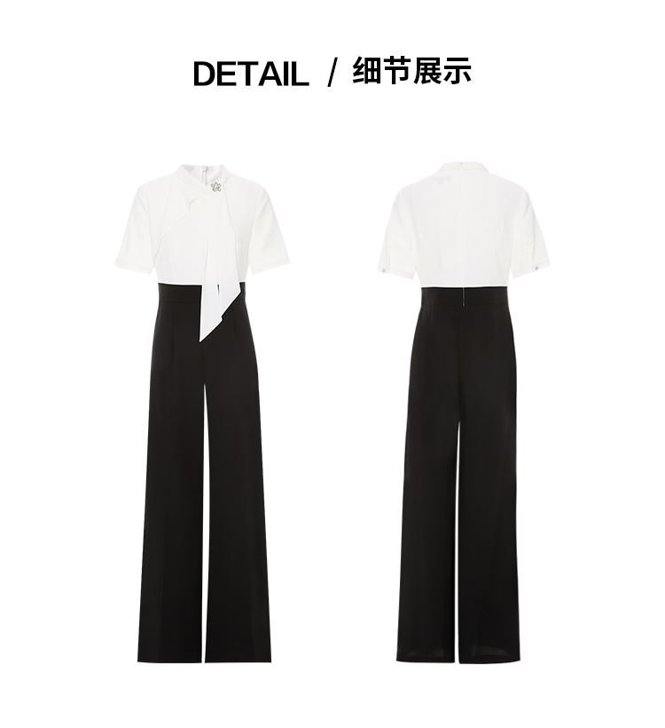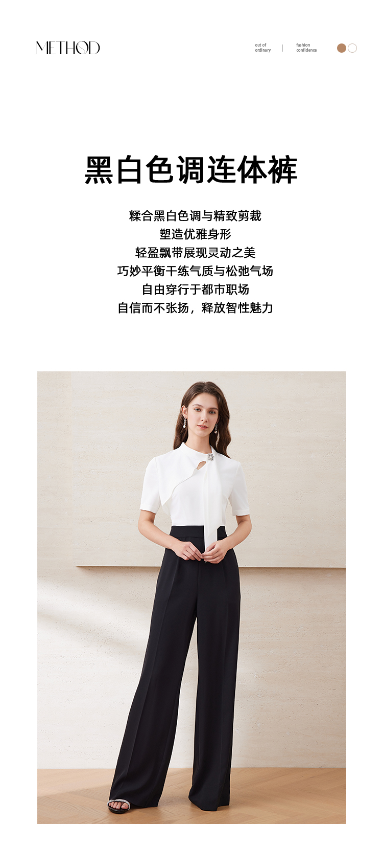 EITIE爱特爱时尚干练飘带不对称高腰阔腿撞色连体裤2025夏季新款B2512602